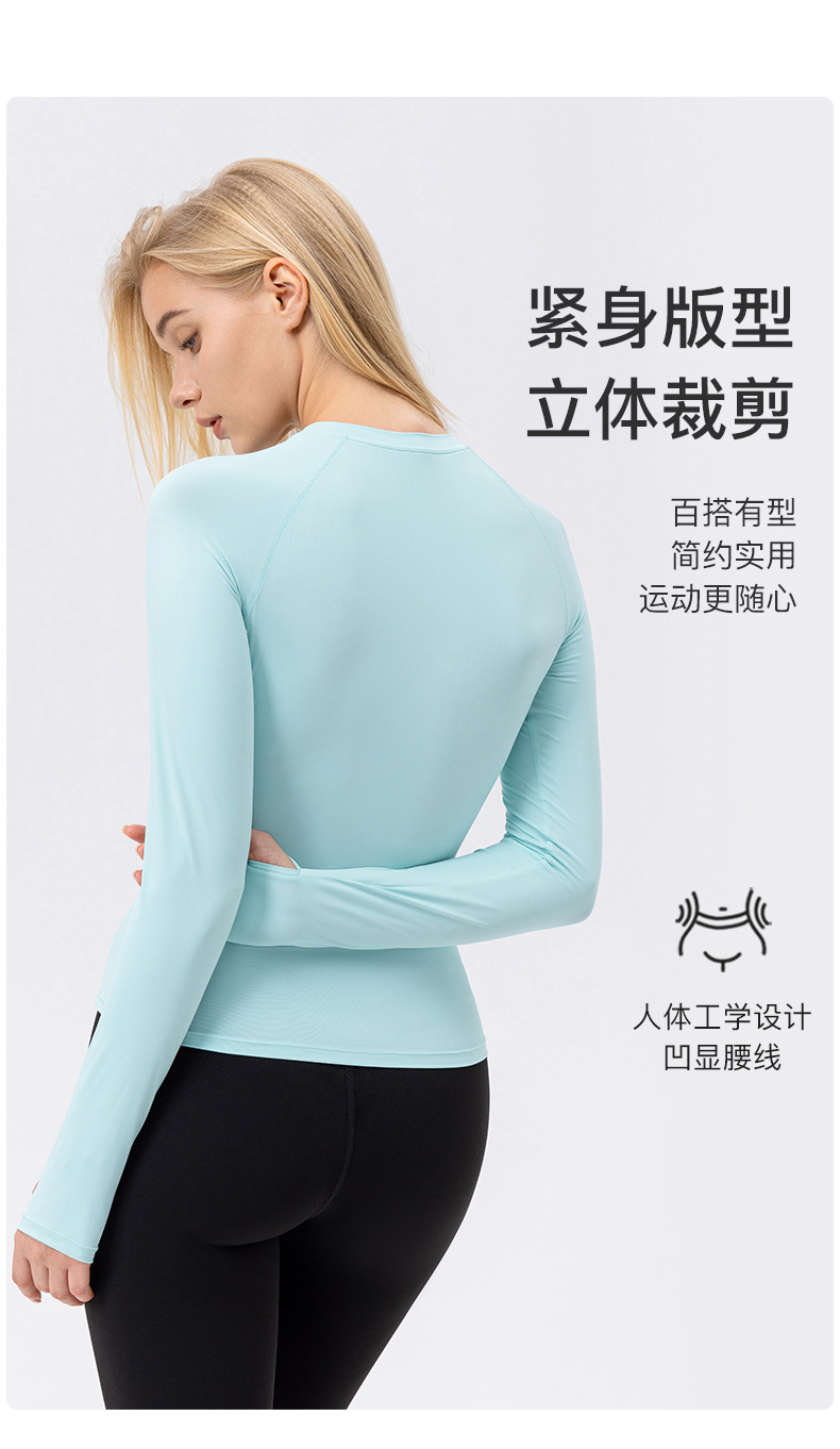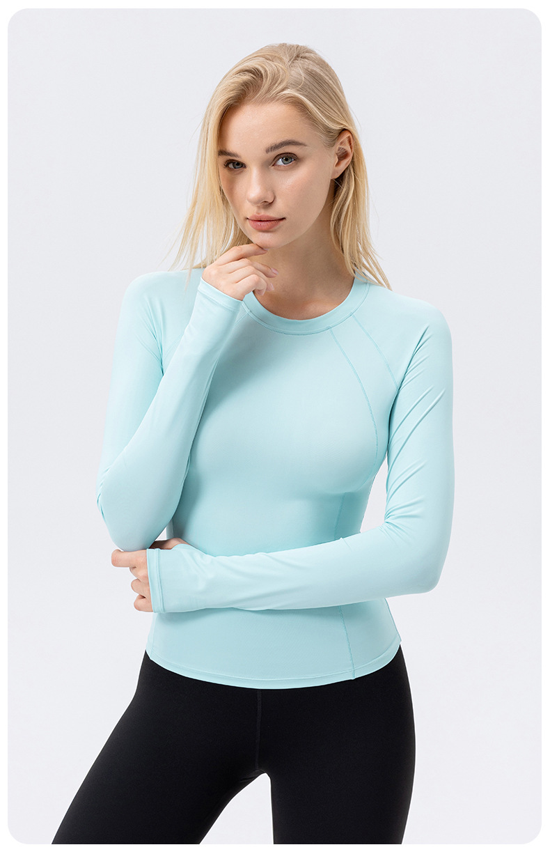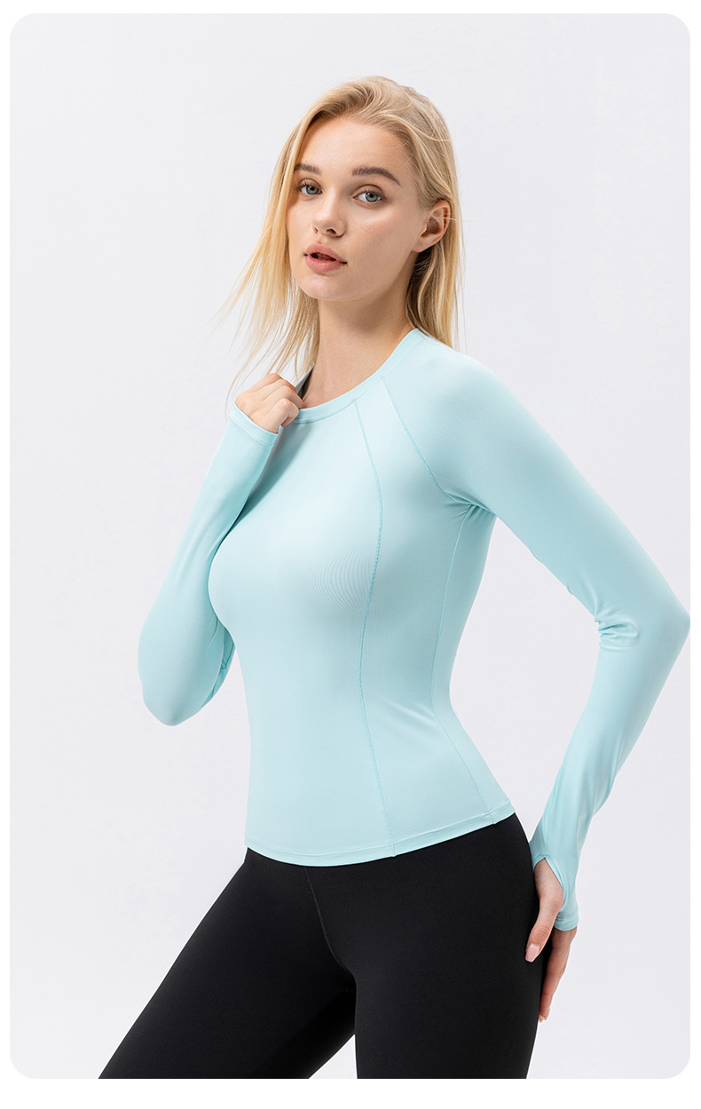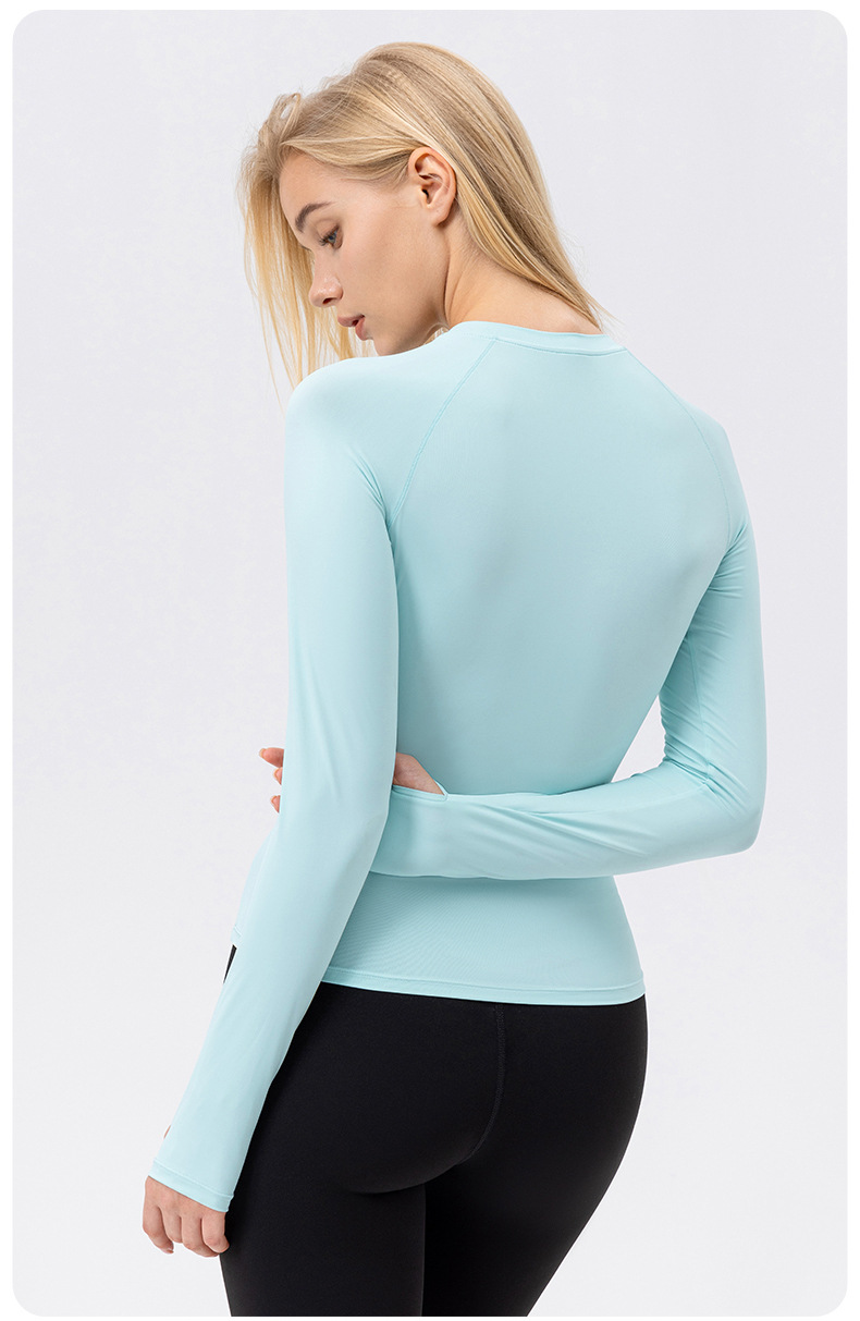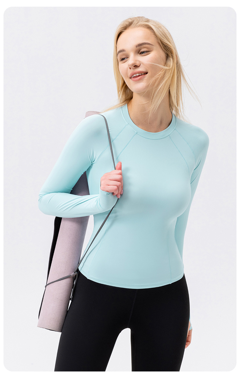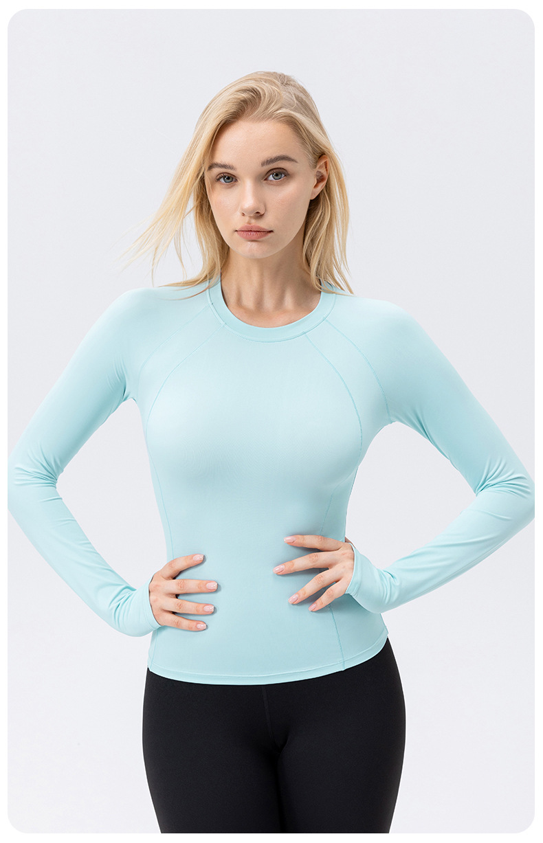 여성용 선 스크린 타이트 요가 세트 긴팔 멋진 통기성 스포츠 티셔츠 러닝 피트니스 탑 UV 보호 42551스토어 가기