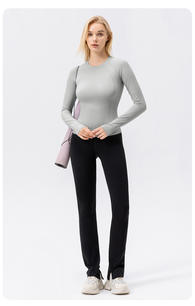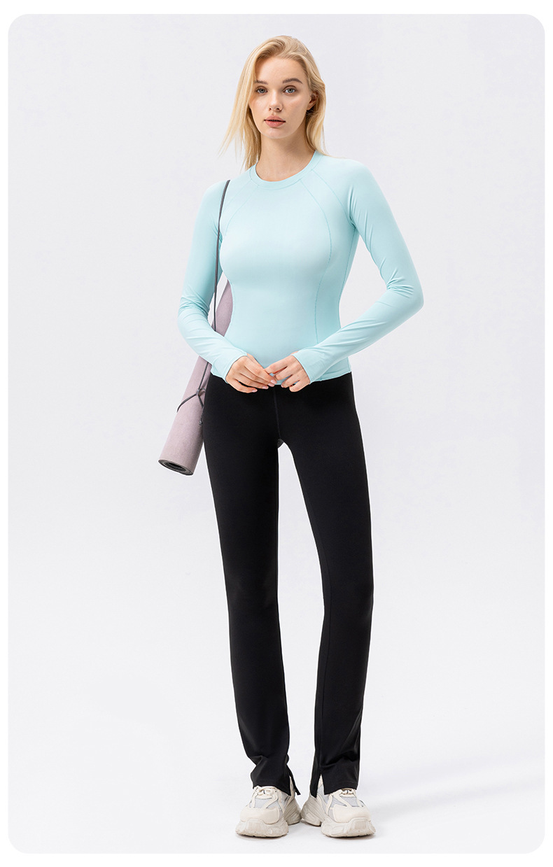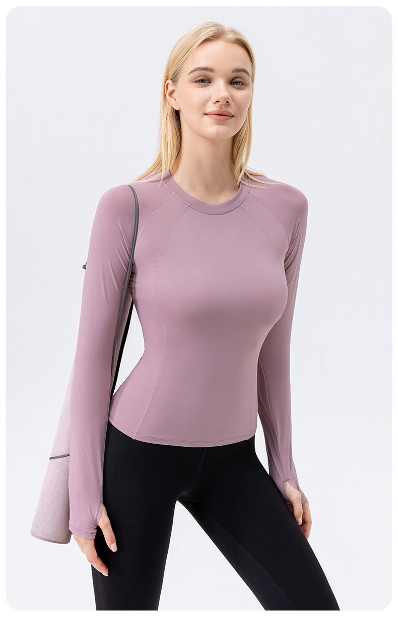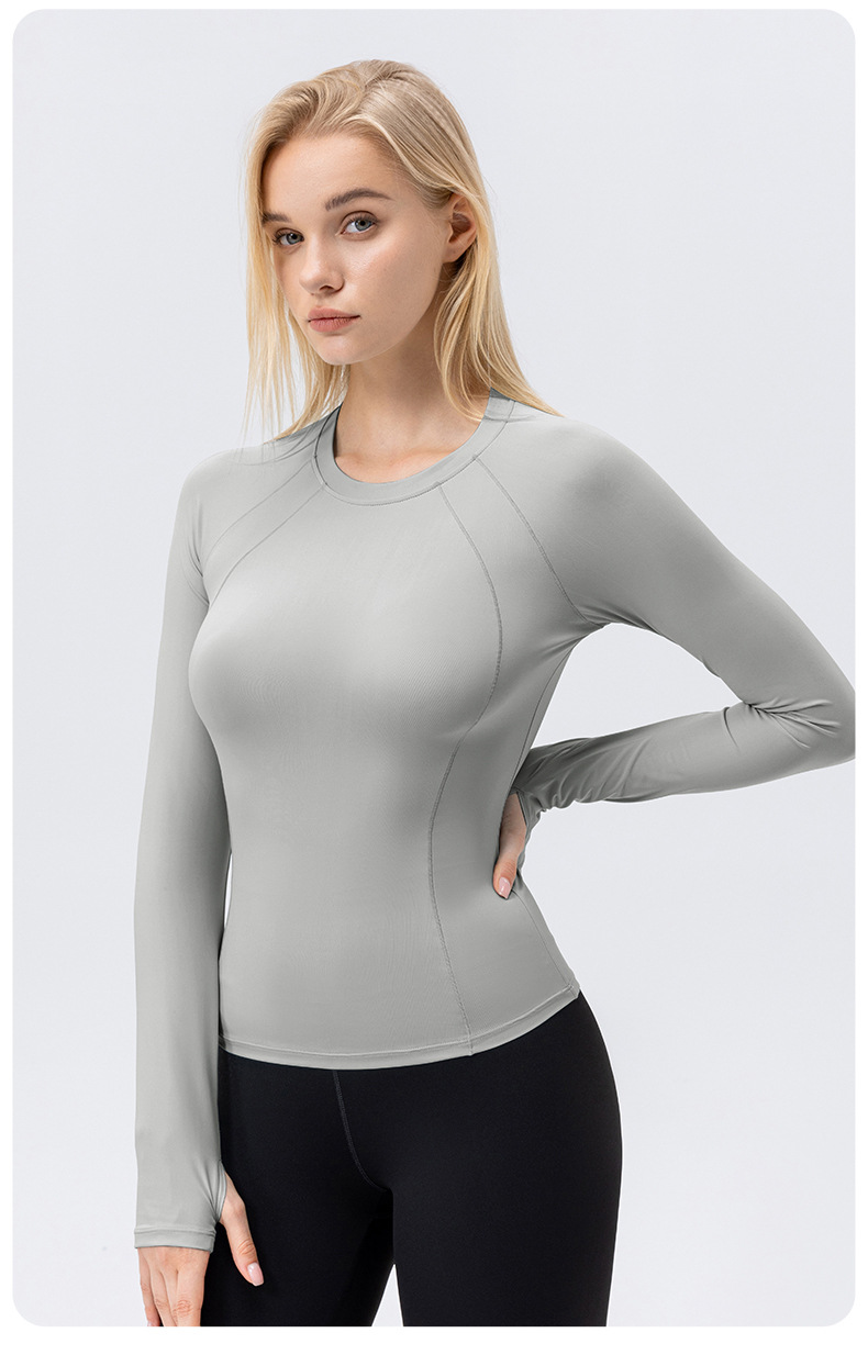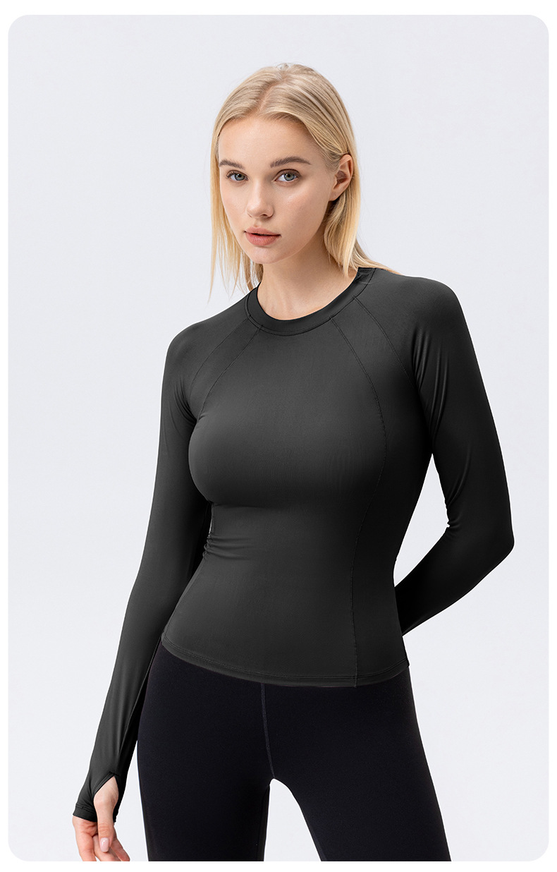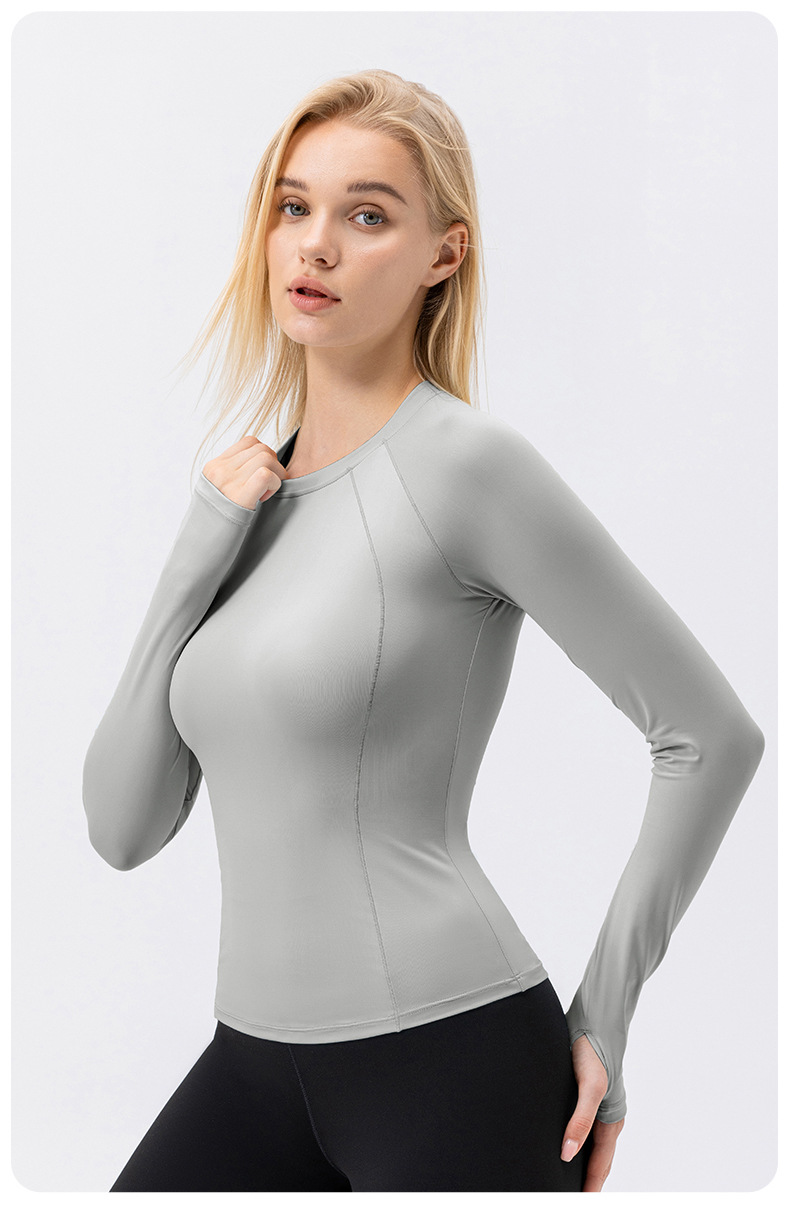 여성용 선 스크린 타이트 요가 세트 긴팔 멋진 통기성 스포츠 티셔츠 러닝 피트니스 탑 UV 보호 42551스토어 가기