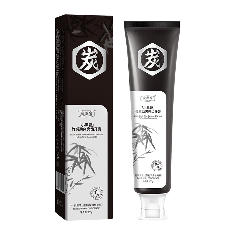 Bao Wei Quan 작은 검은 색 튜브 대나무 숯 치약은 노란색, 깨끗하고 흰색을 제거하여 연기 얼룩, 신선한 호흡 및 관리 구강 공장 재고 도매