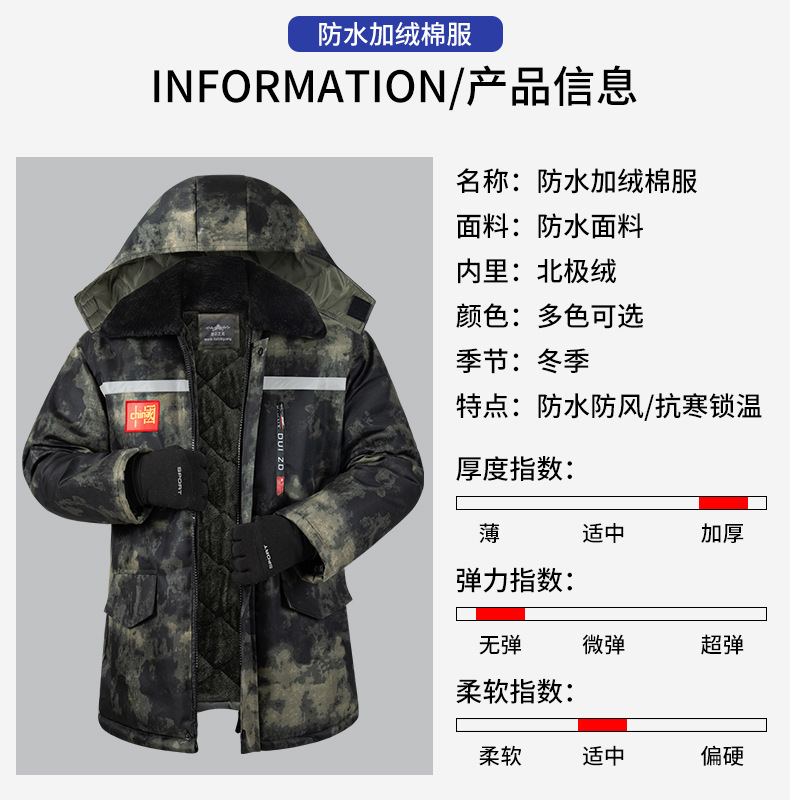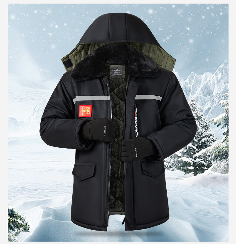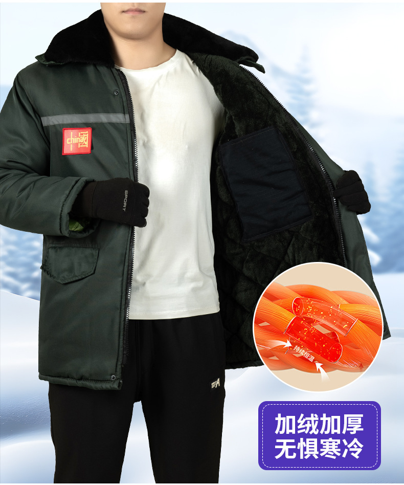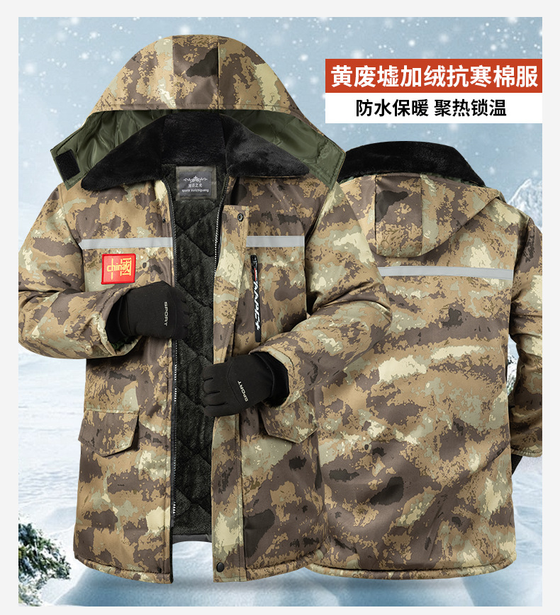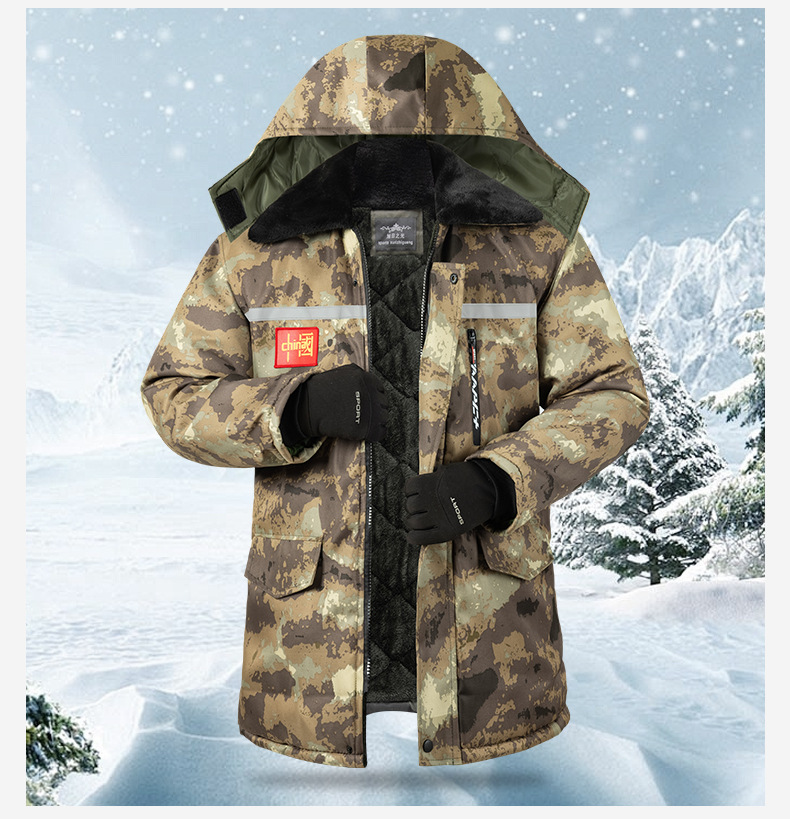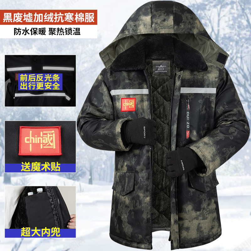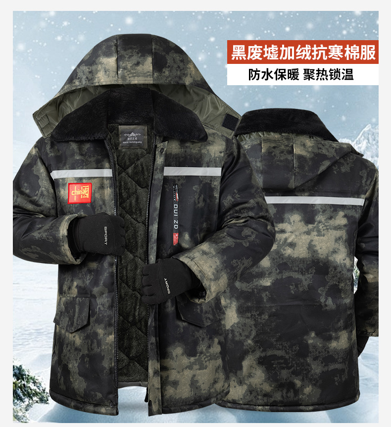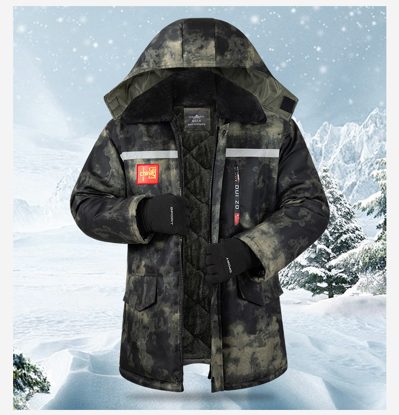 남성 노동 보호를위한 겨울 작업 위장 면화 패딩 재킷 면화 패딩 재킷 방수 중년 및 노인을위한 두꺼운 중장기 냉장 방화 의류