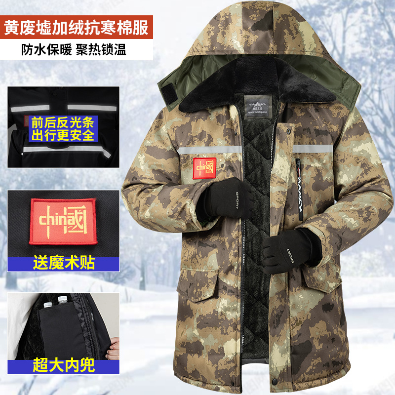 남성 노동 보호를위한 겨울 작업 위장 면화 패딩 재킷 면화 패딩 재킷 방수 중년 및 노인을위한 두꺼운 중장기 냉장 방화 의류스토어 가기
