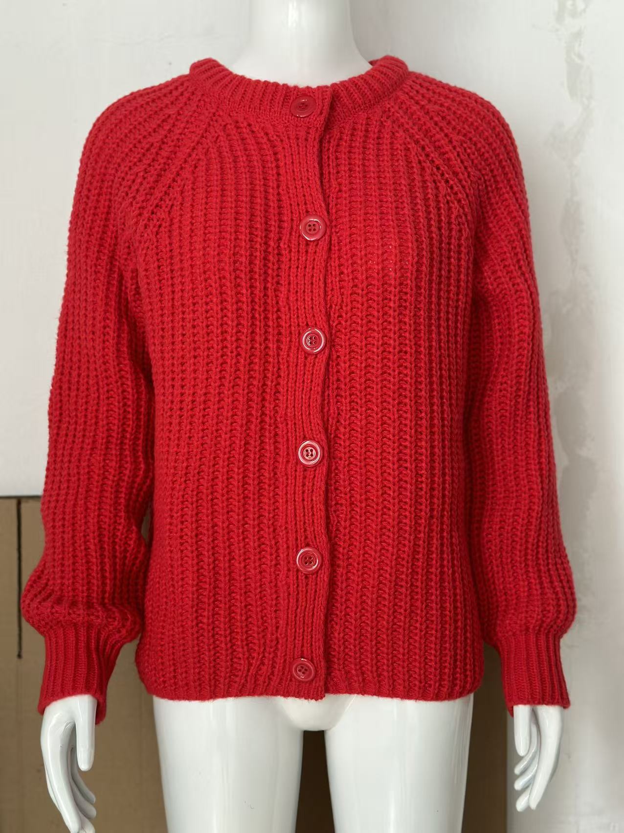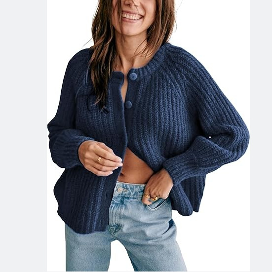 2025 가을과 겨울 새로운 유럽과 미국의 국경 여성 거리 패션 캐주얼 솔리드 컬러 니트 카디건 크루 넥 긴 소매 스웨터스토어 가기