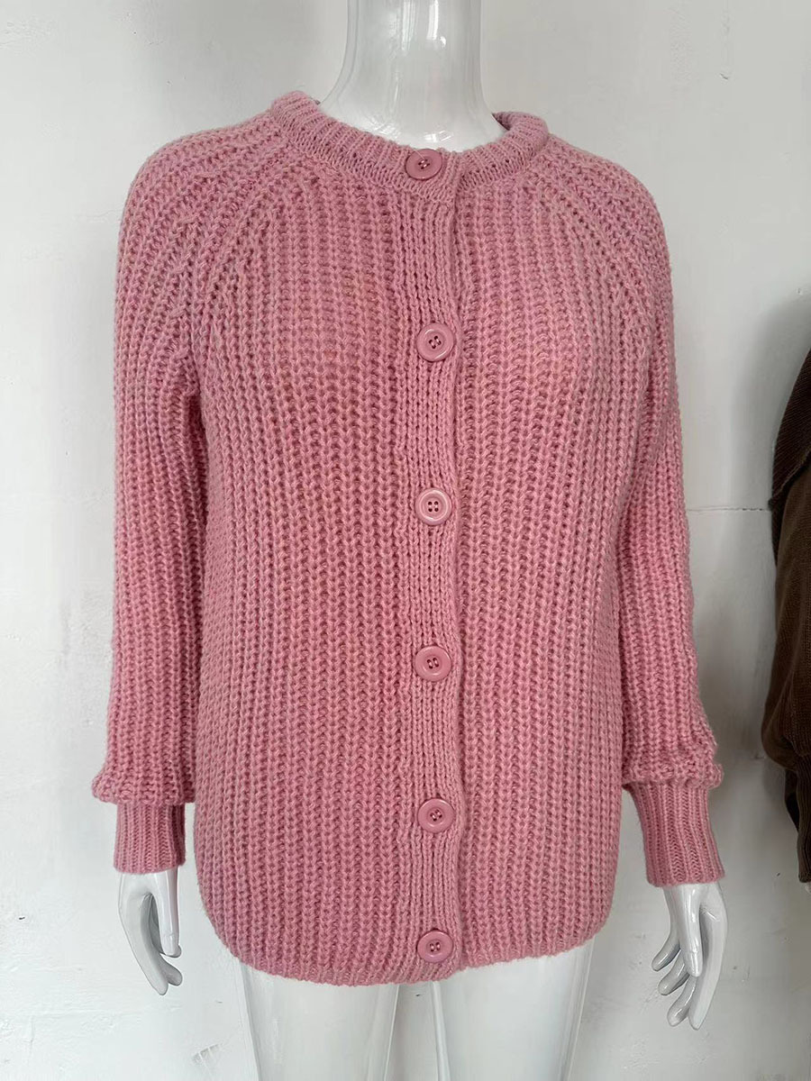 2025 가을과 겨울 새로운 유럽과 미국의 국경 여성 거리 패션 캐주얼 솔리드 컬러 니트 카디건 크루 넥 긴 소매 스웨터