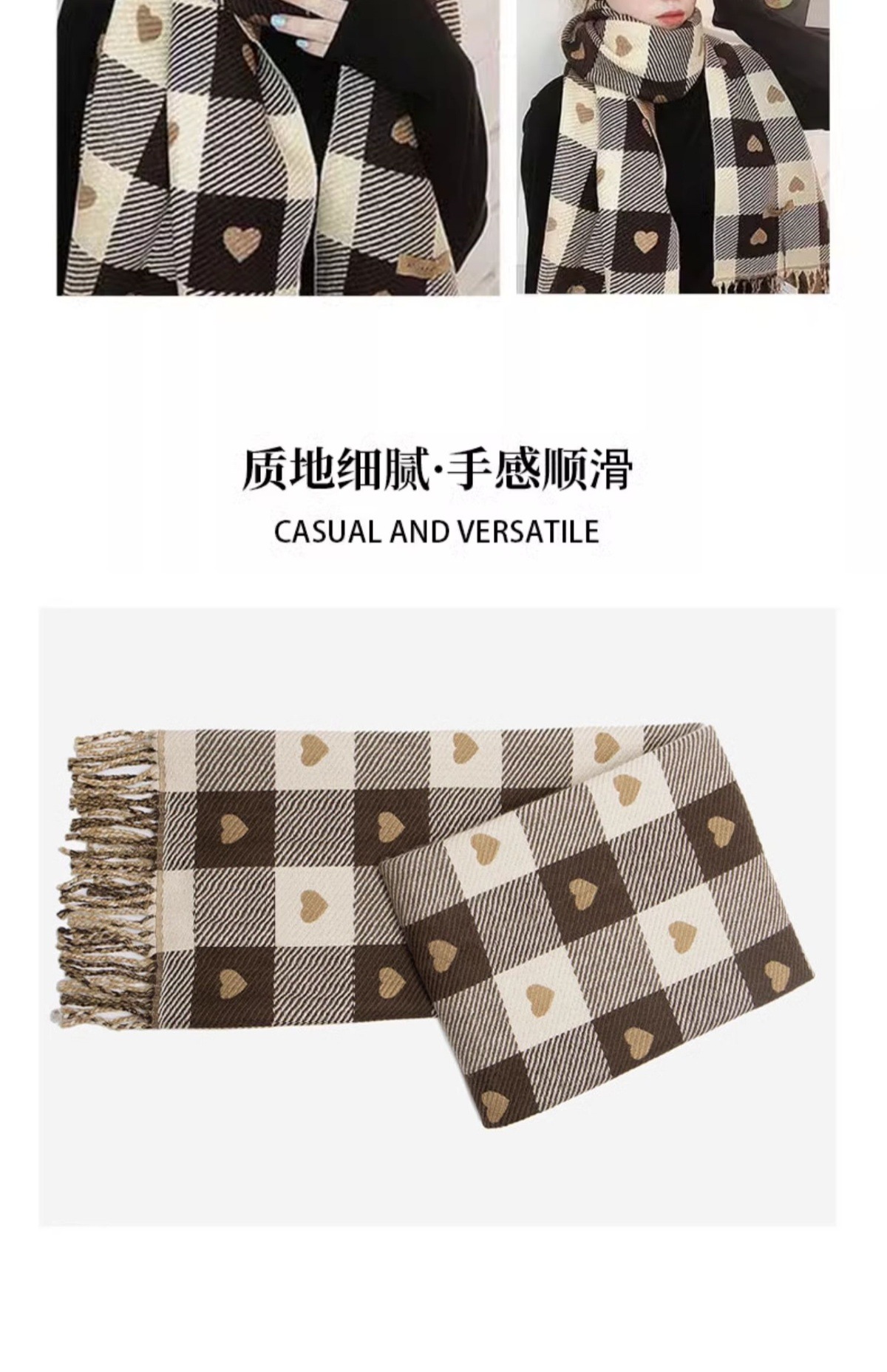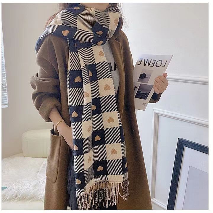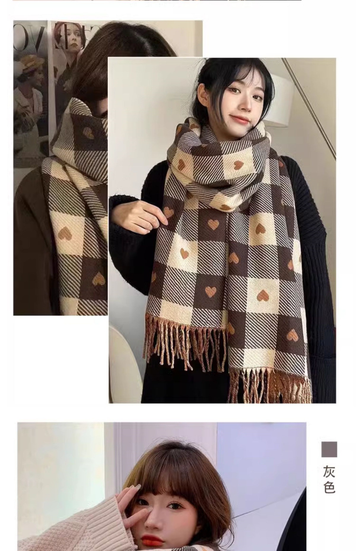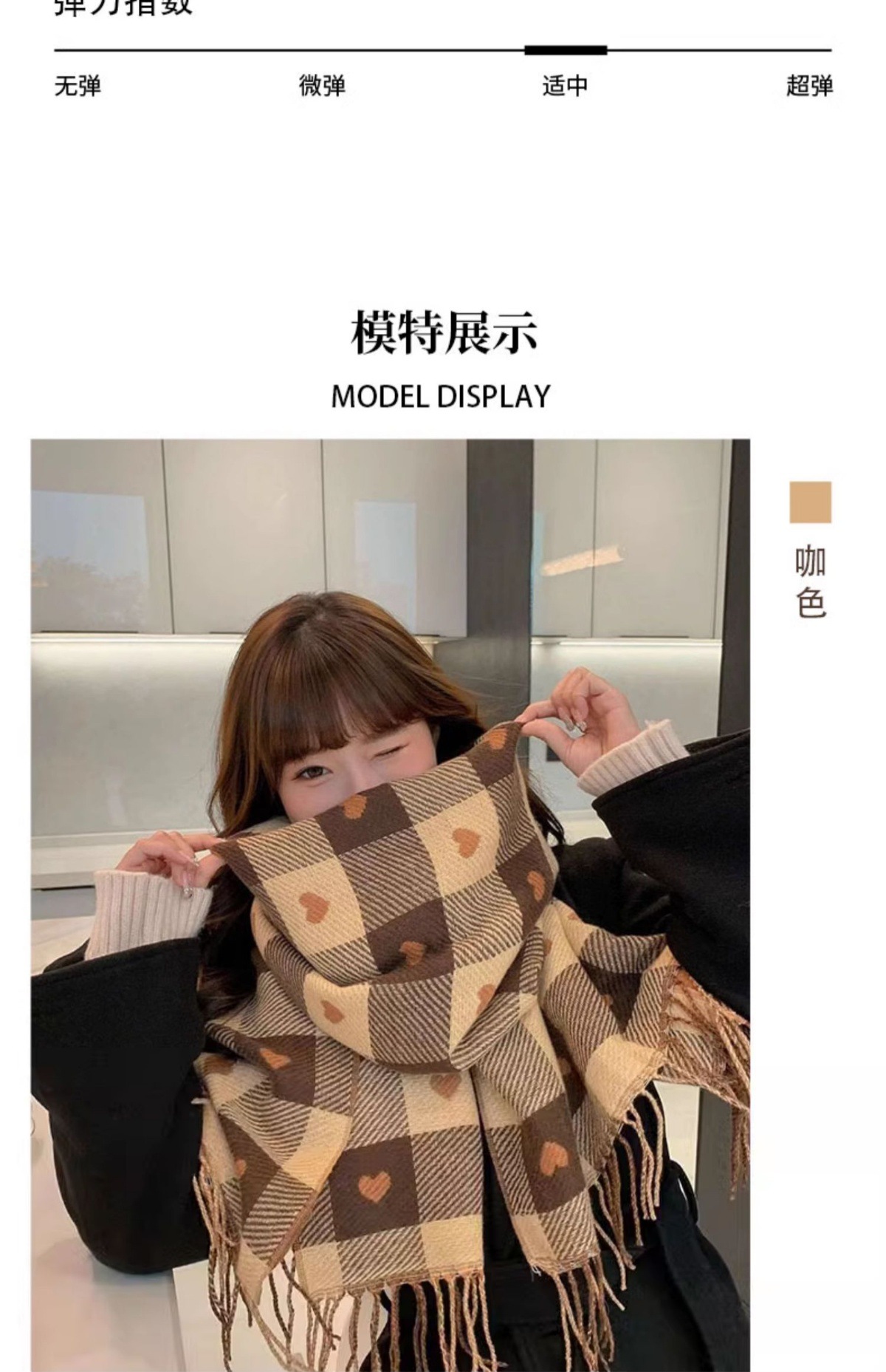여성용 하트 스카프, 가을 겨울 신상, 고급스러운 숄, 여학생용 따뜻한 체크무늬 스카프, 고급 니트스토어 가기