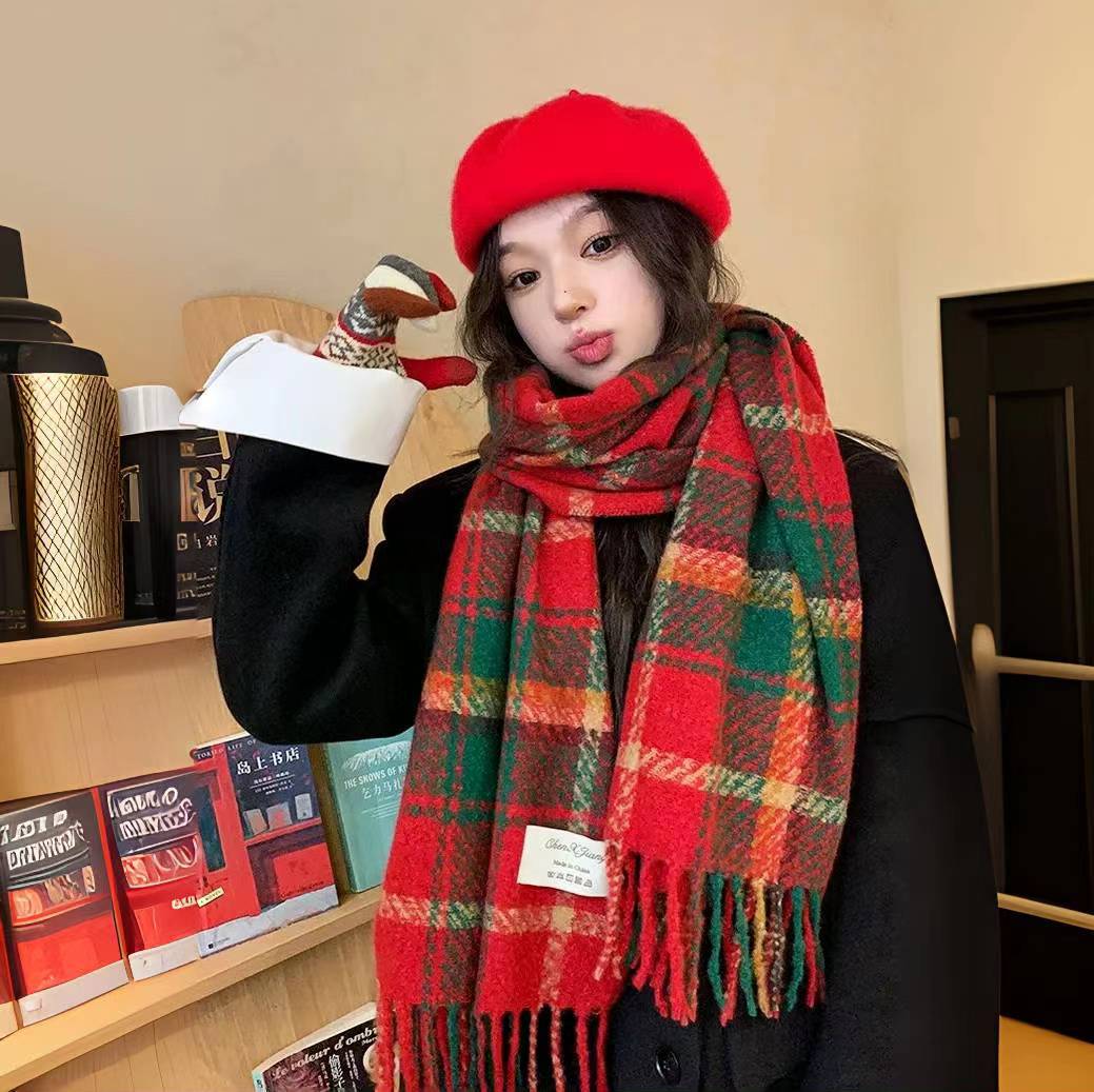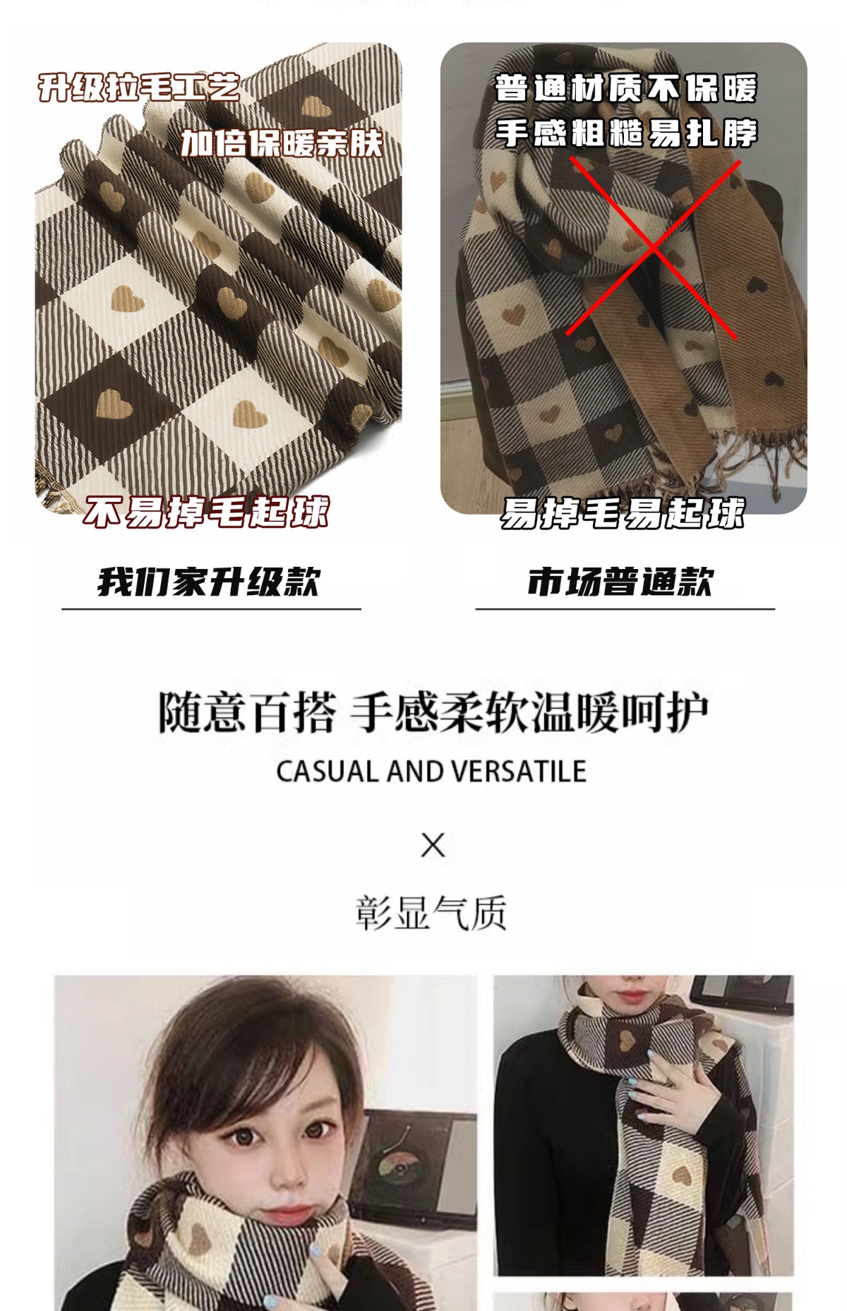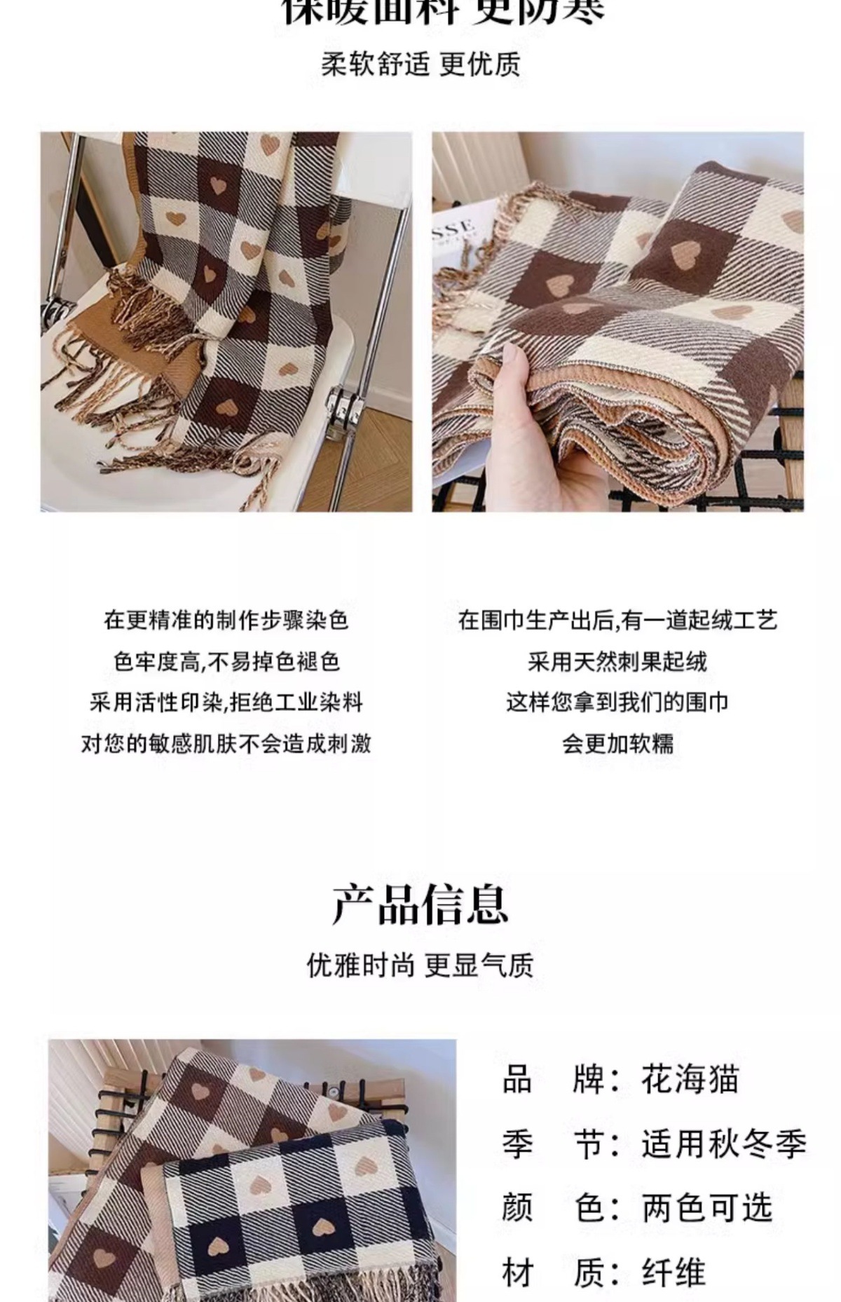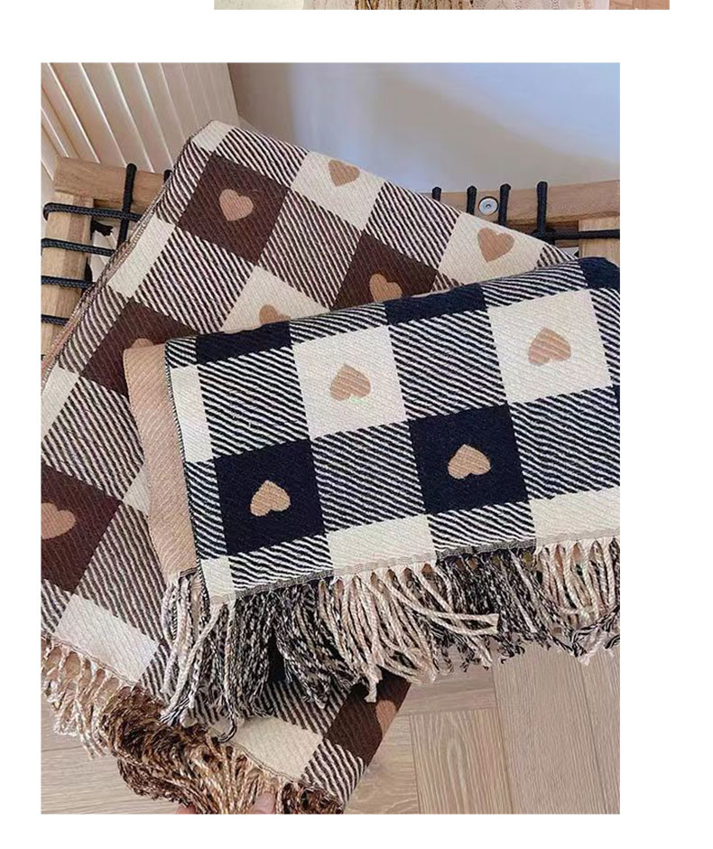 여성용 하트 스카프, 가을 겨울 신상, 고급스러운 숄, 여학생용 따뜻한 체크무늬 스카프, 고급 니트스토어 가기