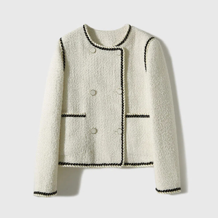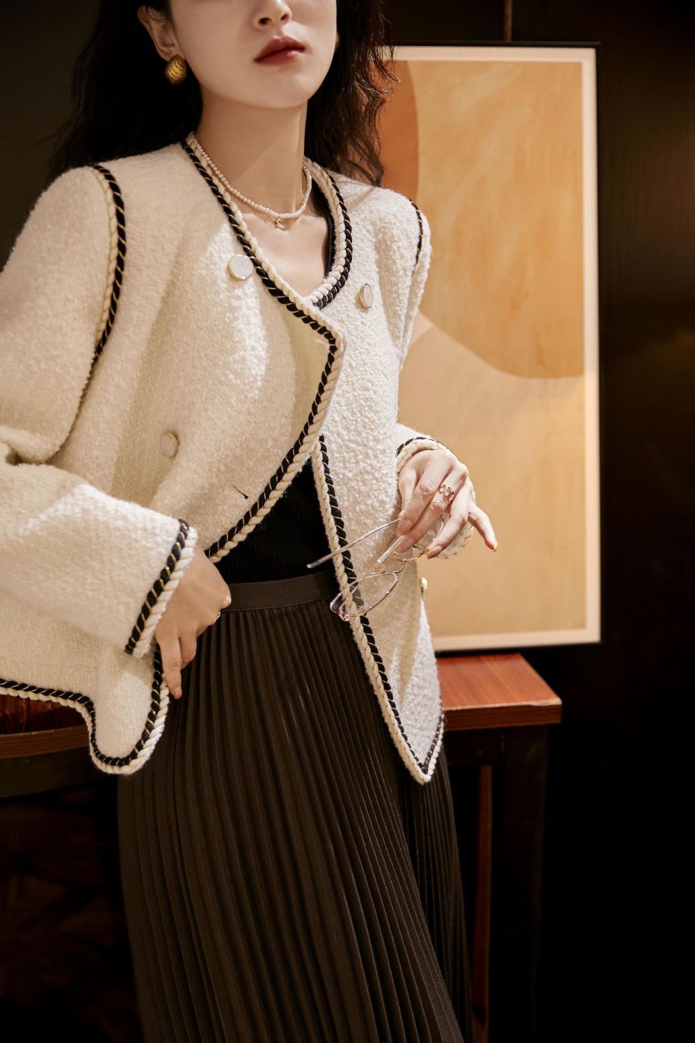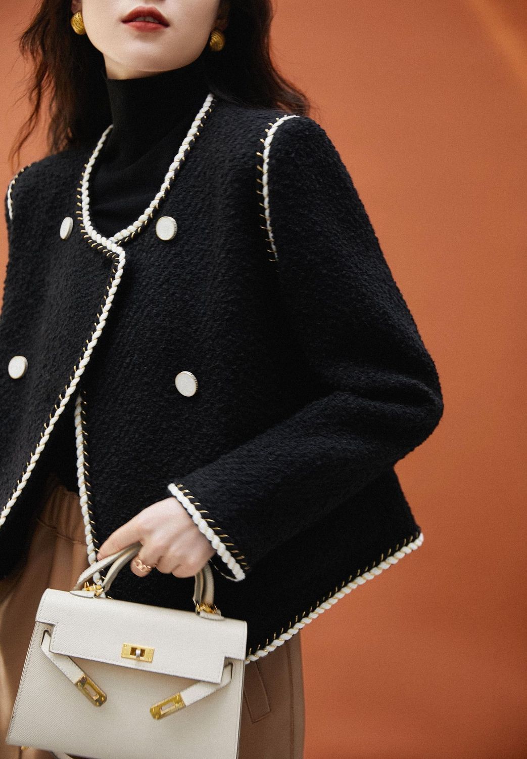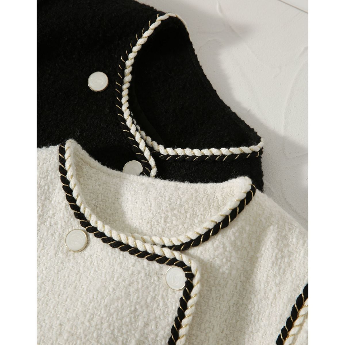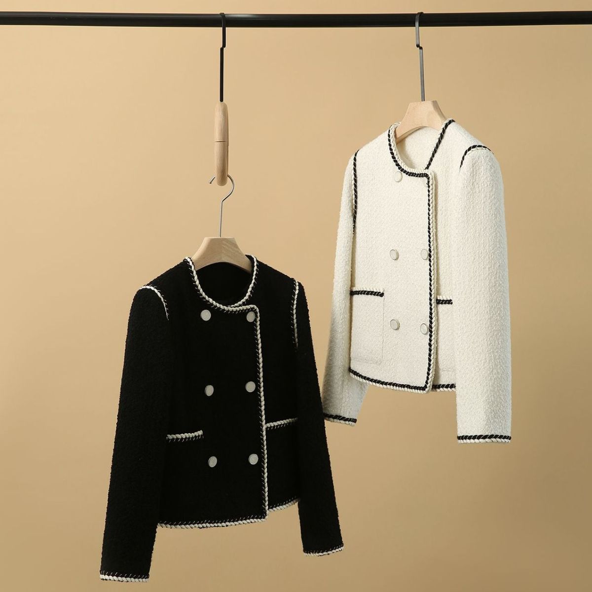 프랑스 스타일 숙녀 스타일 트위드 짠 짧은 샤넬 스타일 코트 여성용 2024 가을 새로운 틈새 최고스토어 가기