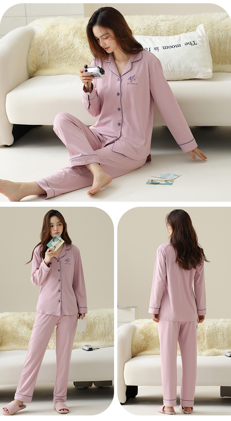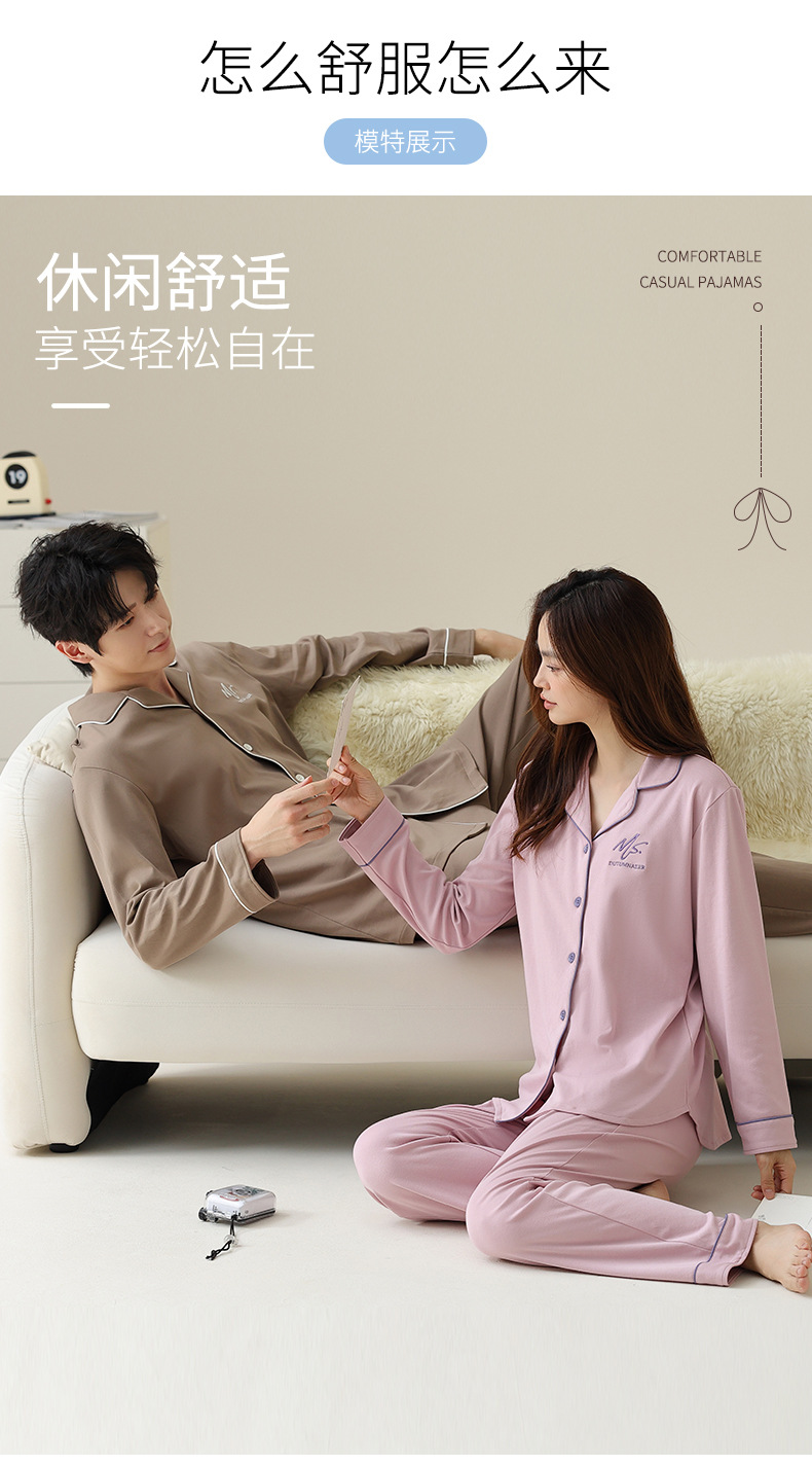순수 코튼 커플 잠옷 가을, 겨울 긴팔 솔리드 컬러 단순 카디건 홈웨어 봄, 가을 남성과 여성 코튼 잠옷스토어 가기