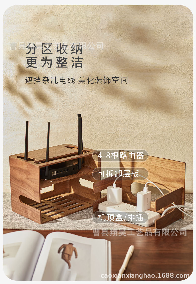 나무 케이블 수집 상자 와이파이 라우터 저장 상자 데스크탑 무선 셋톱 박스 라이트 스토리지 랙 와이어 보드 차폐
