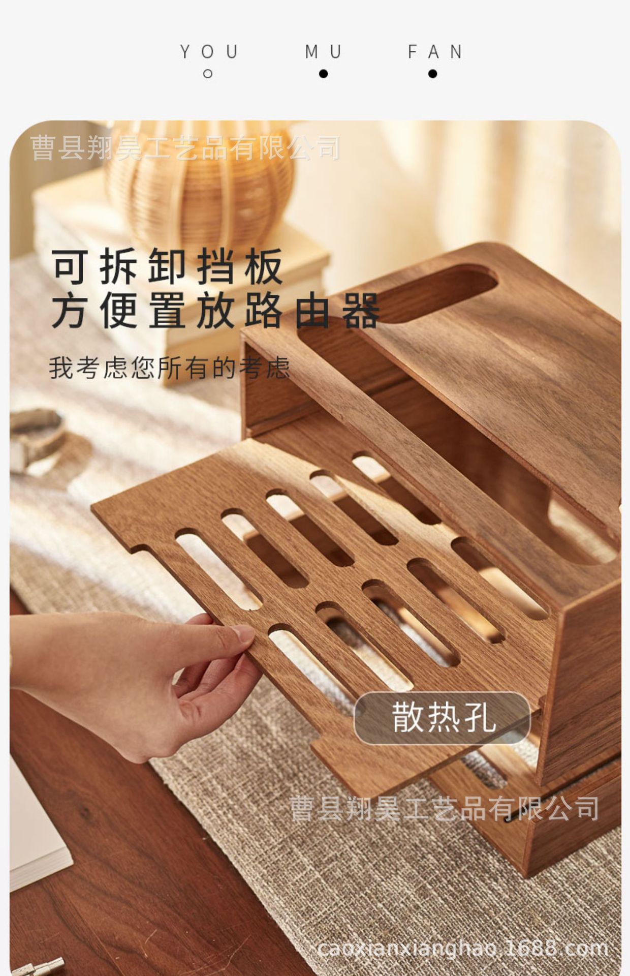 나무 케이블 수집 상자 와이파이 라우터 저장 상자 데스크탑 무선 셋톱 박스 라이트 스토리지 랙 와이어 보드 차폐스토어 가기