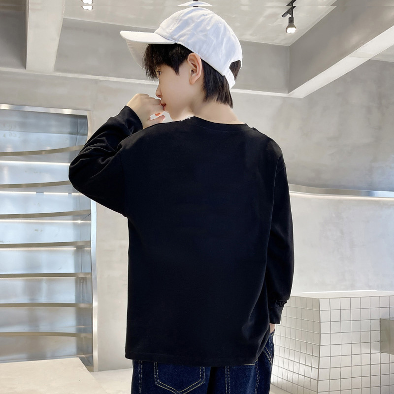 220g 순면 무거운 무게 아동복 소년 티셔츠 긴 소매 가을 어린이 큰 소년 코트 반소매 바닥 셔츠