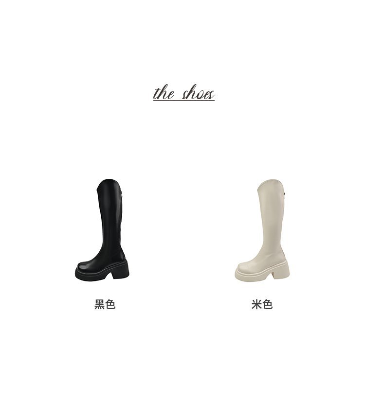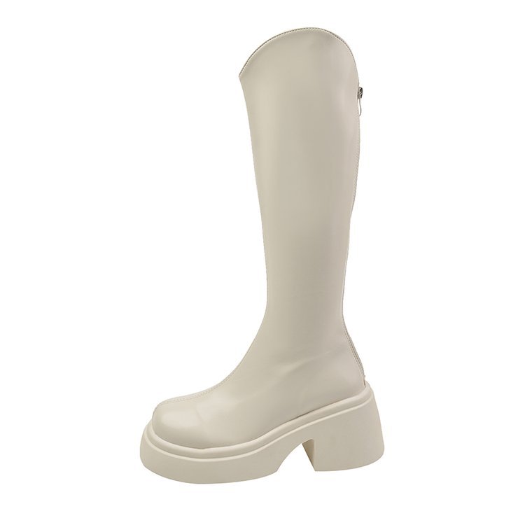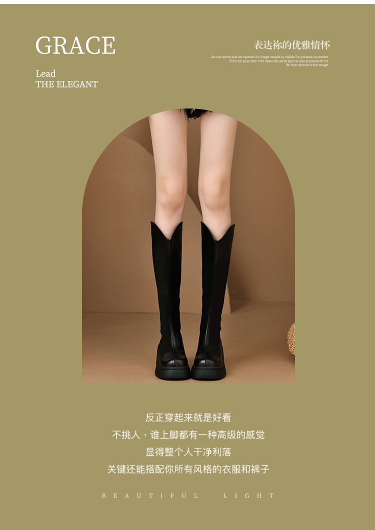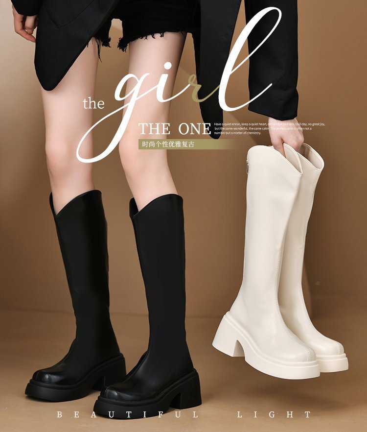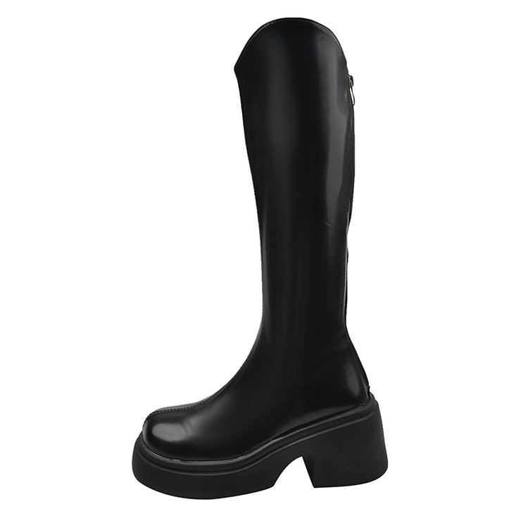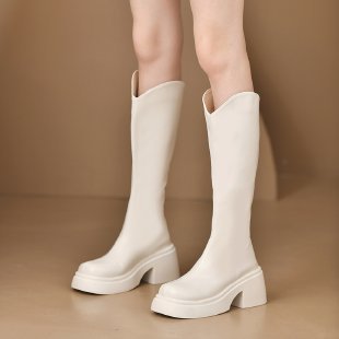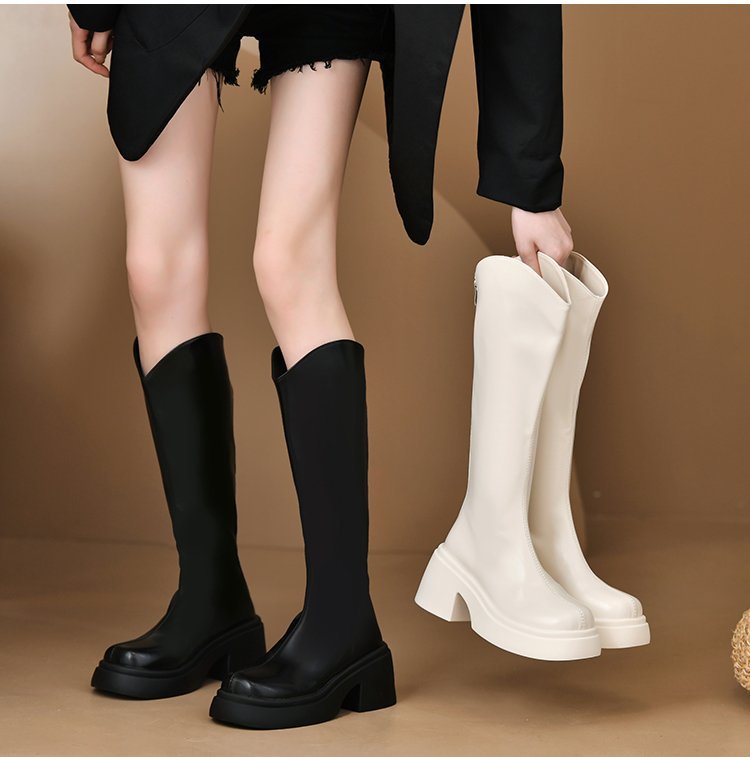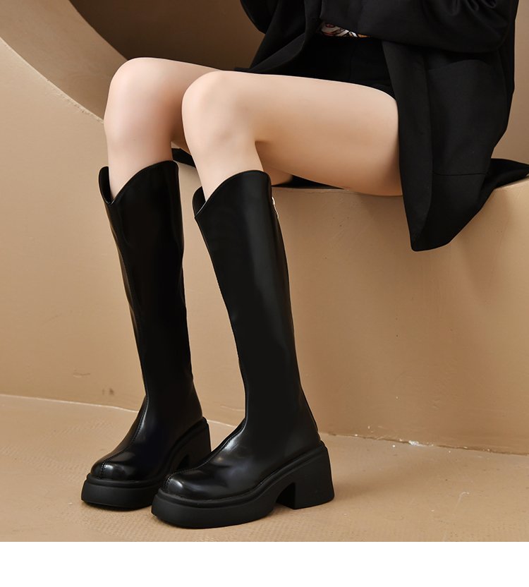 인터넷 축하 두꺼운 바닥 부츠 여성의 2024 가을 겨울 새로운 하이힐 V-입 리어 지퍼 소프트 가죽 유행 라이더 스모크 부츠스토어 가기
