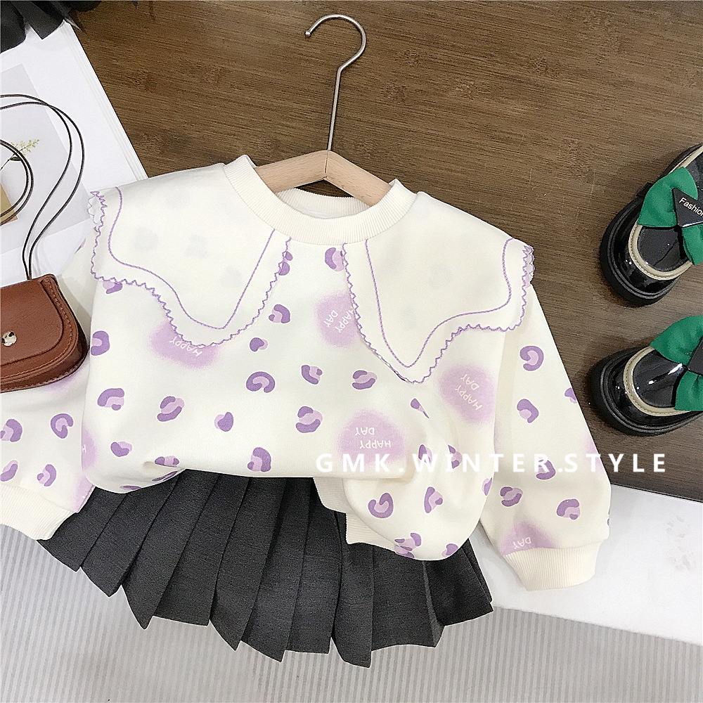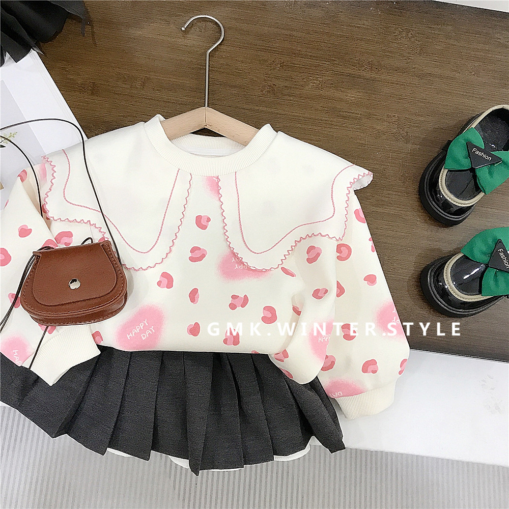 여자 인형 칼라 땀 아기 소녀 가을 새 인쇄 풀오버 긴 소매 한국 스타일 어린이 주름 치마 대외 무역