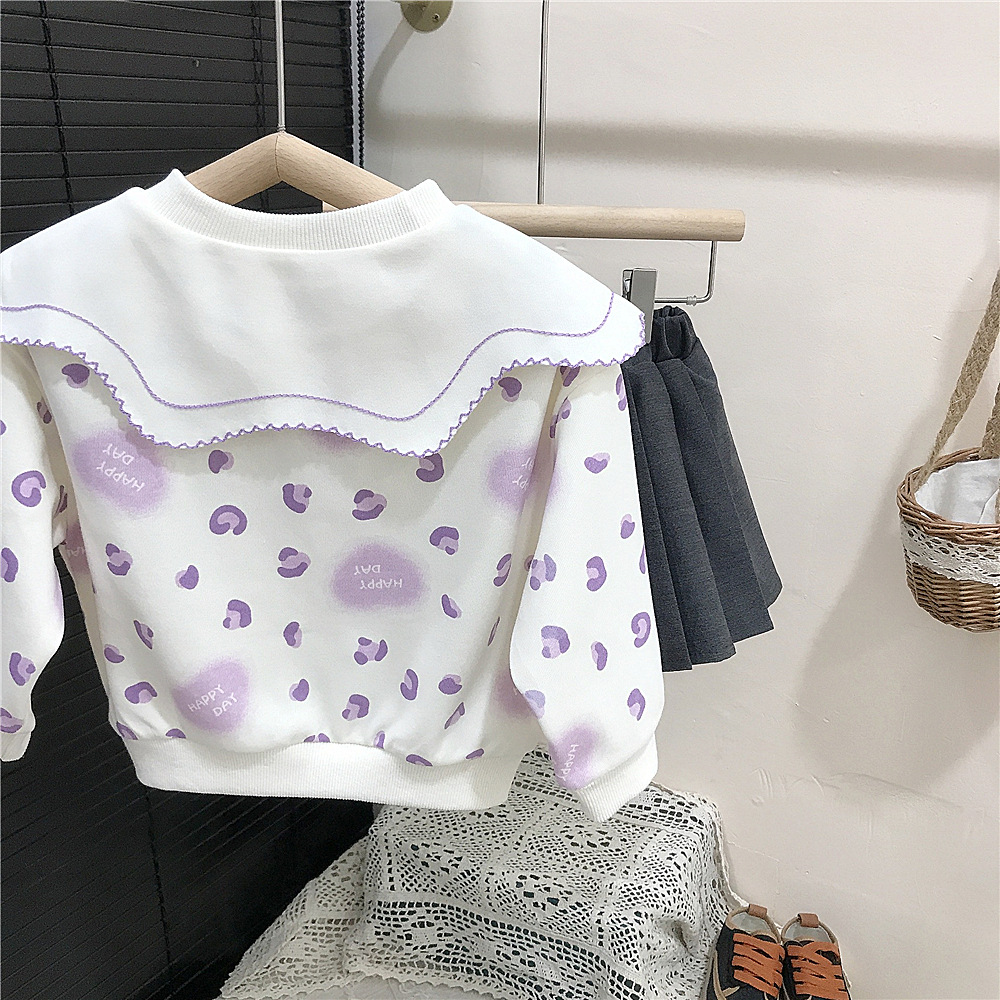 여자 인형 칼라 땀 아기 소녀 가을 새 인쇄 풀오버 긴 소매 한국 스타일 어린이 주름 치마 대외 무역스토어 가기