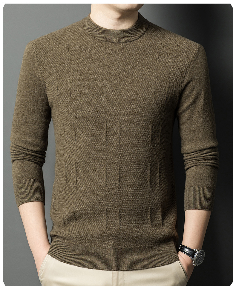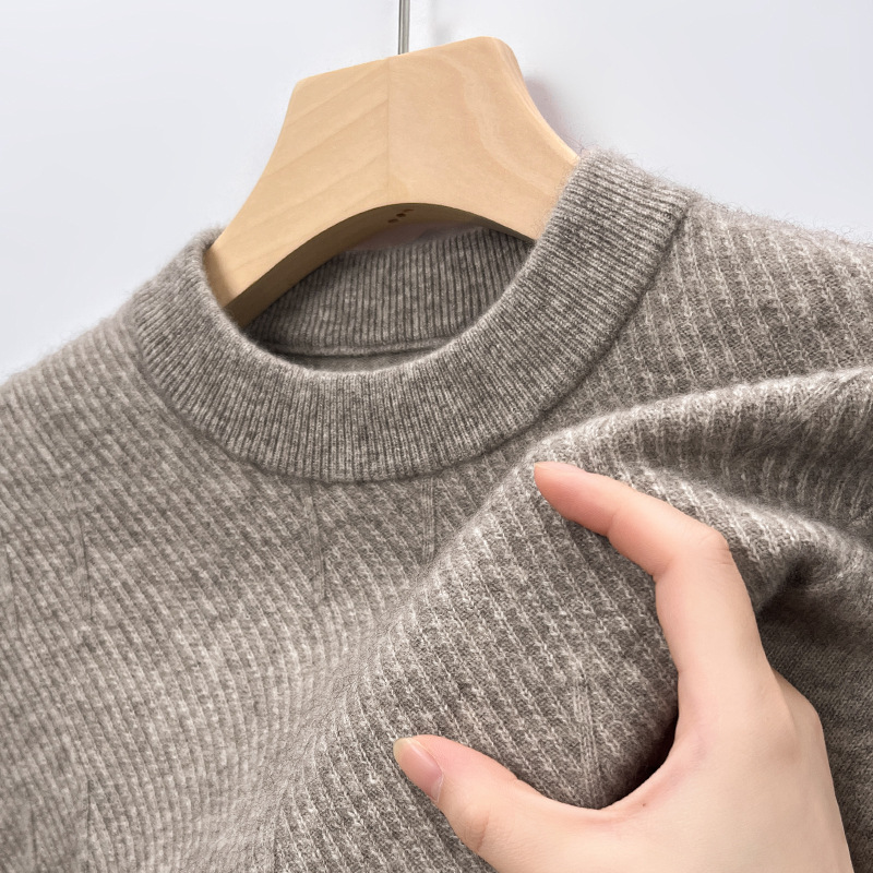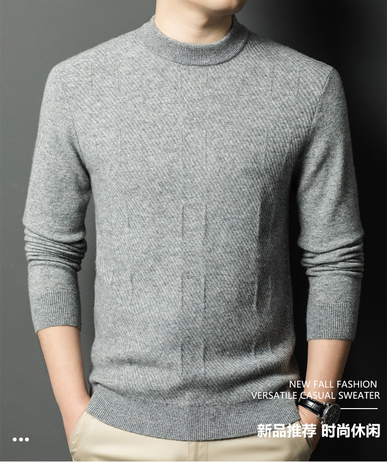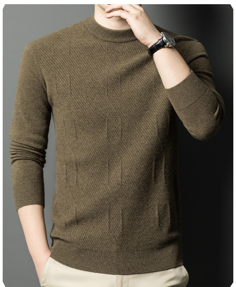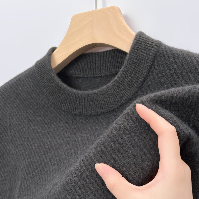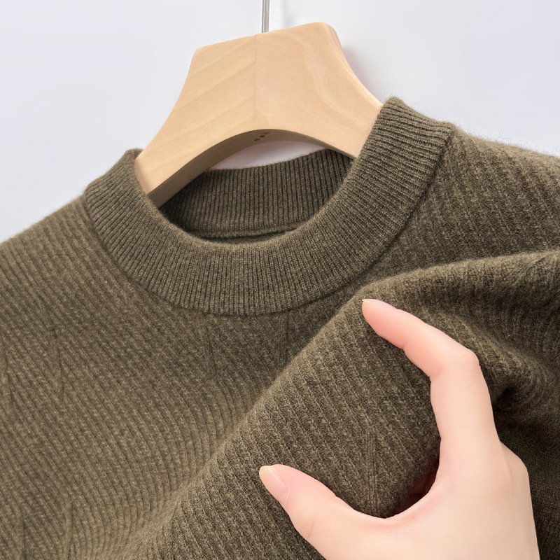[약양모] 남자 둥근 목 스웨터 가을과 겨울 두꺼운 스웨터 중년 아버지 스웨터