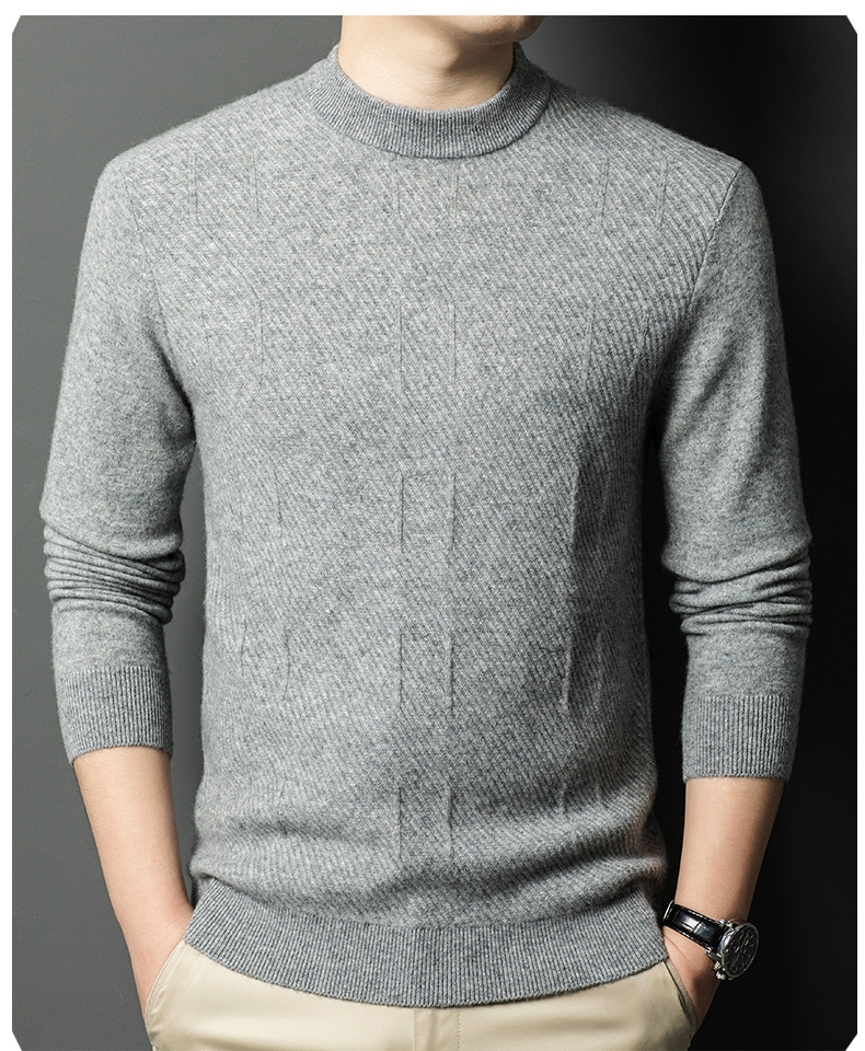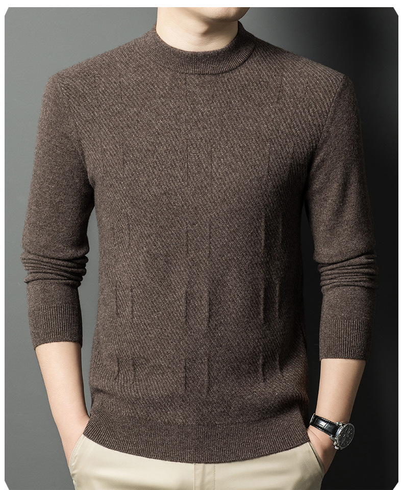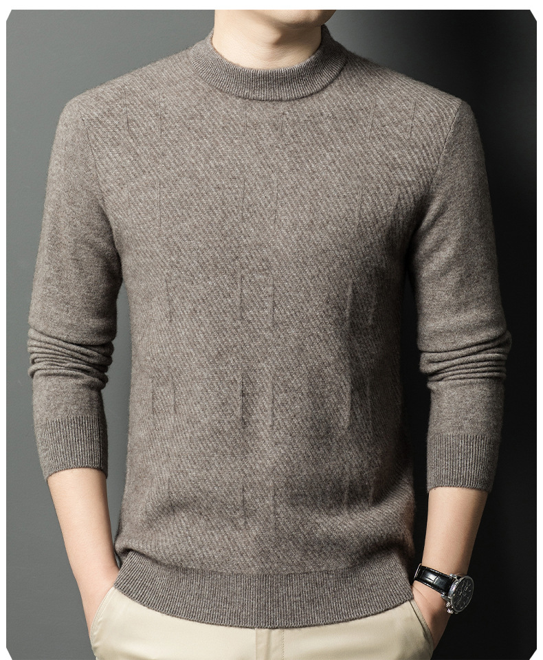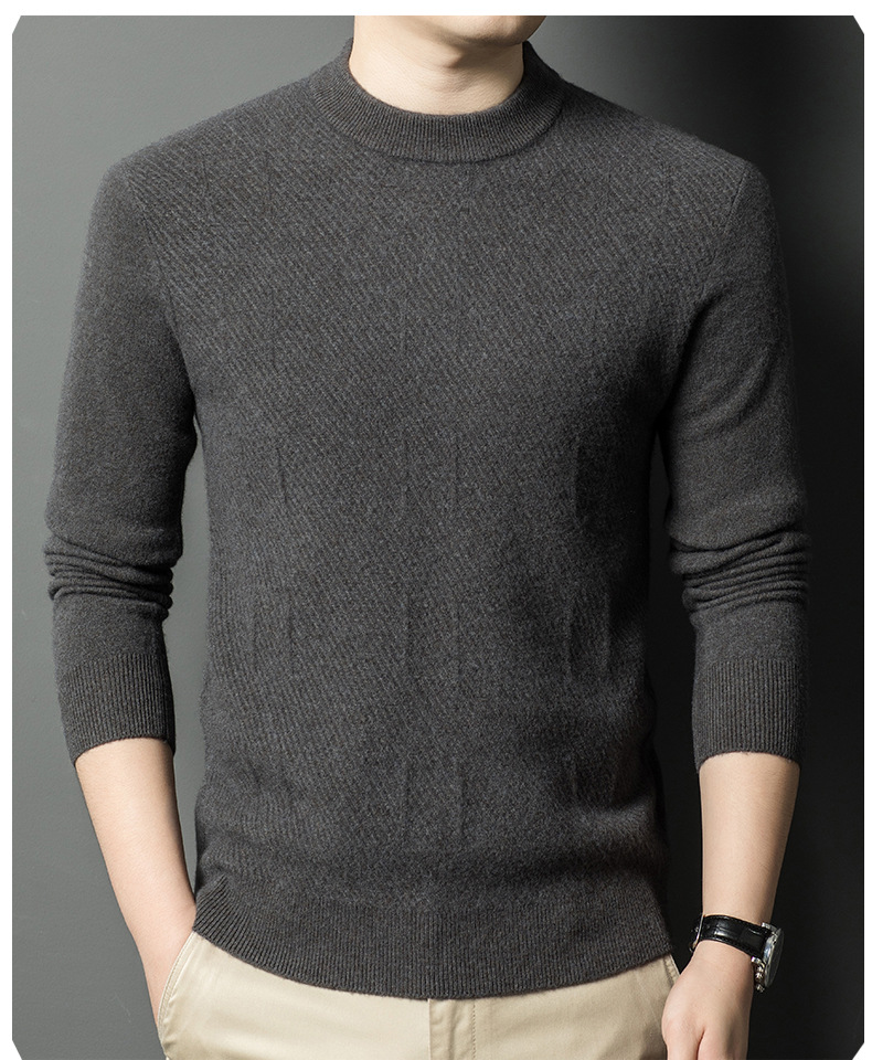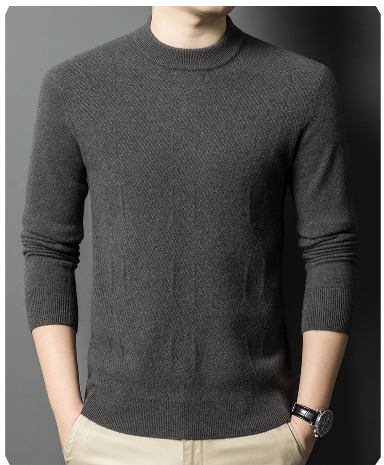 [약양모] 남자 둥근 목 스웨터 가을과 겨울 두꺼운 스웨터 중년 아버지 스웨터