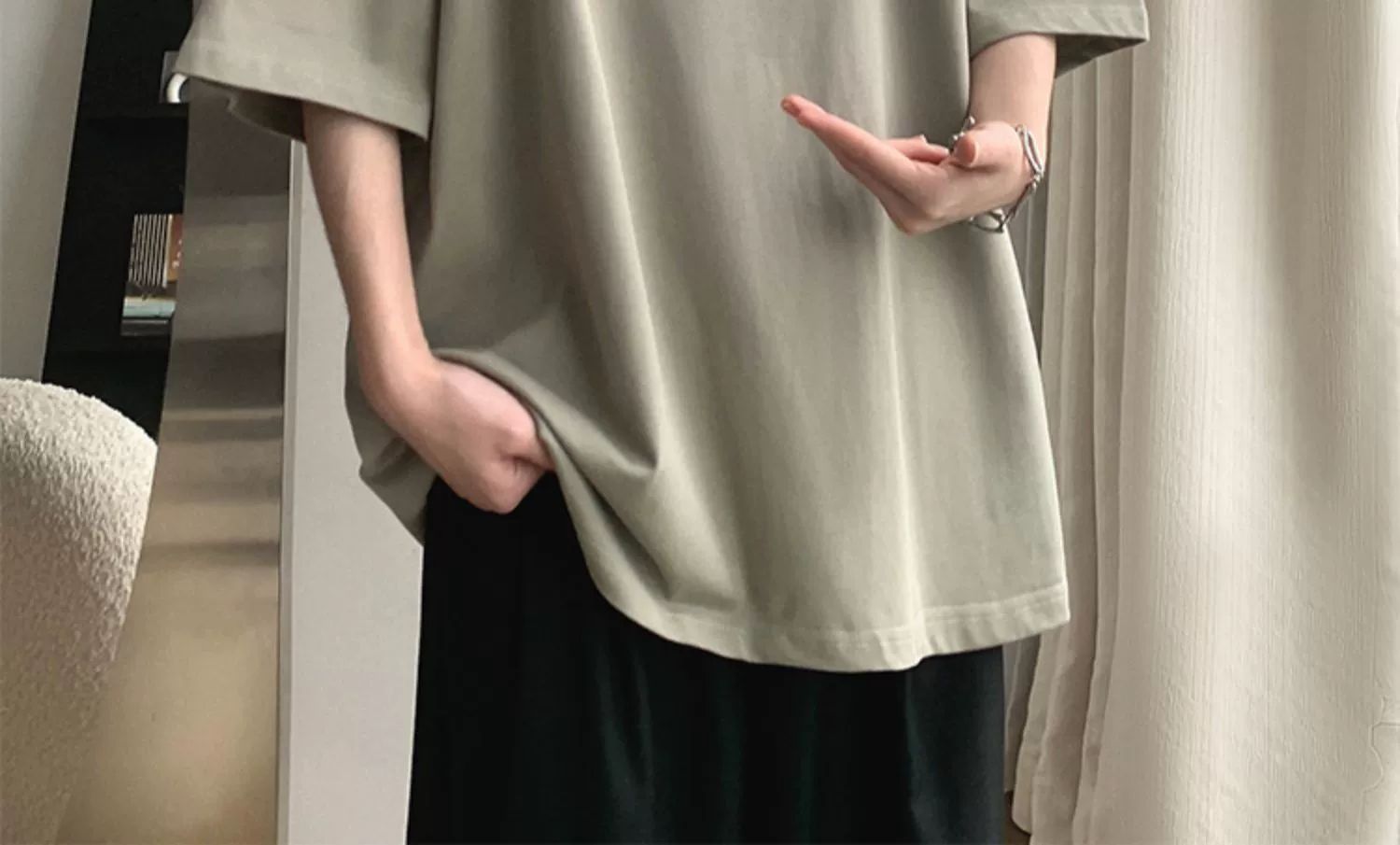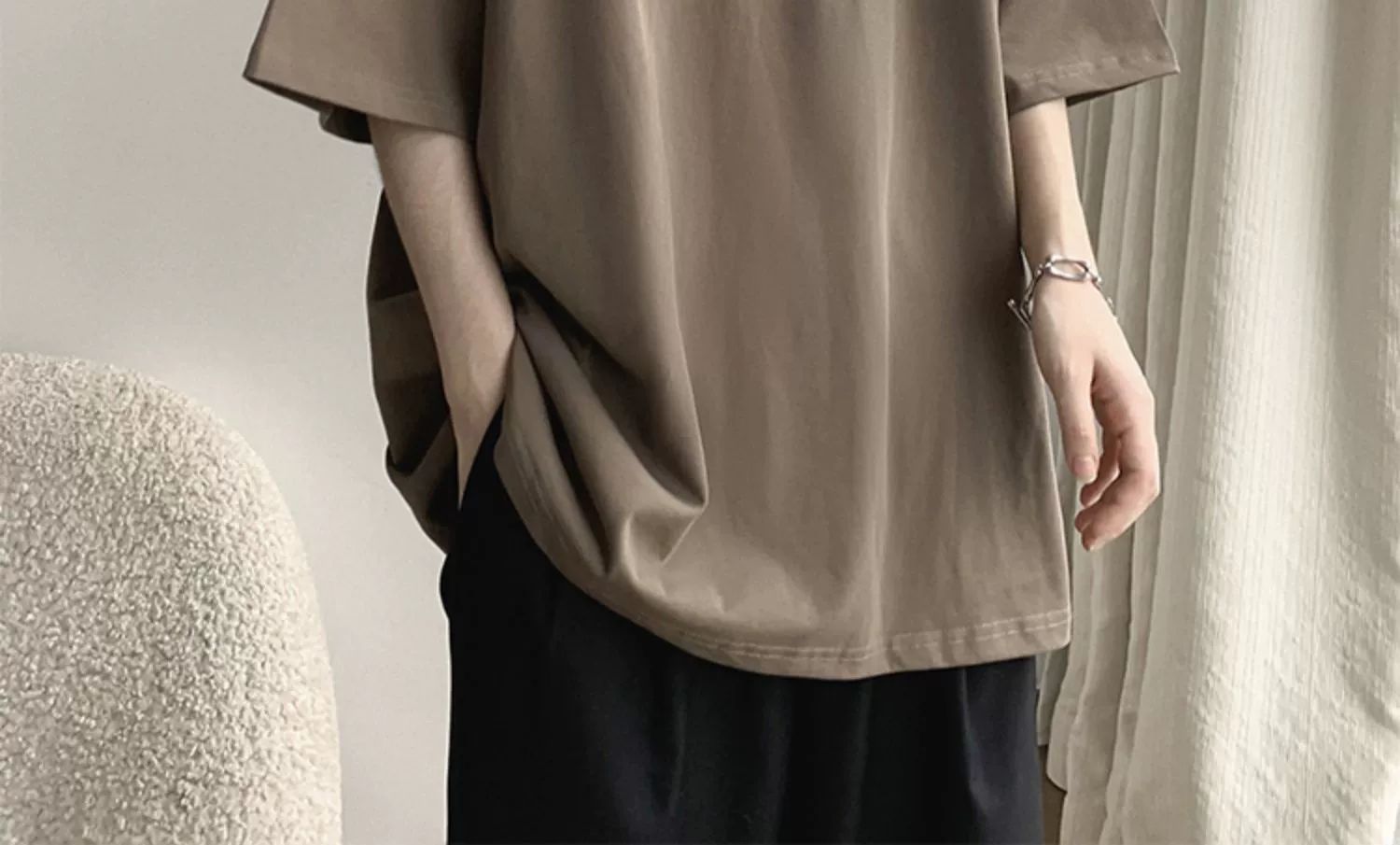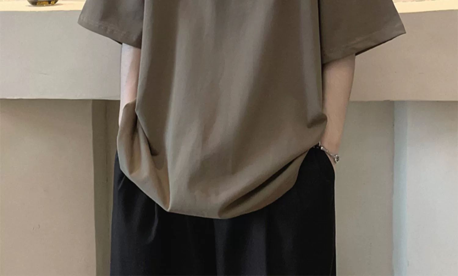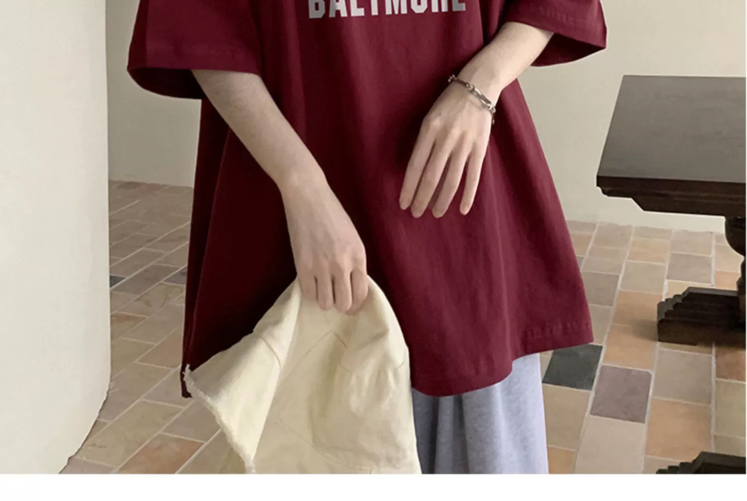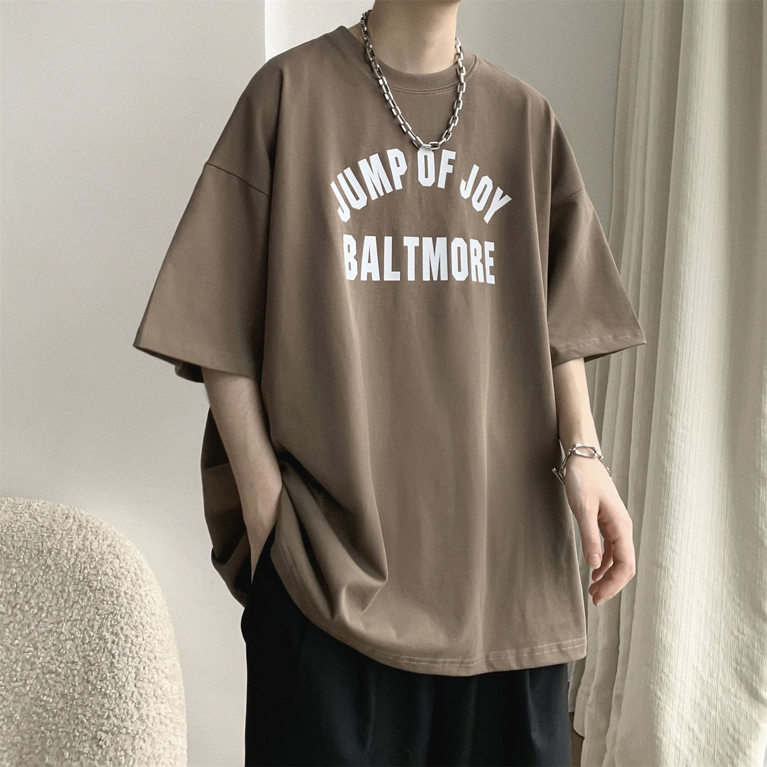 버건디 아메리칸 스타일 하이 스트리트 반팔 티셔츠 남성 패셔너블 브랜드 여름 세븐 슬리브 헤비 웨이트 의류 유행 퓨어 코튼 탑스토어 가기