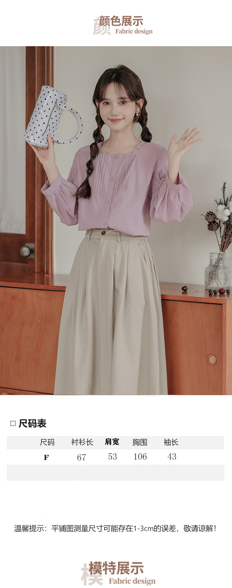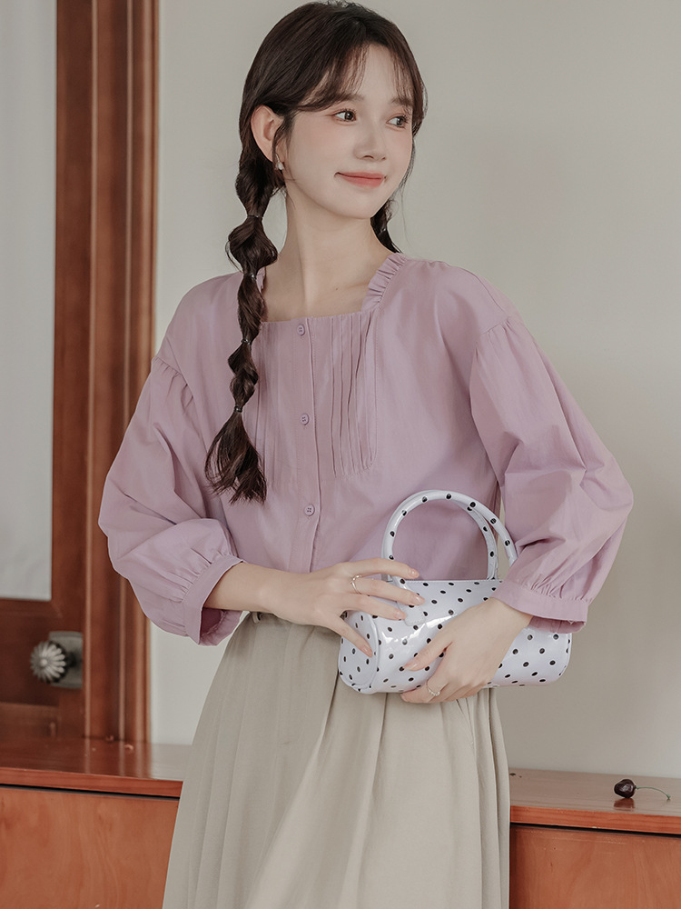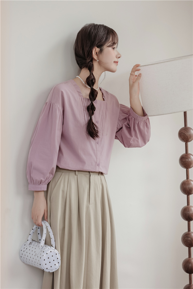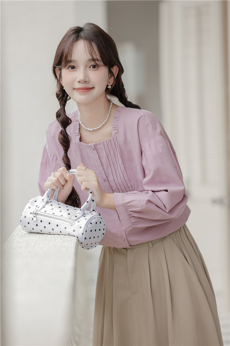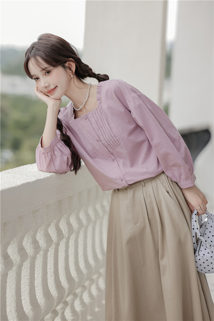 가을 2024 년 새로운 프렌치 퍼플 세련된 달콤한 스퀘어 칼라 9 포인트 슬리브 랜턴 슬리브 셔츠