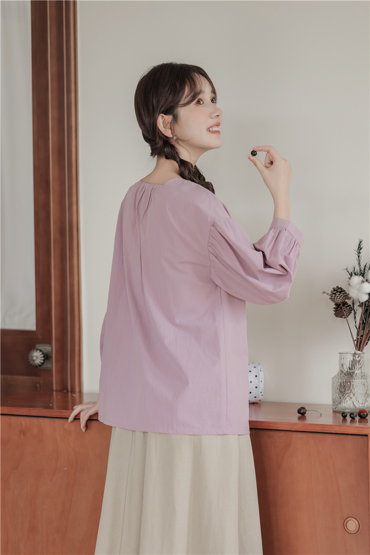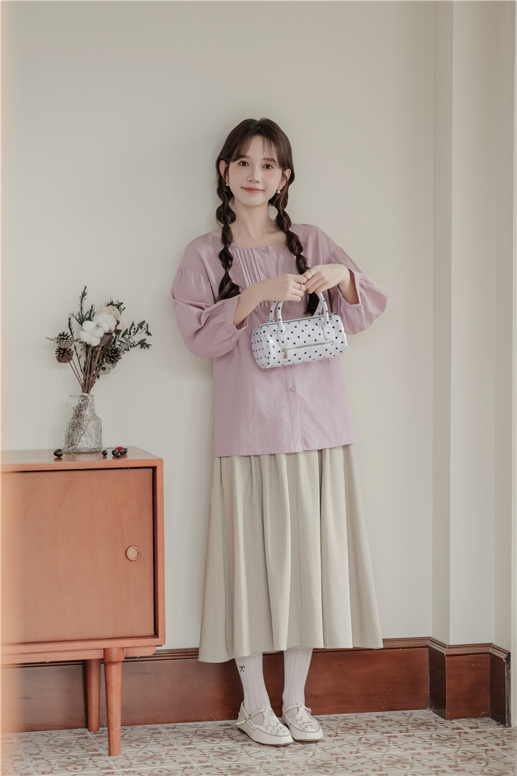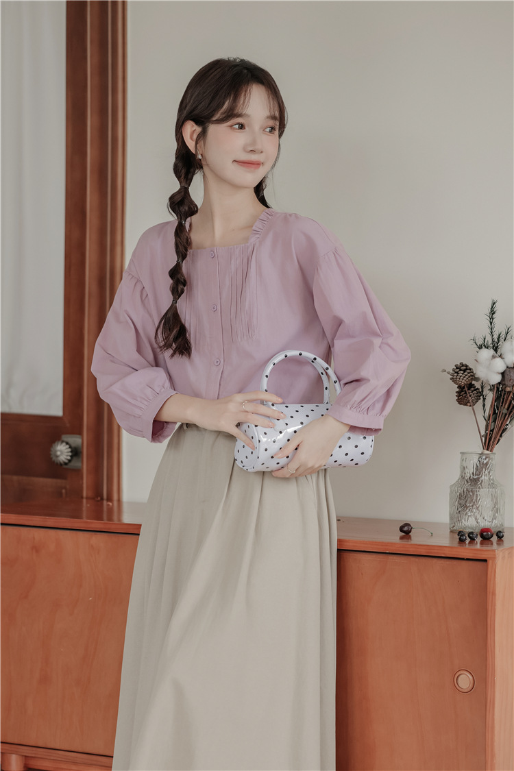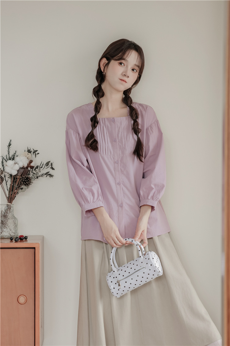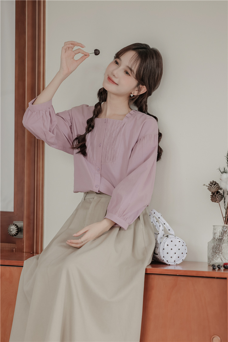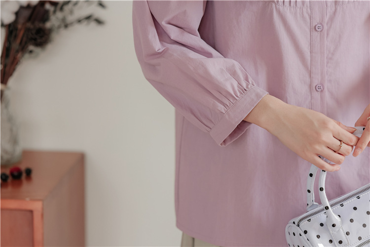 가을 2024 년 새로운 프렌치 퍼플 세련된 달콤한 스퀘어 칼라 9 포인트 슬리브 랜턴 슬리브 셔츠
