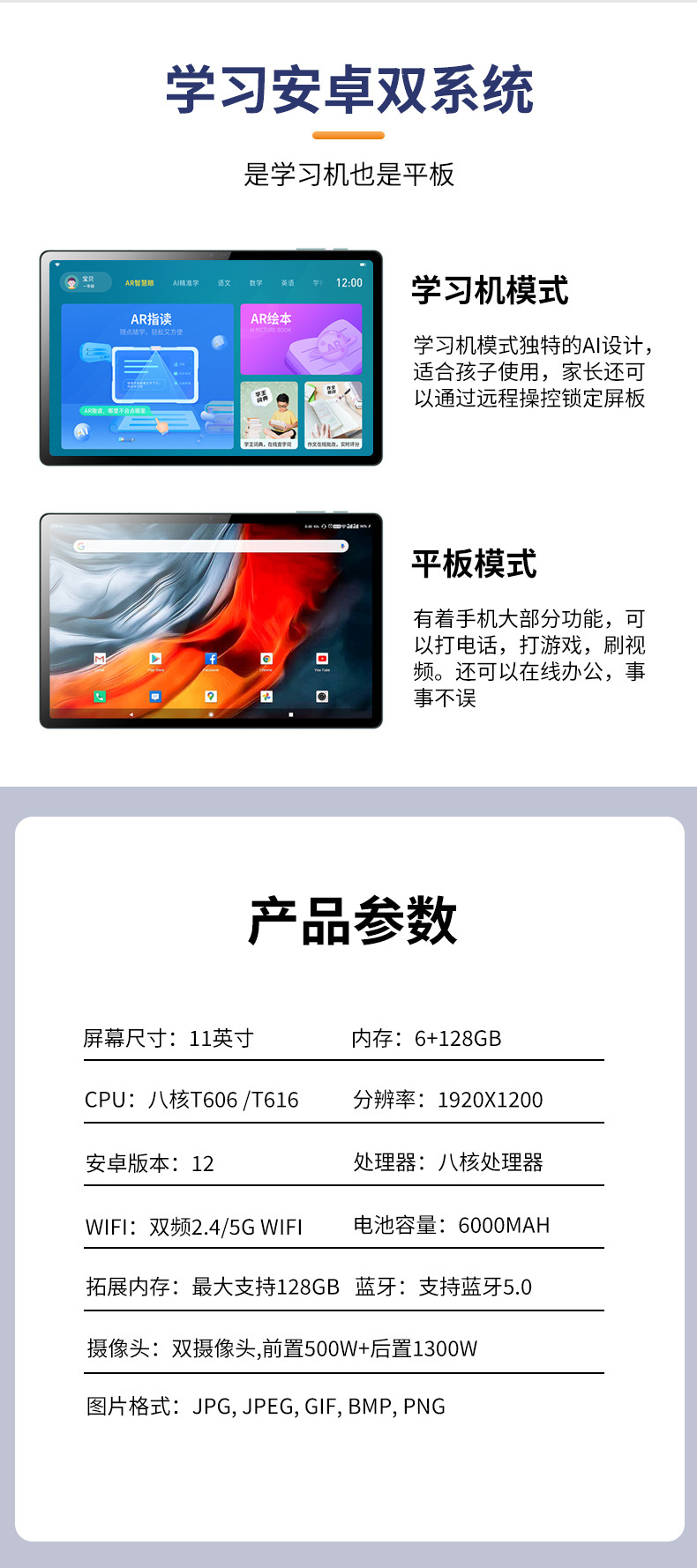 학습 전용 11inch 학습 태블릿 대형 스크린 안드로이드 스마트 태블릿 컴퓨터 Octa Core Ai 지능형 학습실 태블릿스토어 가기