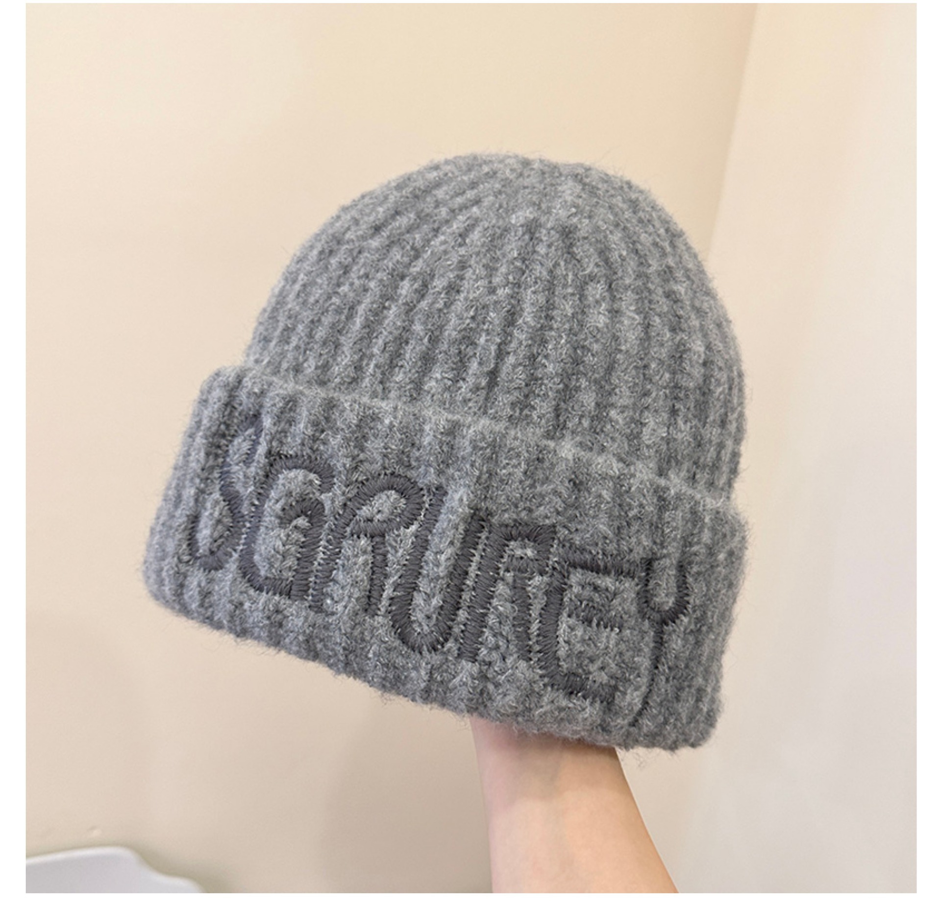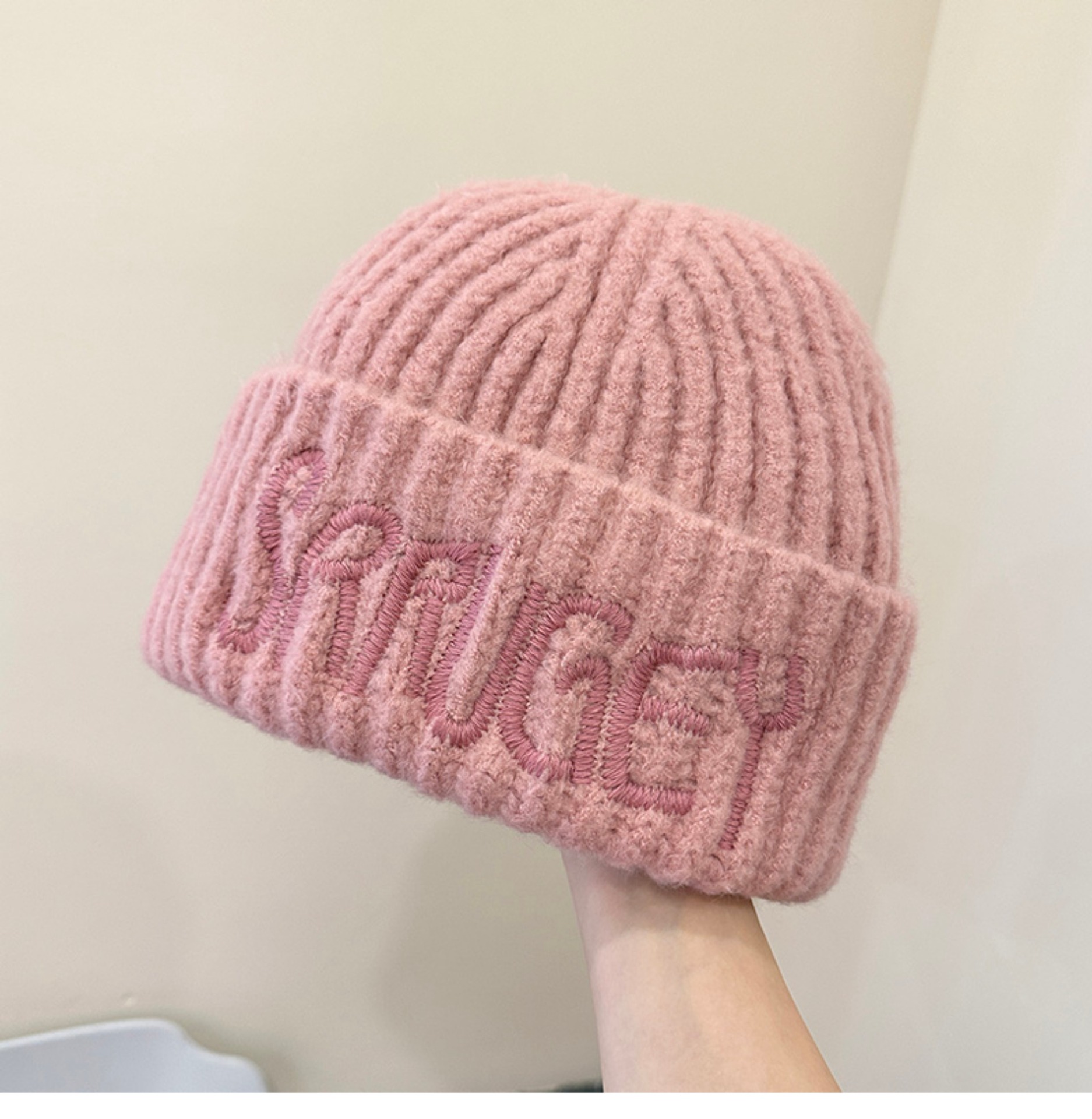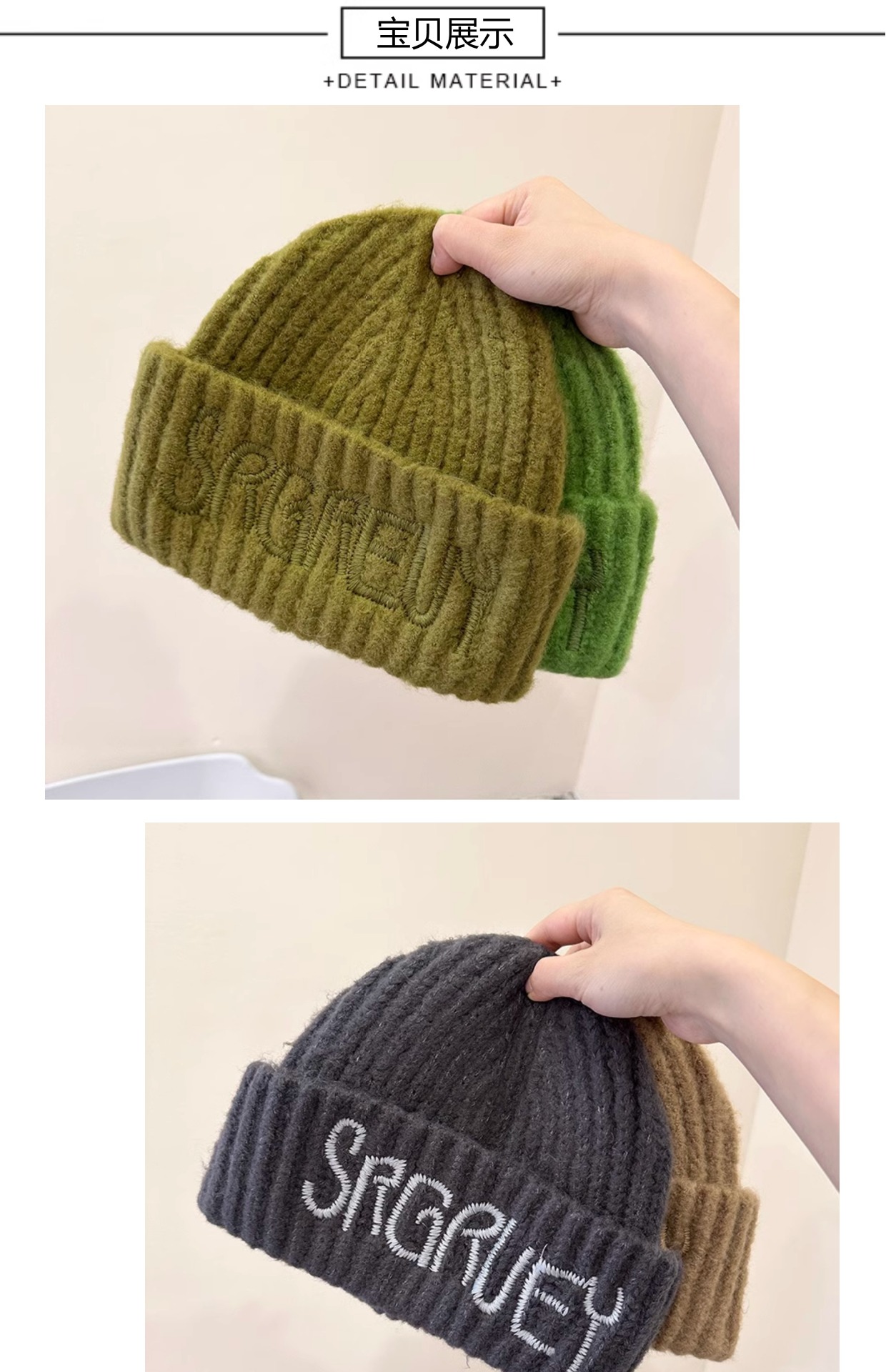미국 스타일 대형 라벨 편지 자수 울 모자 가을과 겨울 얼굴 작은 니트 모자 풀오버 따뜻한 귀 보호 큰 머리 차가운 모자스토어 가기