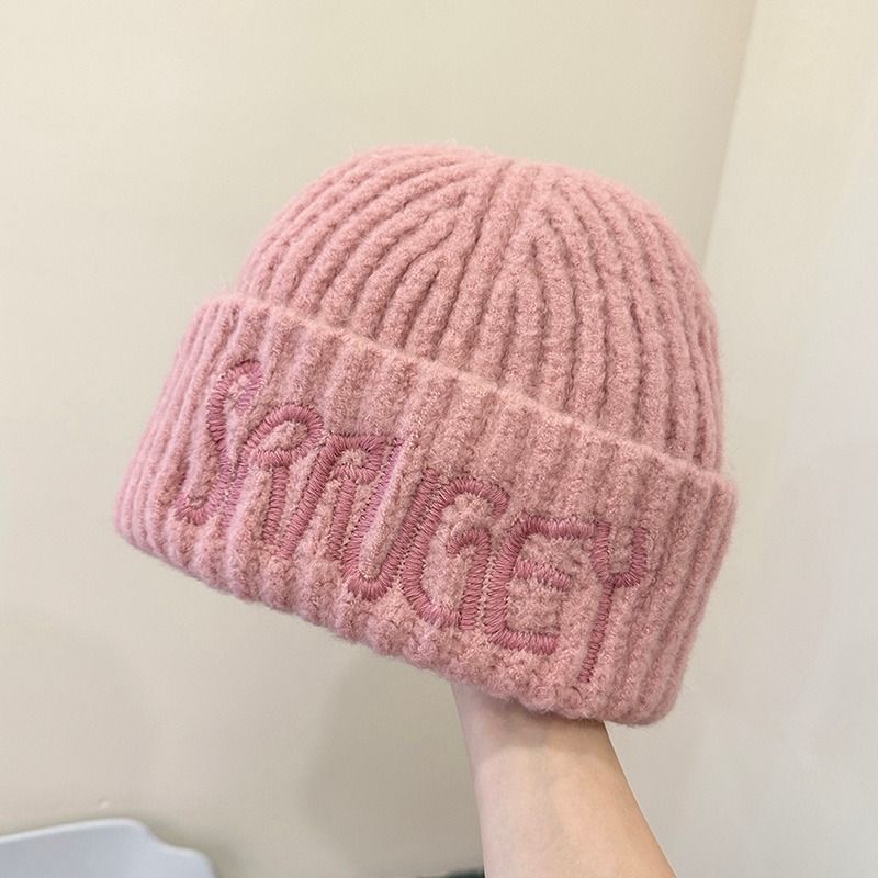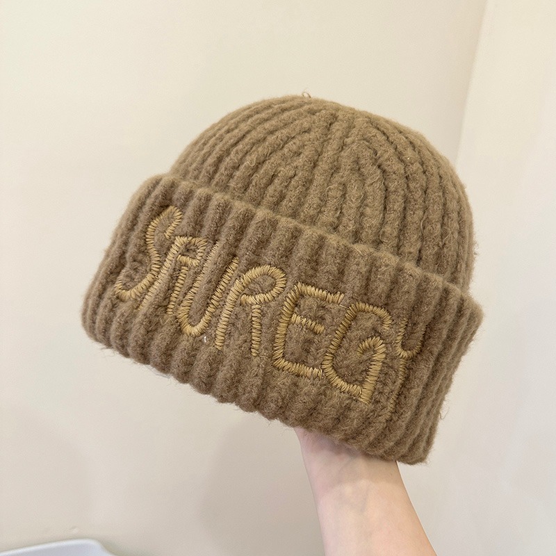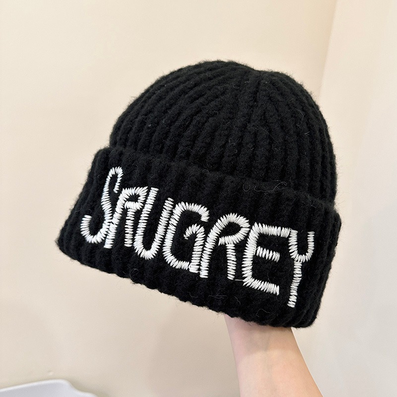 미국 스타일 대형 라벨 편지 자수 울 모자 가을과 겨울 얼굴 작은 니트 모자 풀오버 따뜻한 귀 보호 큰 머리 차가운 모자