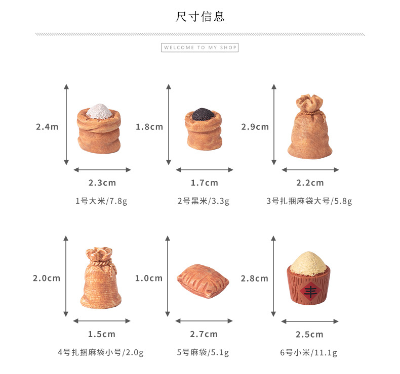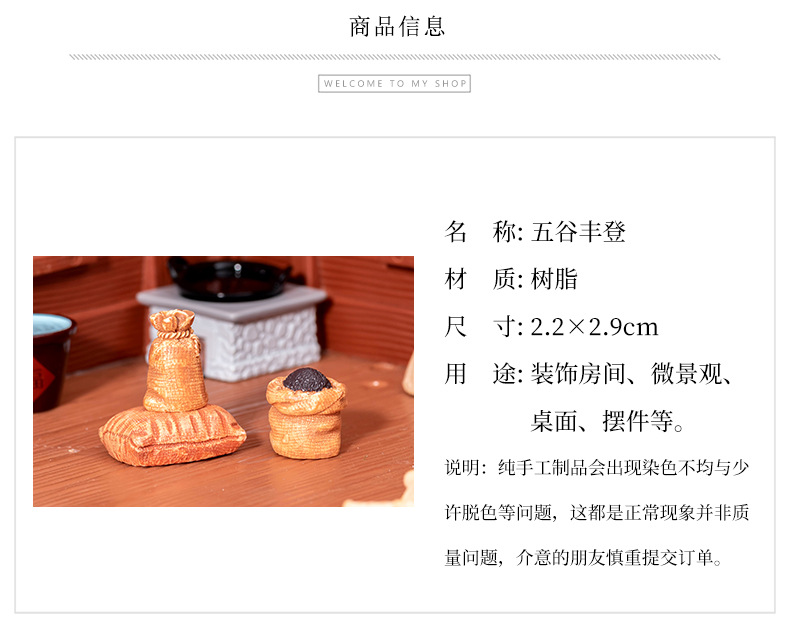 마이크로 풍경 곡물 푹신한 장식품 창조적 인 빈티지 자루 쌀 쌀 검은 쌀 수지 장식품 홈 장식스토어 가기