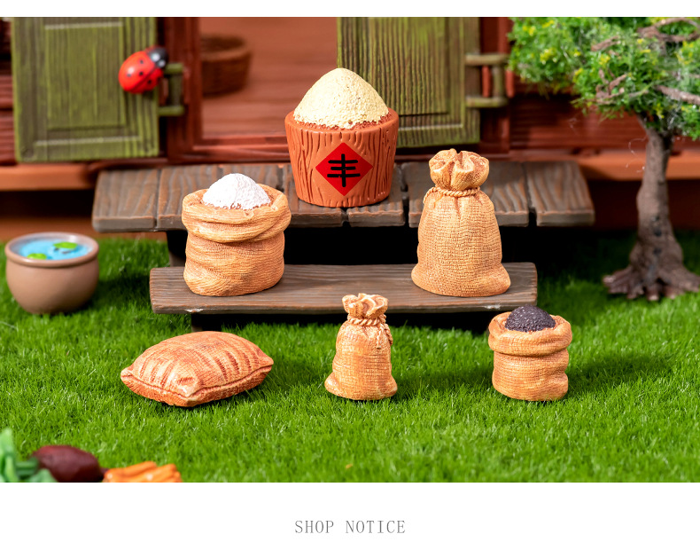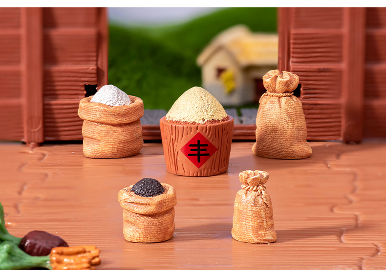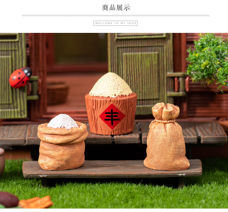 마이크로 풍경 곡물 푹신한 장식품 창조적 인 빈티지 자루 쌀 쌀 검은 쌀 수지 장식품 홈 장식