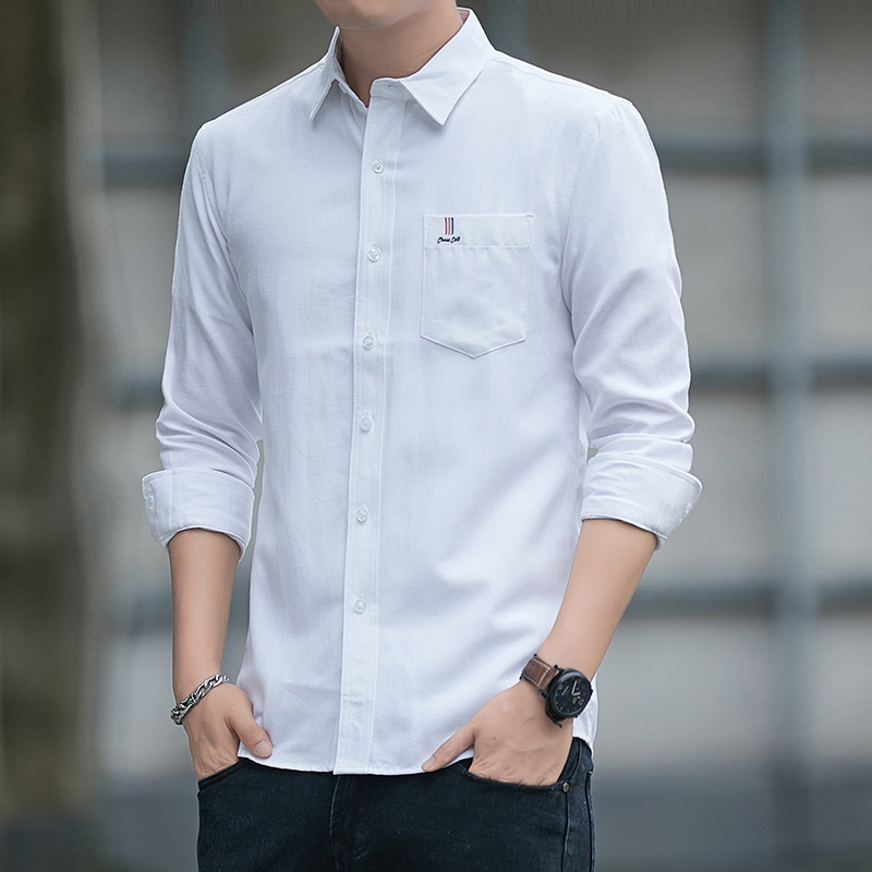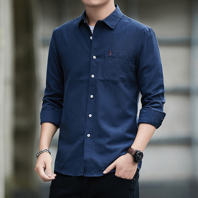 남성용 캐주얼 코튼 셔츠 가을 새로운 청소년 느슨한 솔리드 컬러 카디건 비 다림질 긴 소매 셔츠 트렌디 남성복스토어 가기