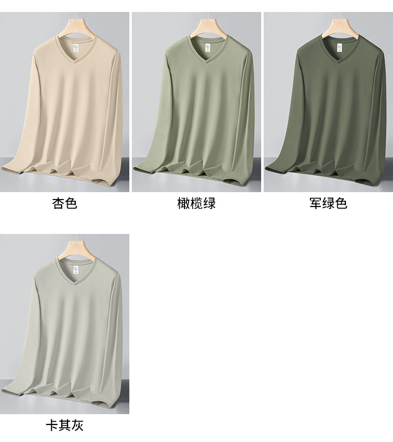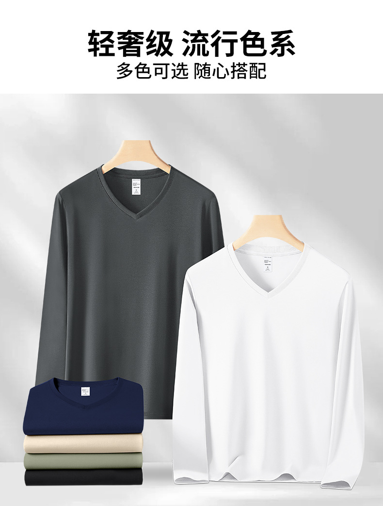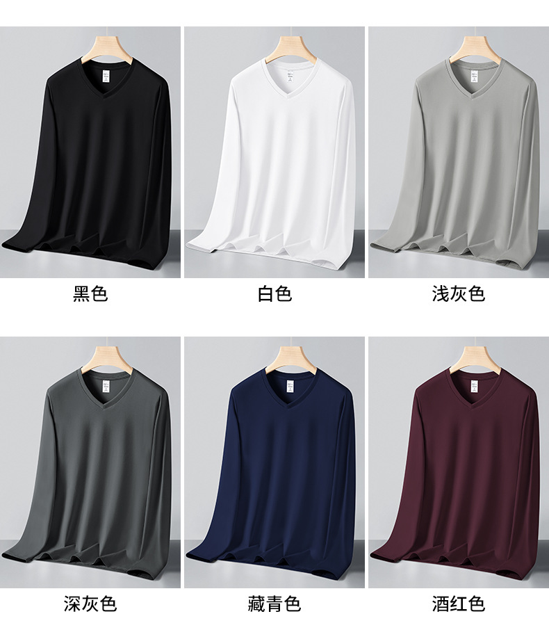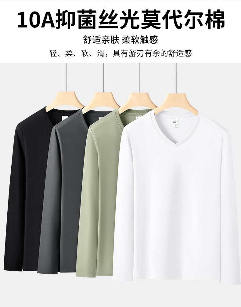 Mercerized modal 긴 소매 v-neck 티셔츠 2025 가을과 봄 슬림 다재다능한 단색 남성 밑바닥 셔츠 공장 아울렛스토어 가기