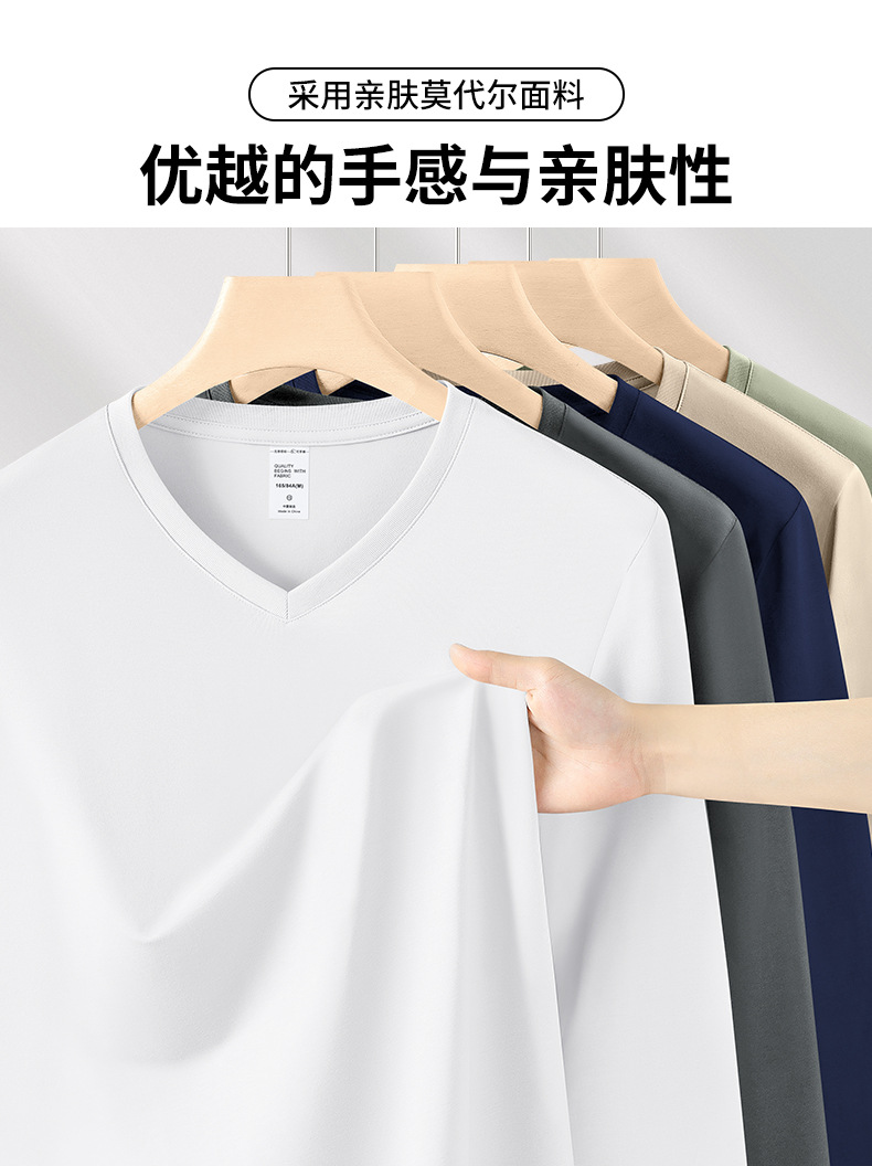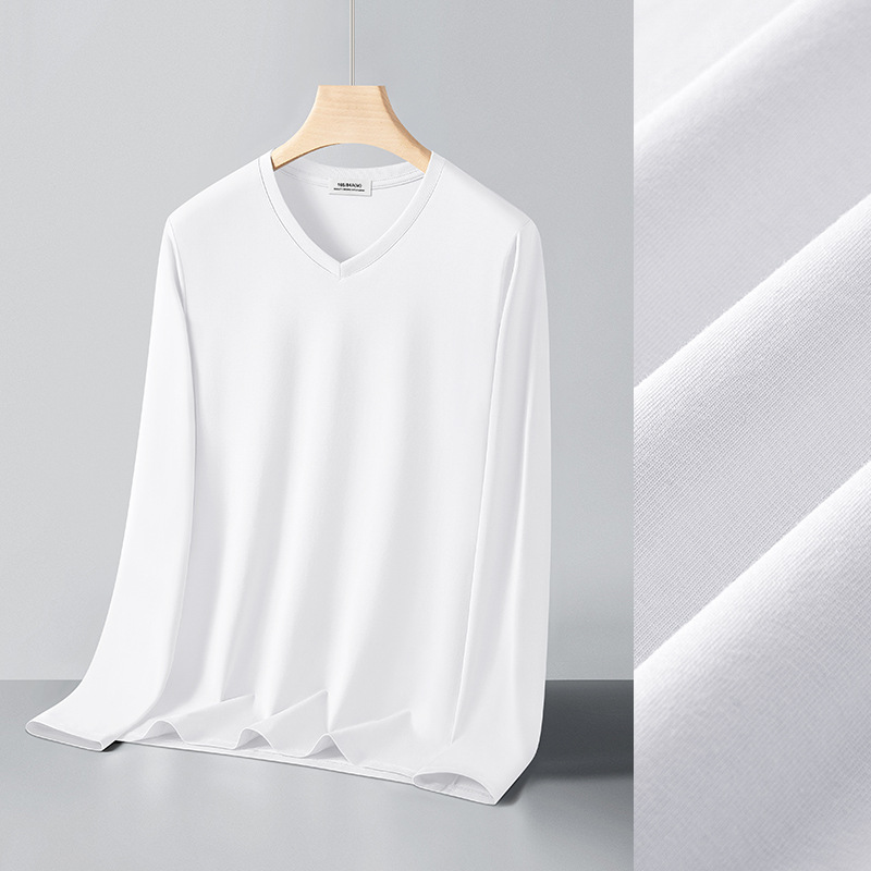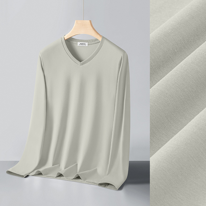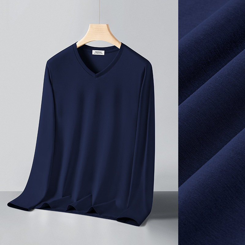 Mercerized modal 긴 소매 v-neck 티셔츠 2025 가을과 봄 슬림 다재다능한 단색 남성 밑바닥 셔츠 공장 아울렛