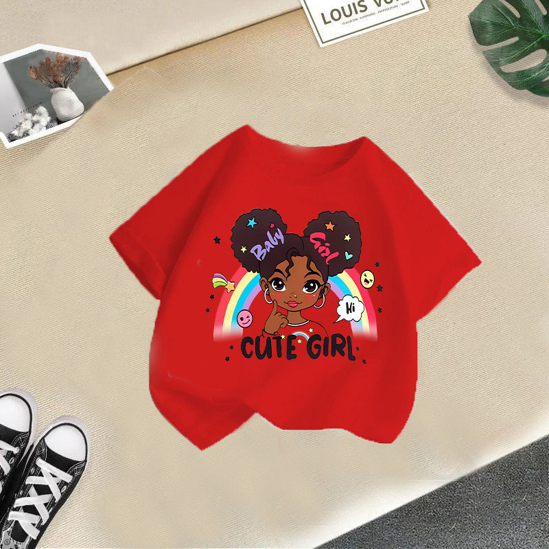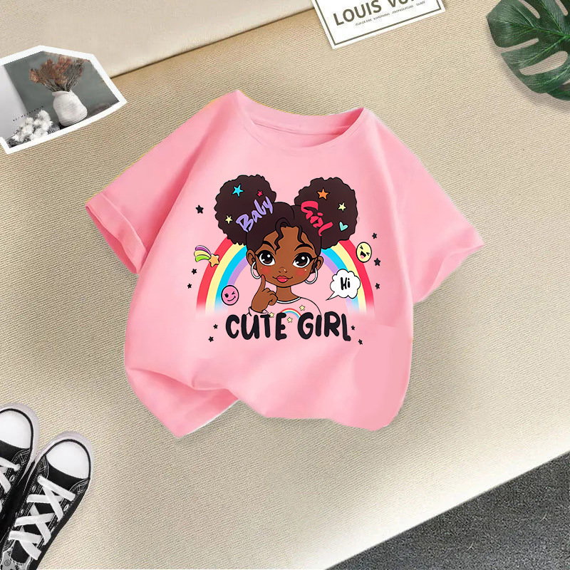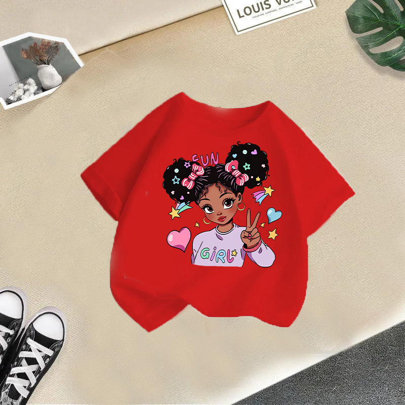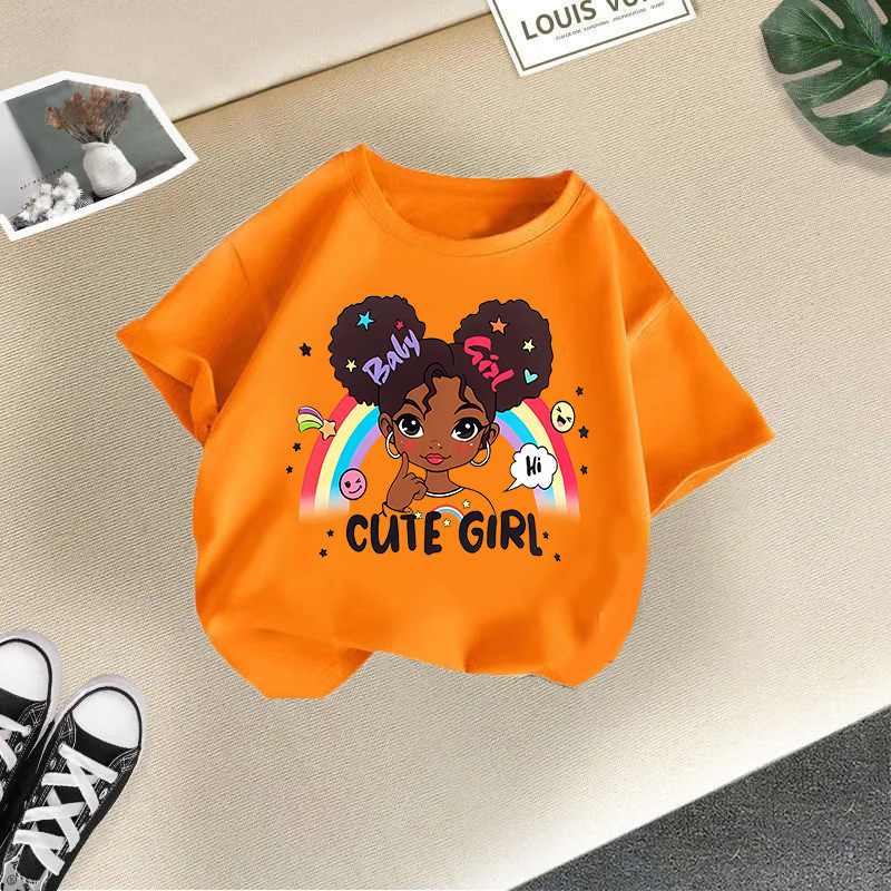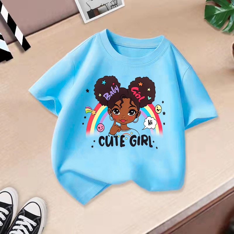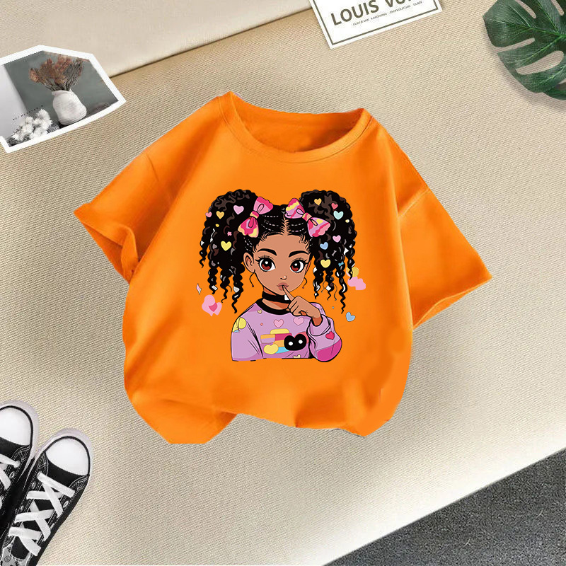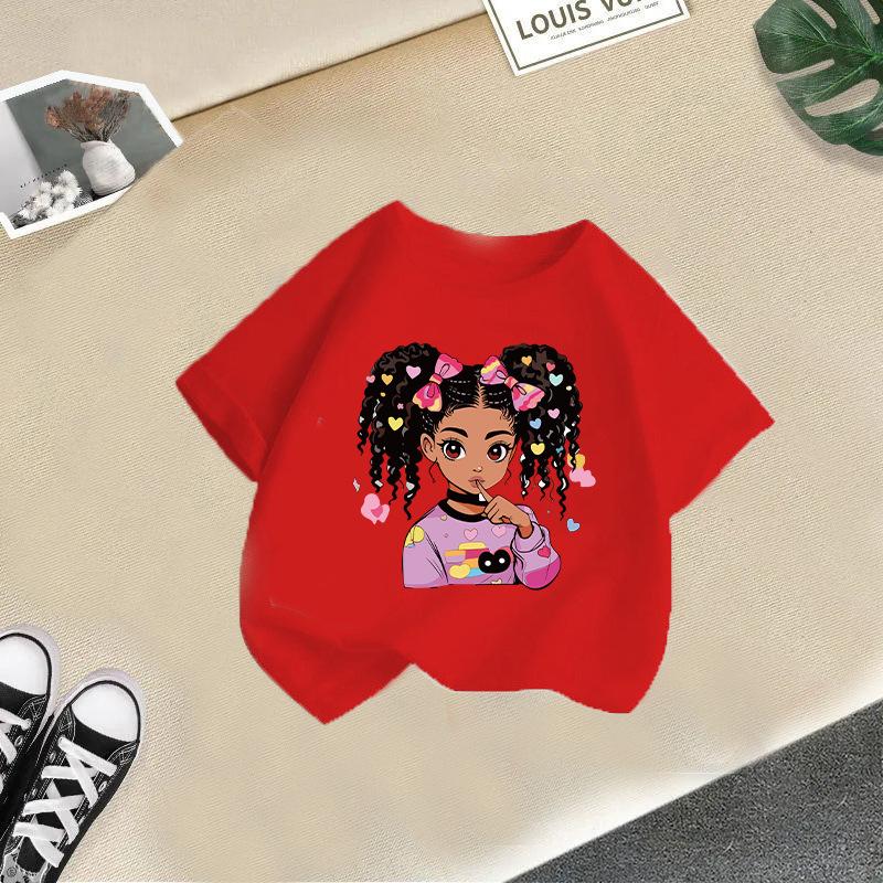 국경 간 대외 무역 소녀 캐주얼 라운드 넥 반팔 티셔츠 만화 인쇄 아동복 여름 새로운 어린이 탑 소녀