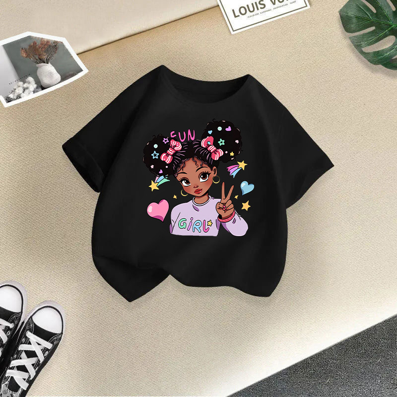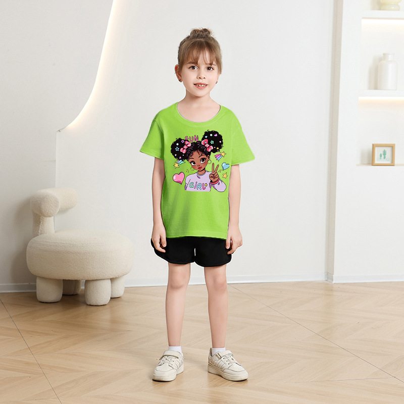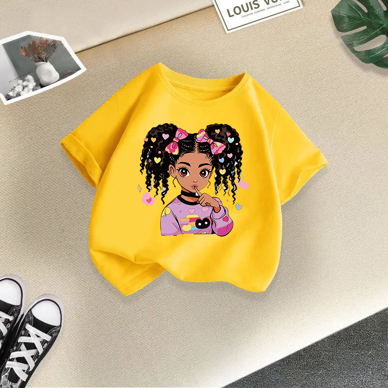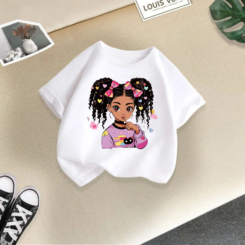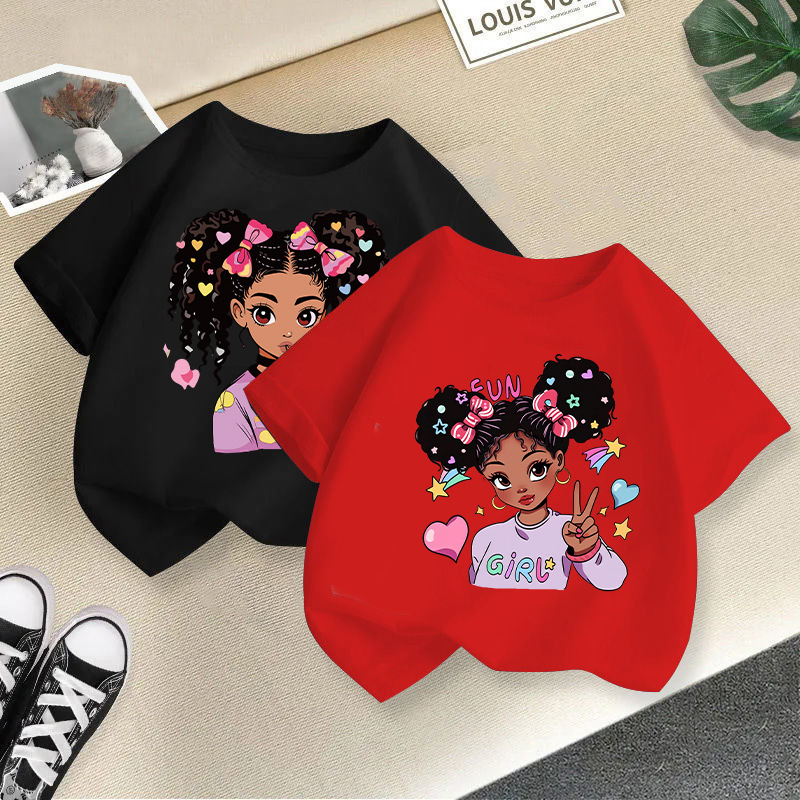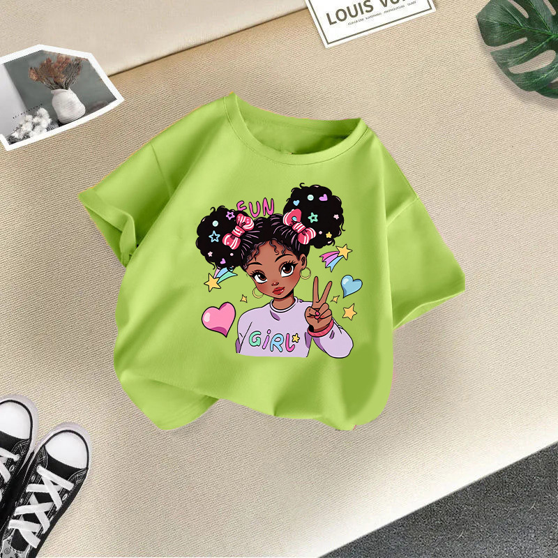국경 간 대외 무역 소녀 캐주얼 라운드 넥 반팔 티셔츠 만화 인쇄 아동복 여름 새로운 어린이 탑 소녀
