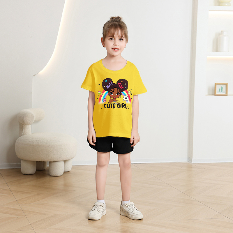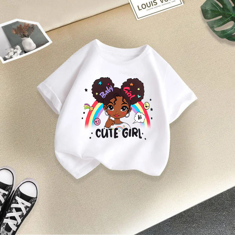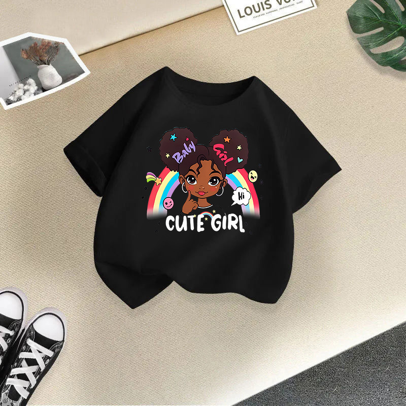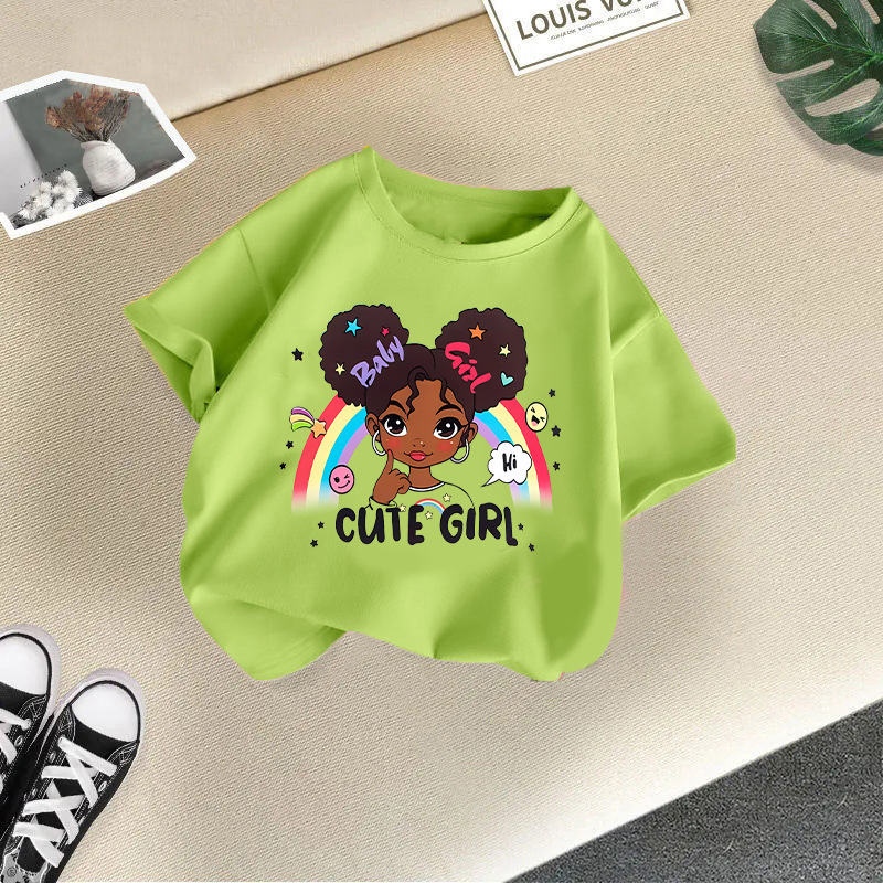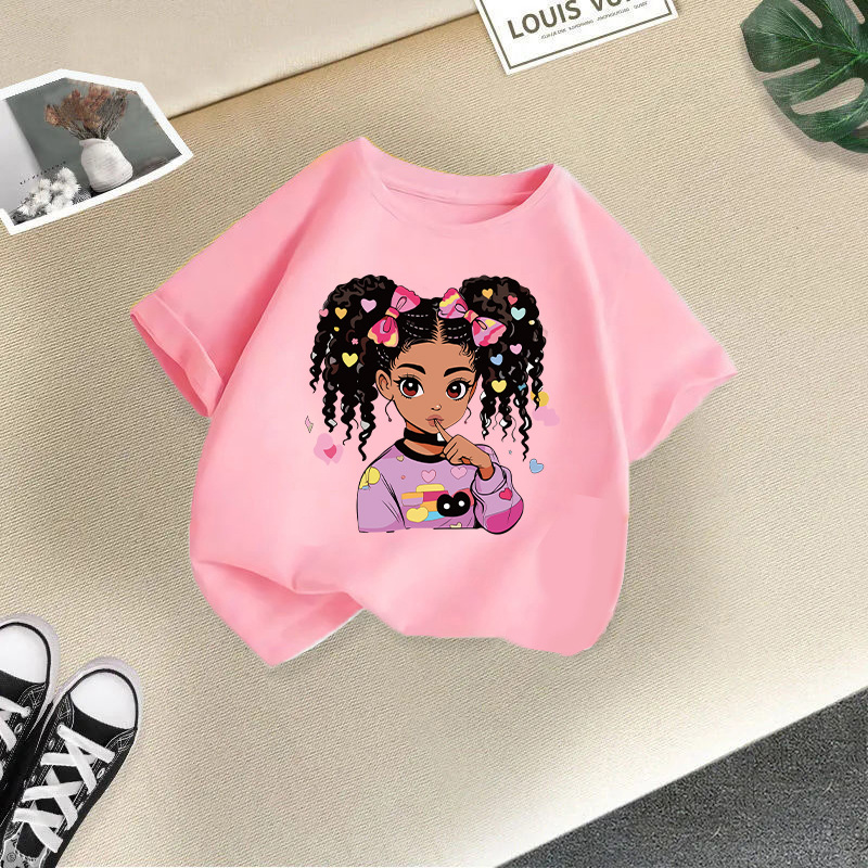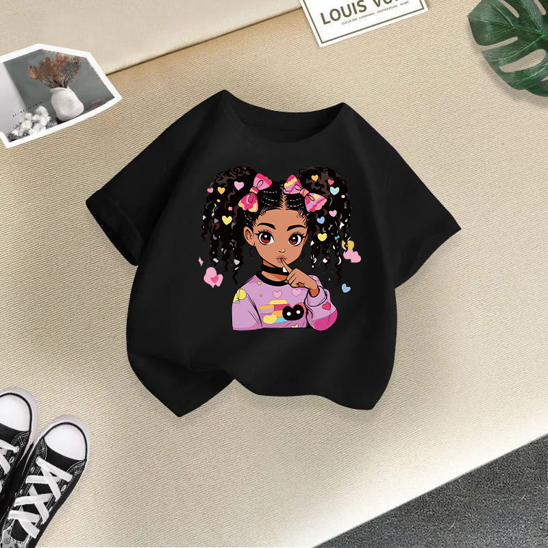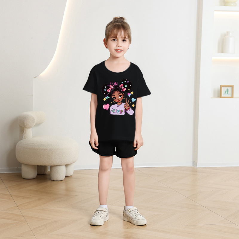 국경 간 대외 무역 소녀 캐주얼 라운드 넥 반팔 티셔츠 만화 인쇄 아동복 여름 새로운 어린이 탑 소녀