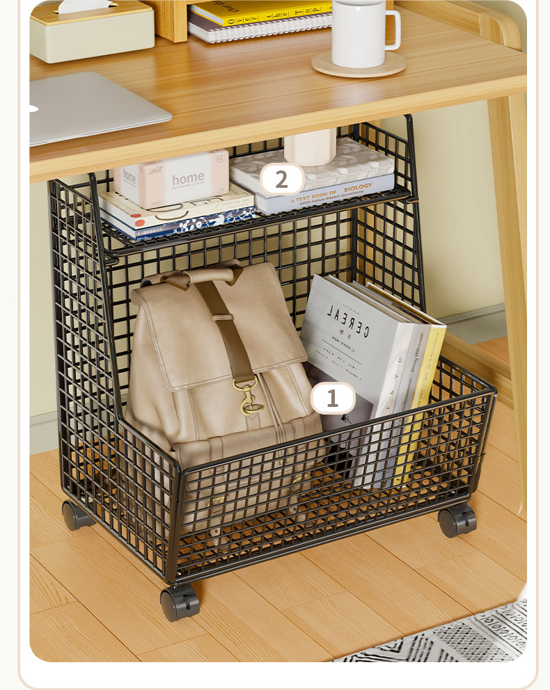 책상 학생 학교 가방 배치 아티팩트 아래 학교 가방 보관 랙 이동식 카트 북 계층화 된 보관 캐비닛