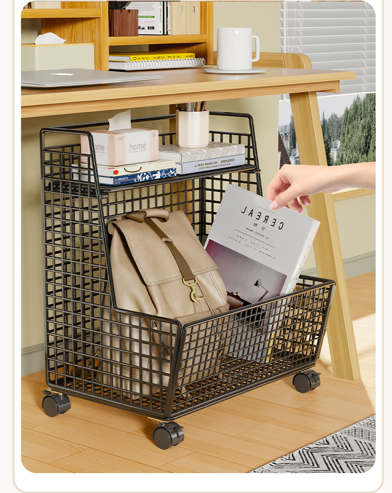 책상 학생 학교 가방 배치 아티팩트 아래 학교 가방 보관 랙 이동식 카트 북 계층화 된 보관 캐비닛스토어 가기