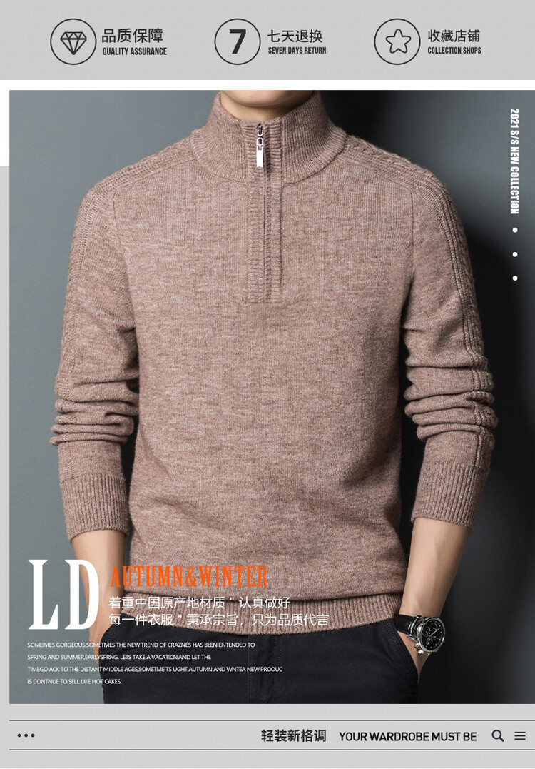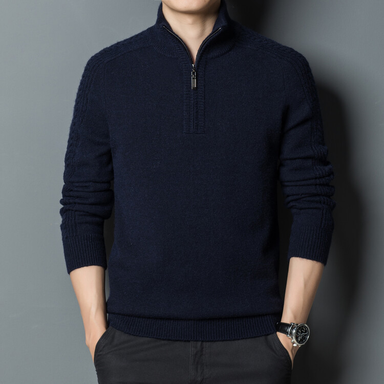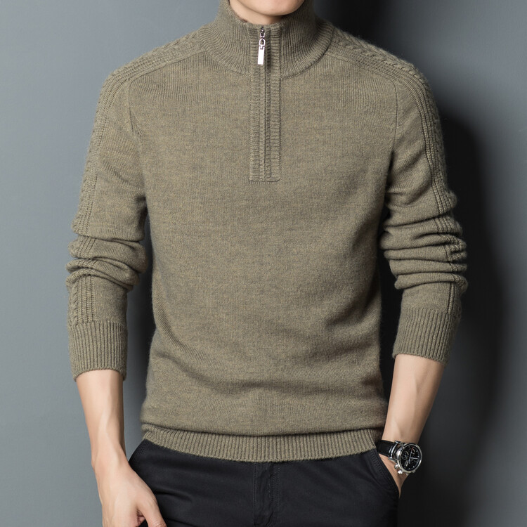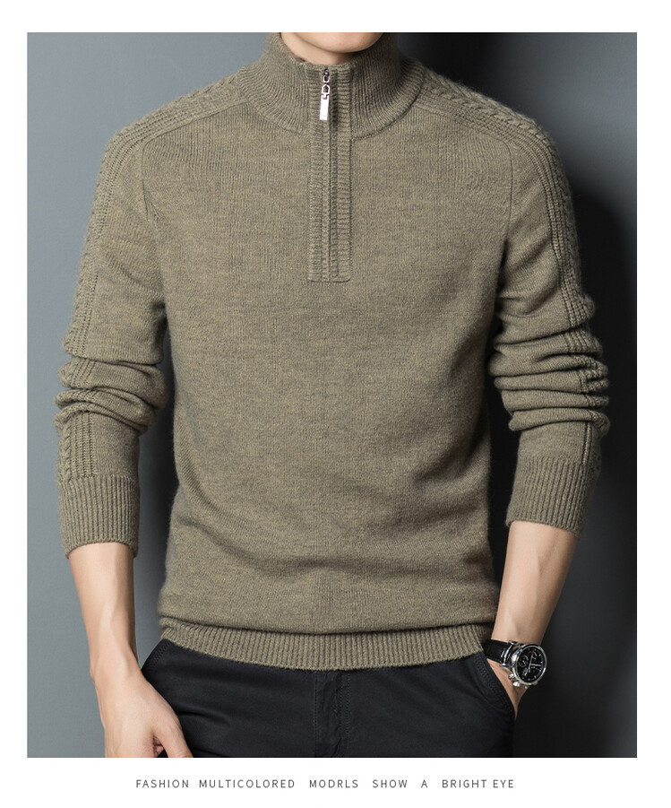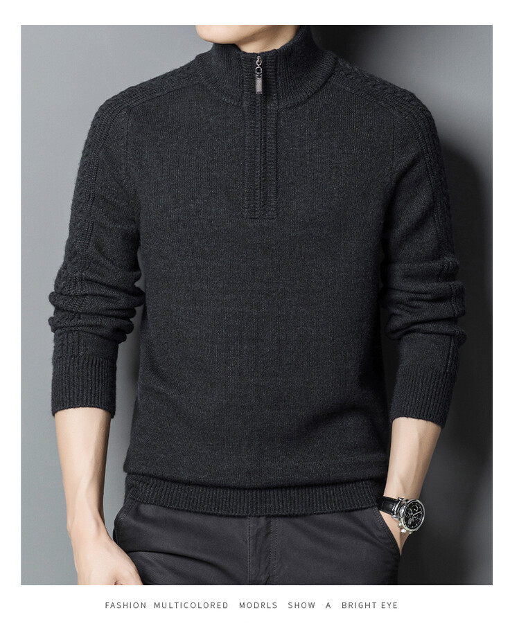 2024 가을과 겨울 지퍼 터틀넥 남성용 두꺼운 셔츠 중년 니트 베이스 스웨터 남성스토어 가기