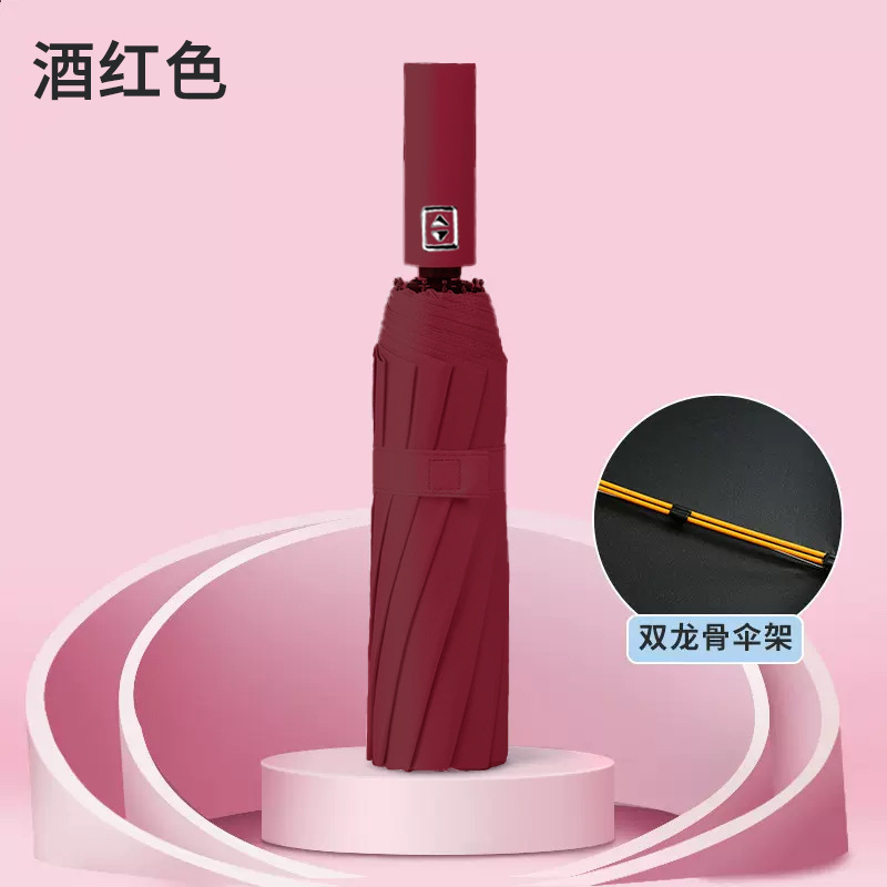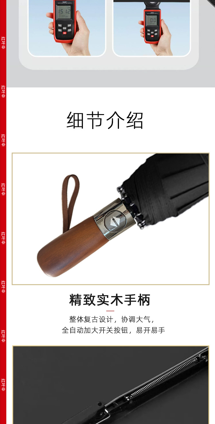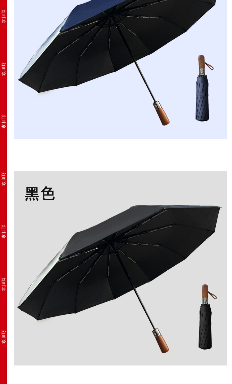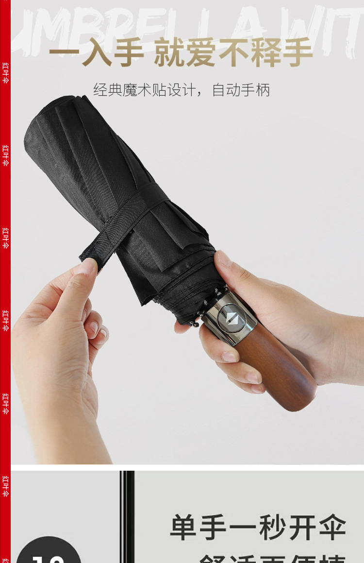 빨간 잎 증가 자동 맑고 비오는 이중 사용 쌍용 솔리드 우드 핸들 자외선 방지 블랙 접착제 도매 맞춤형 우산스토어 가기