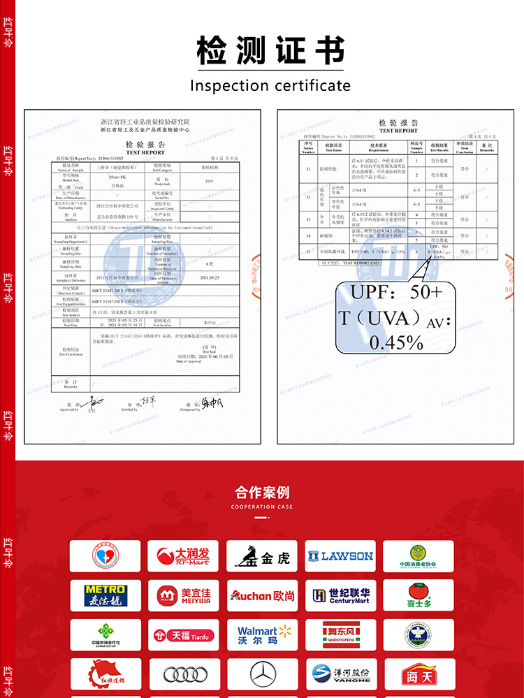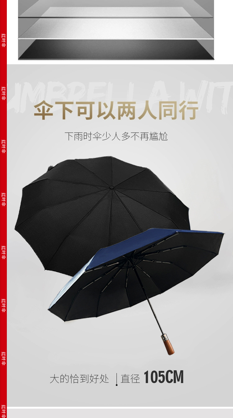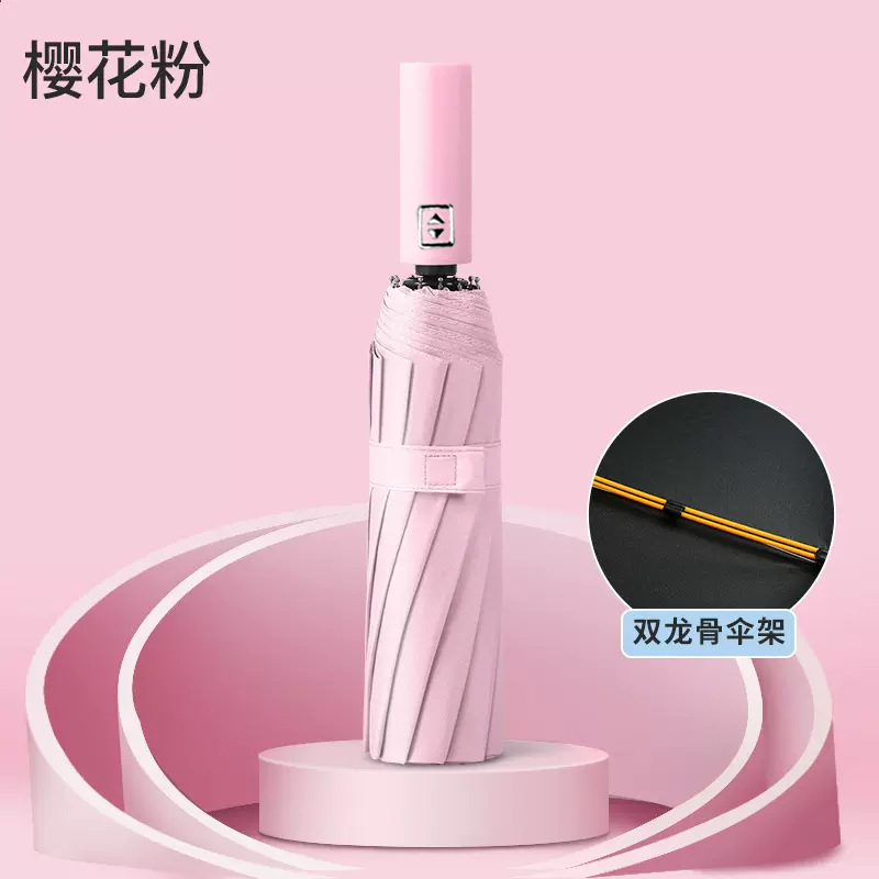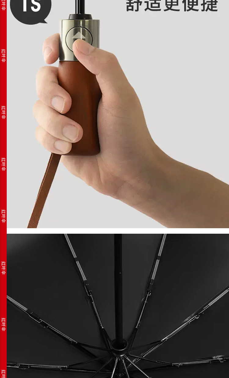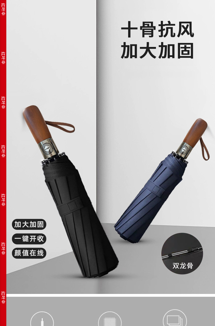 빨간 잎 증가 자동 맑고 비오는 이중 사용 쌍용 솔리드 우드 핸들 자외선 방지 블랙 접착제 도매 맞춤형 우산스토어 가기