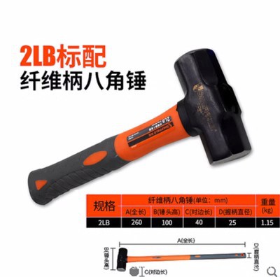 스틸 쉴드 S089102 대형 2LB 해머 충격 방지 해머 슬레지 해머 마스터 워크 해머 섬유 핸들 팔각형 해머