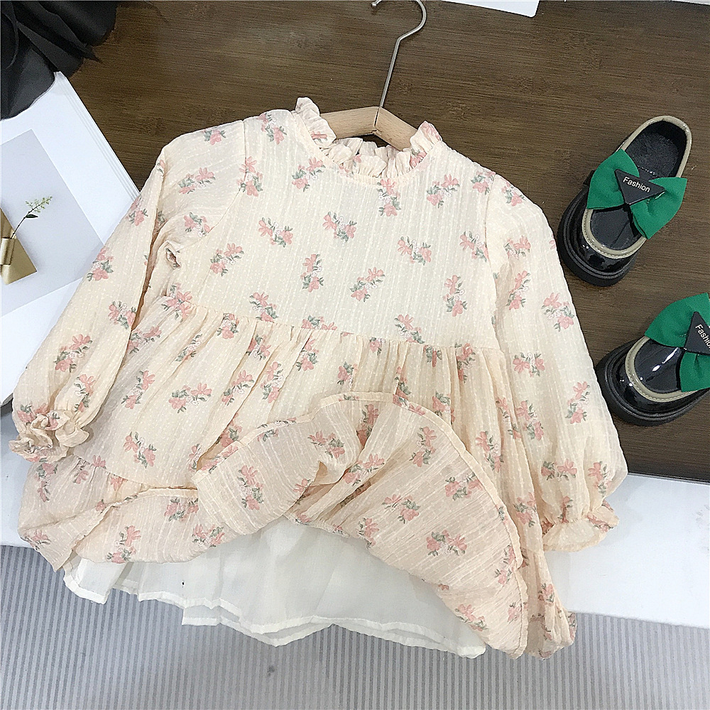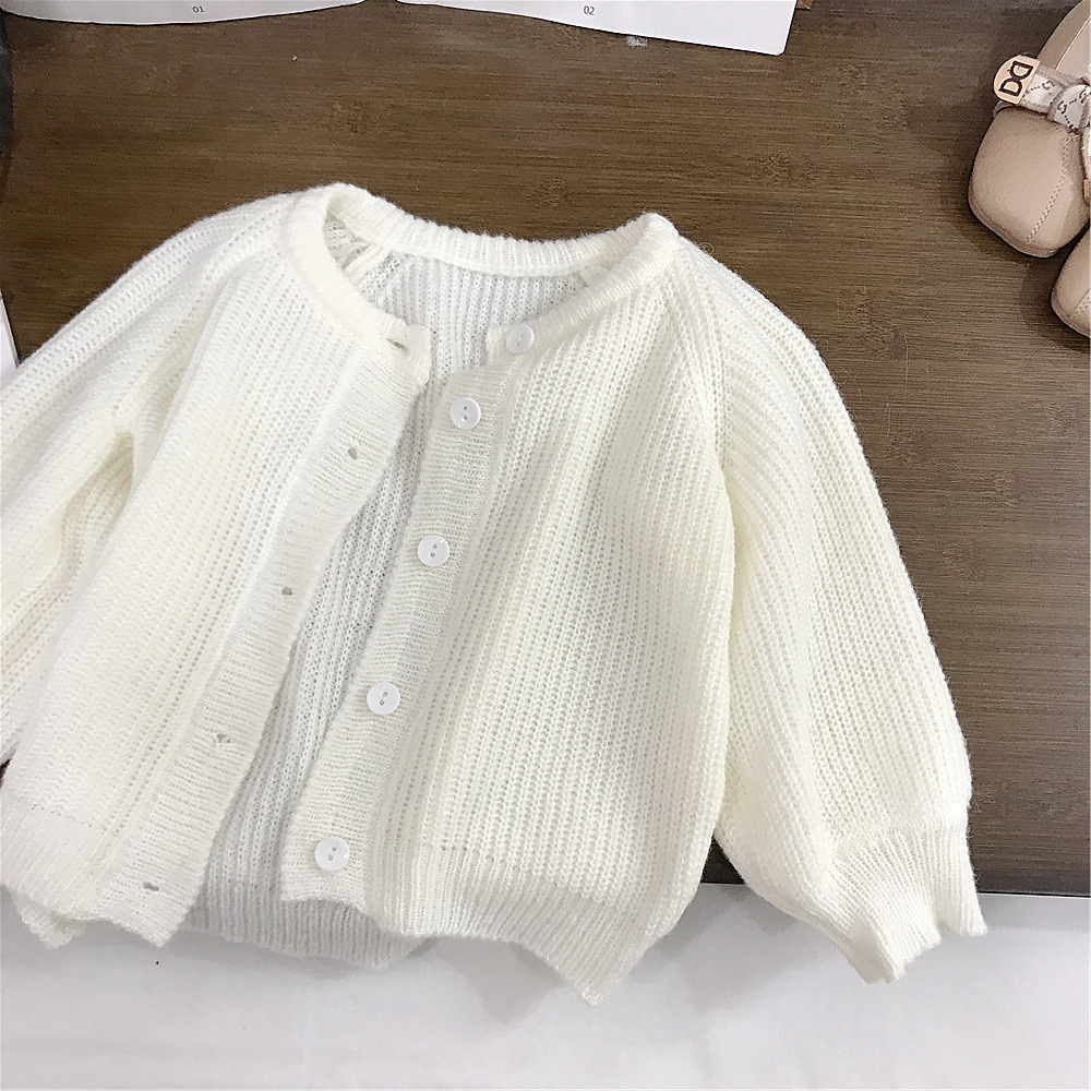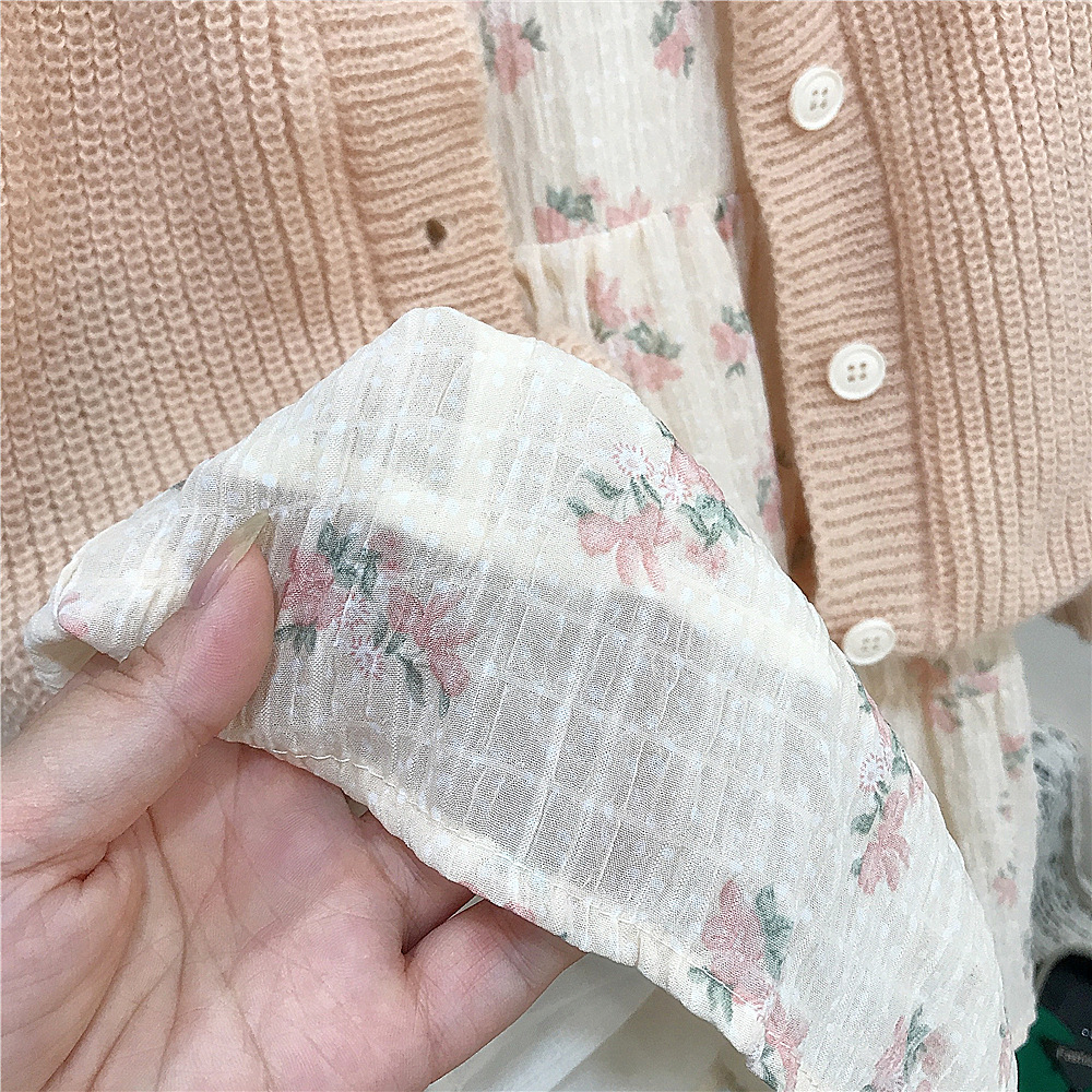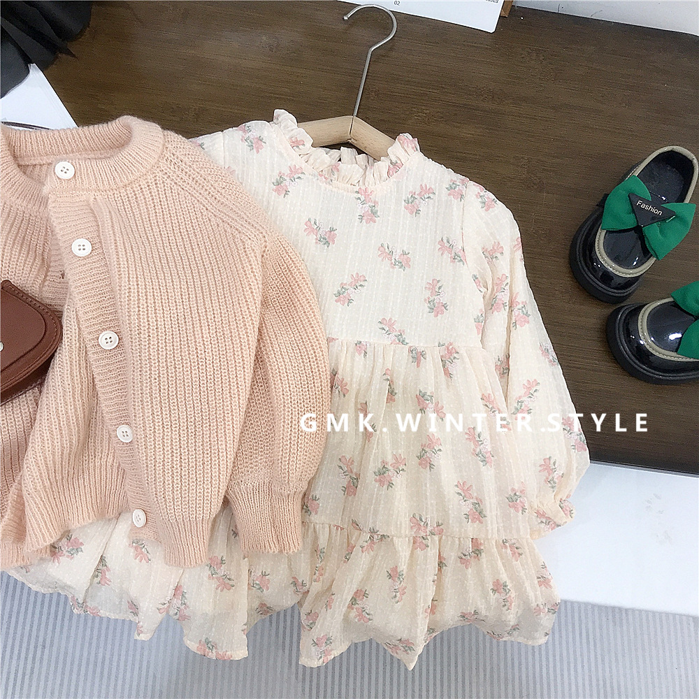 한국 아동복 봄 · 가을 새 여아 마하이 버블 슬리브 니트 카디건 어린이 칼라 꽃 원피스 대외 무역