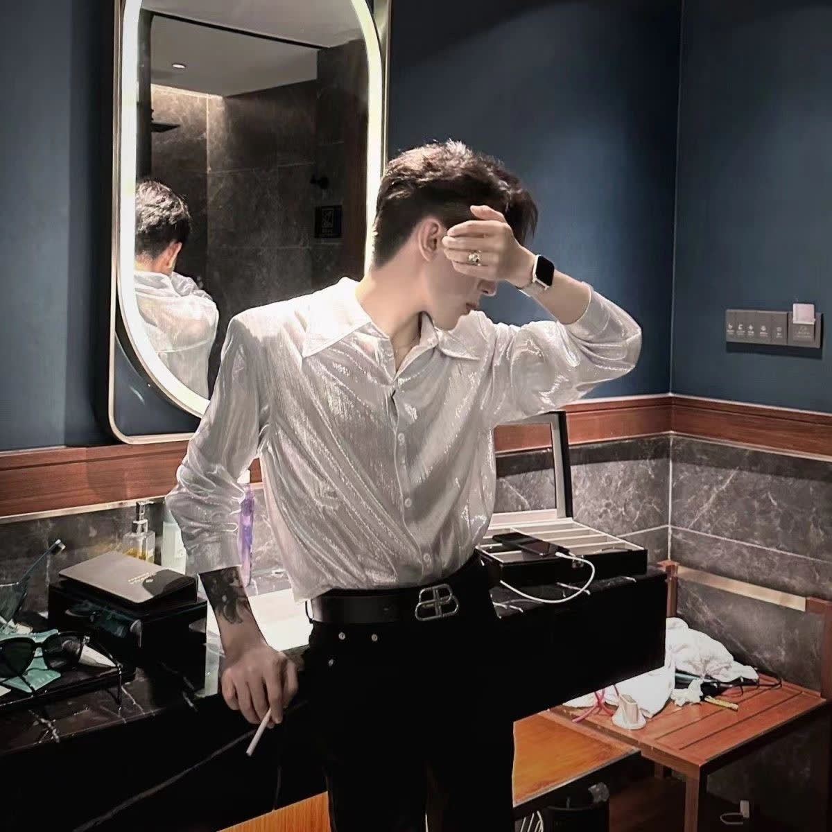디자인 센스 트렌디 브랜드 유행 간단한 비 다림질 셔츠 남자의 긴팔 2024 여름 새로운 느슨한 캐주얼 핸섬 셔츠스토어 가기