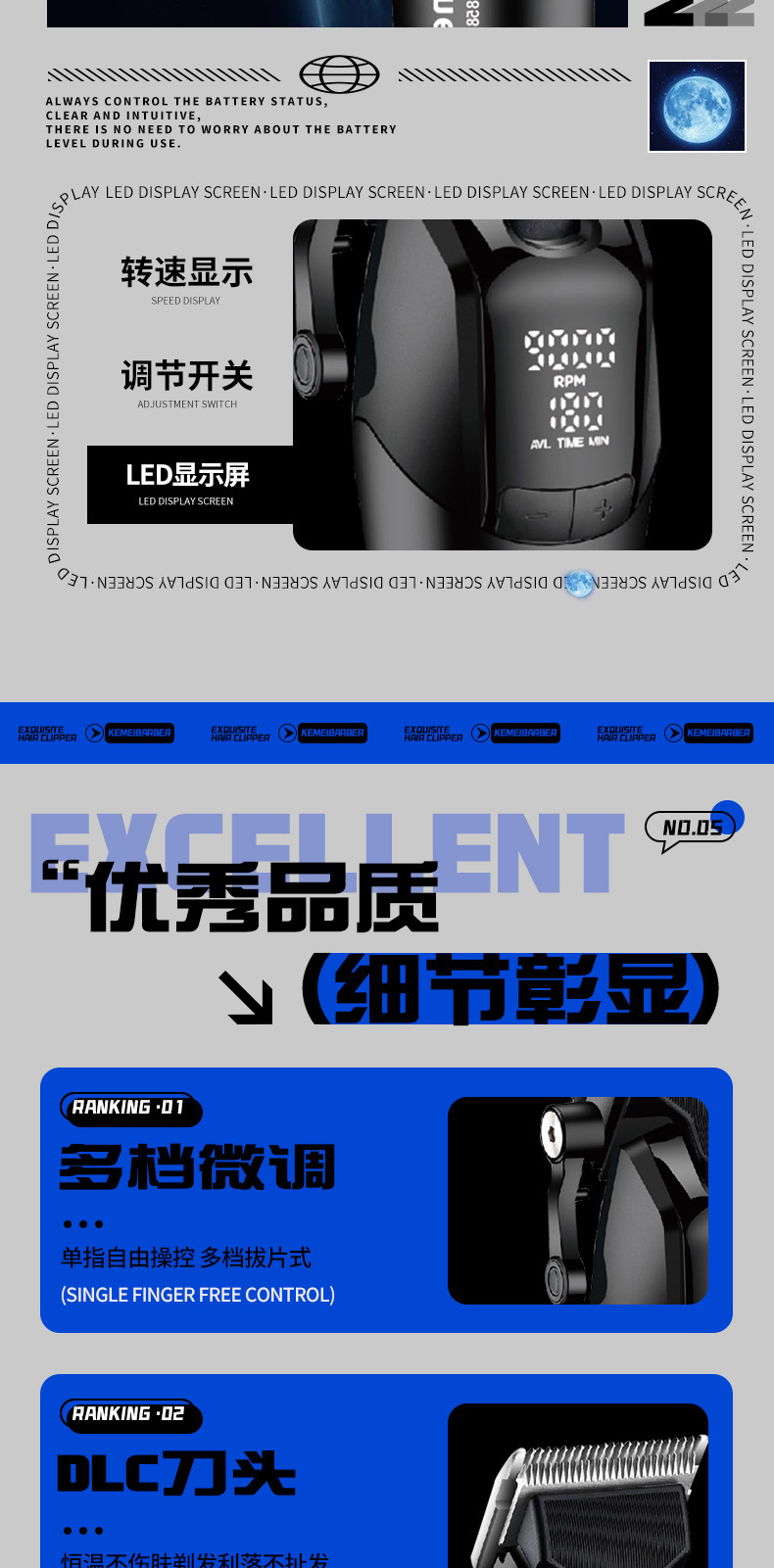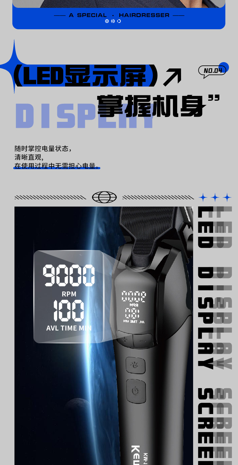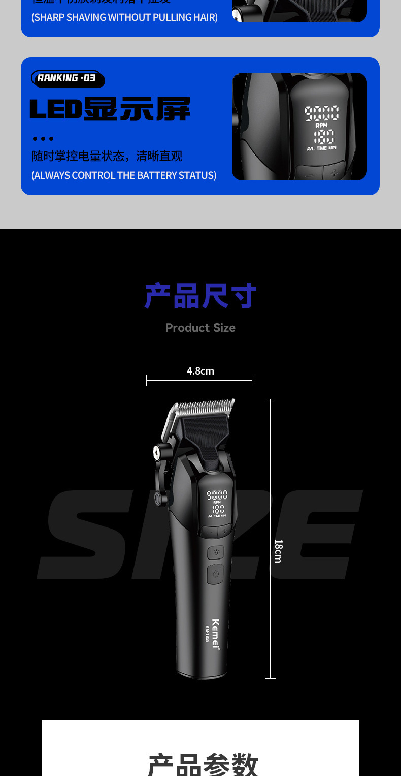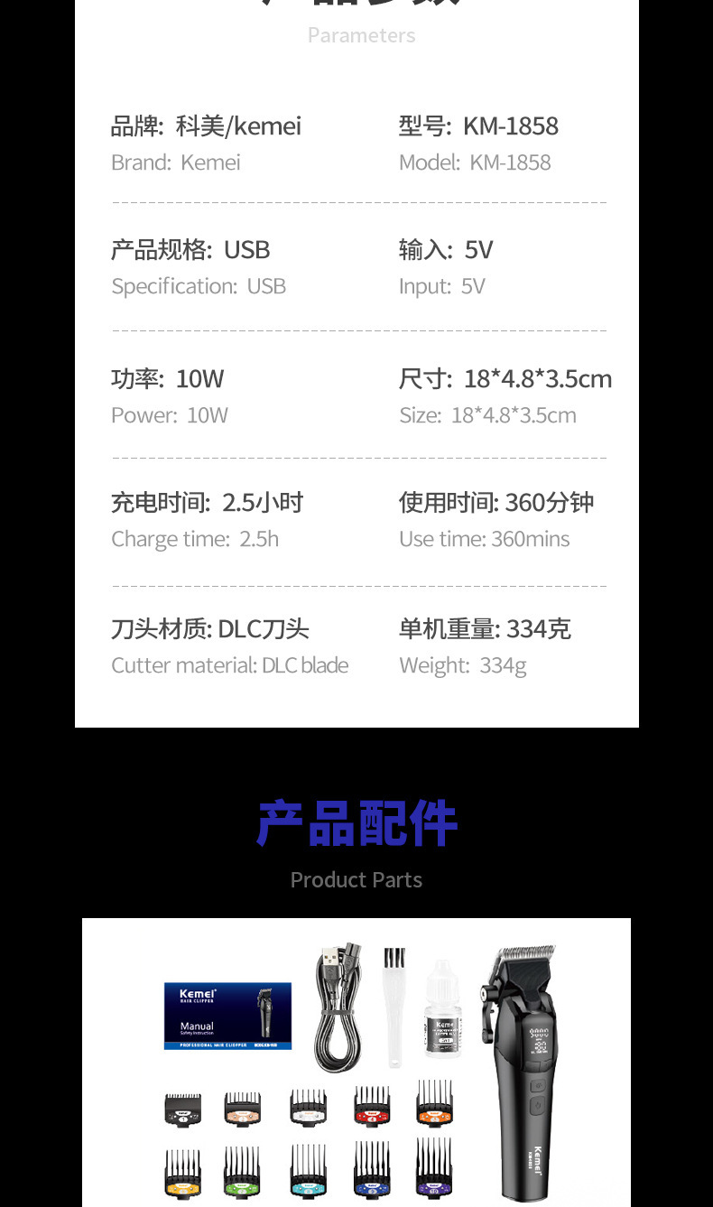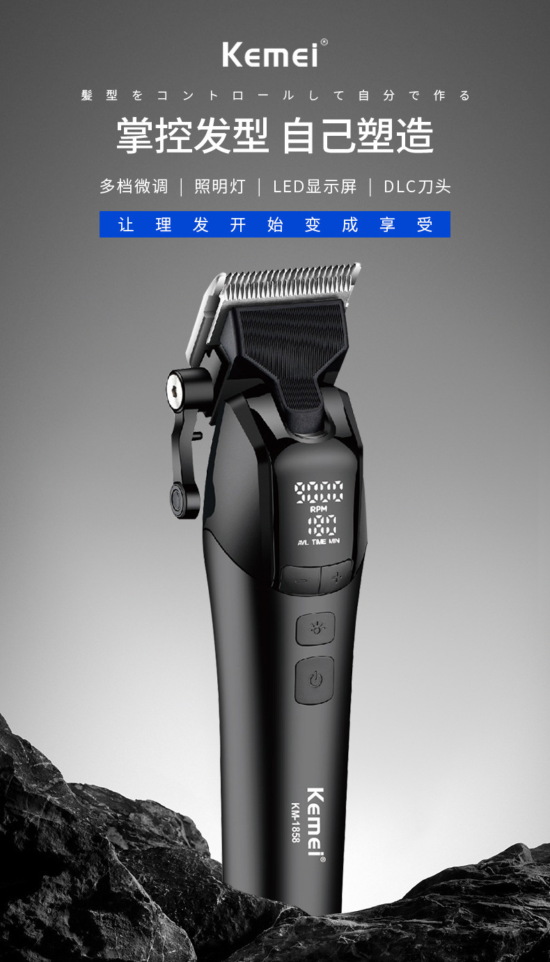 Kemei KM-1858 헤어 살롱 특수 헤어 클리퍼 커터 조각 전단 디지털 디스플레이 헤어 클리퍼 고속 전기 클리퍼