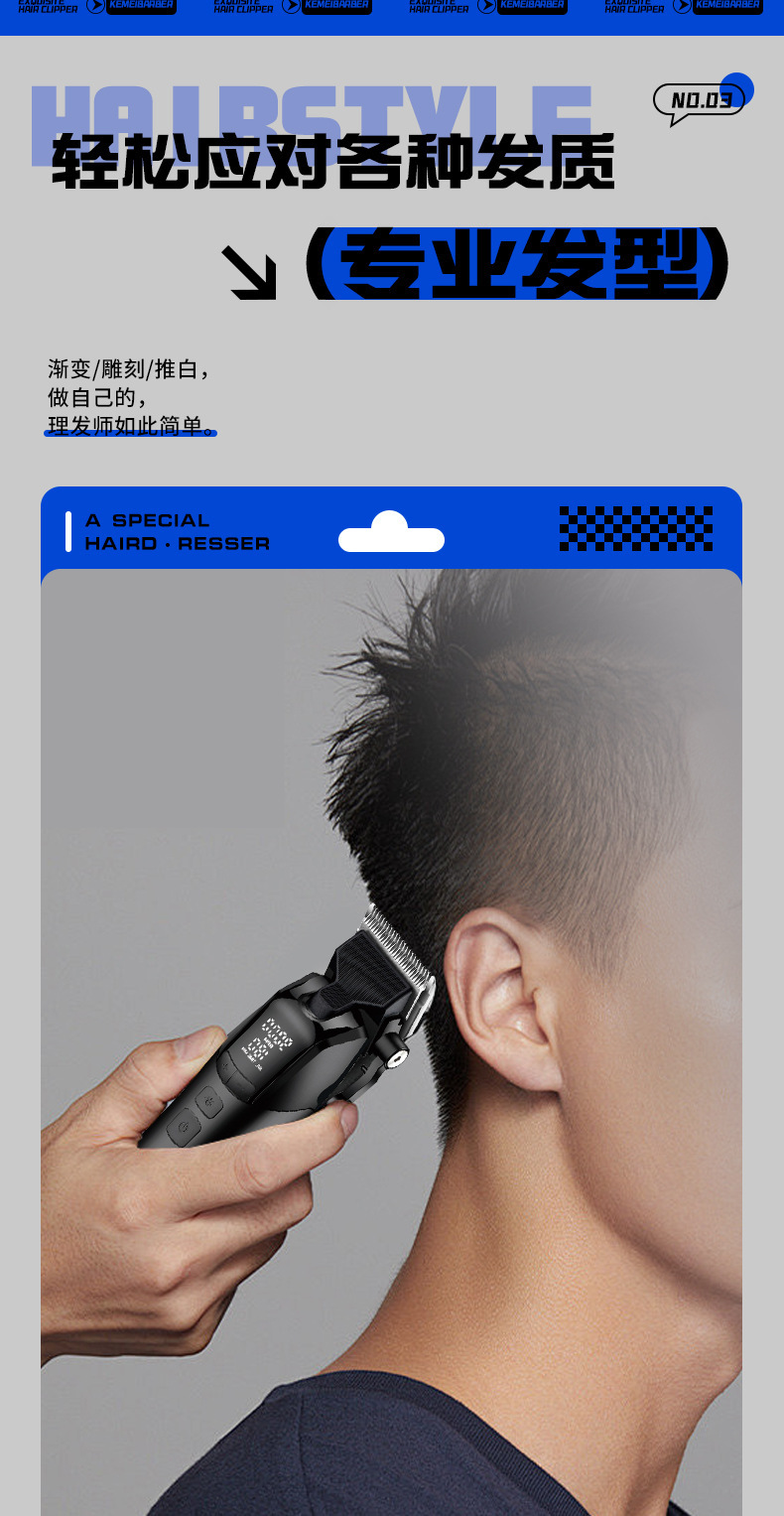Kemei KM-1858 헤어 살롱 특수 헤어 클리퍼 커터 조각 전단 디지털 디스플레이 헤어 클리퍼 고속 전기 클리퍼스토어 가기