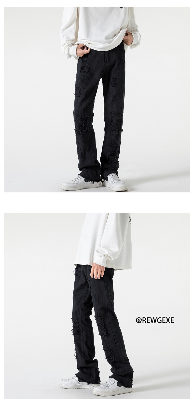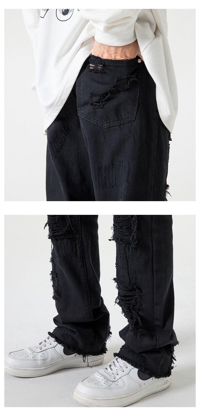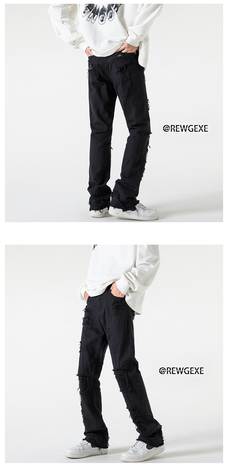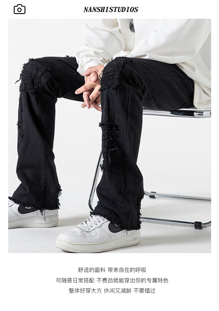 블랙 청바지 남성 봄과 가을 미국 스타일 하이 스트리트 바이브 스트레이트 팬츠 Ins 트렌디 브랜드 랩 캐주얼 팬츠스토어 가기