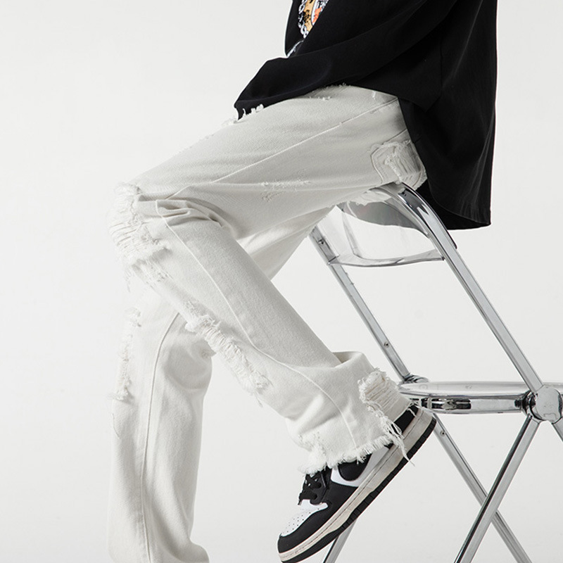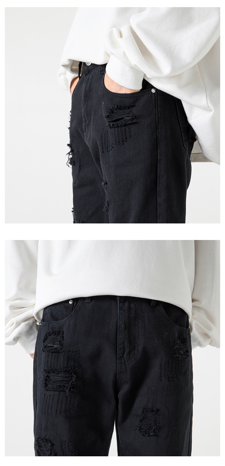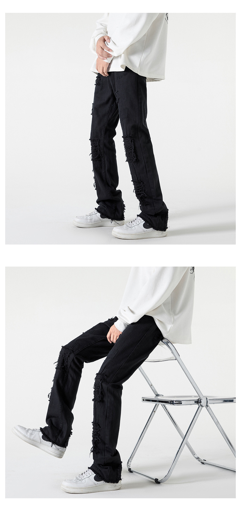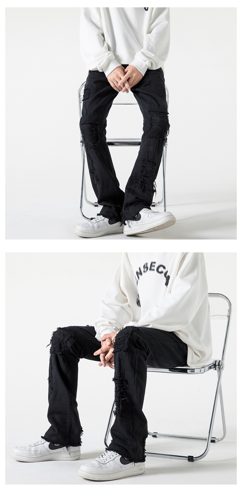 블랙 청바지 남성 봄과 가을 미국 스타일 하이 스트리트 바이브 스트레이트 팬츠 Ins 트렌디 브랜드 랩 캐주얼 팬츠스토어 가기