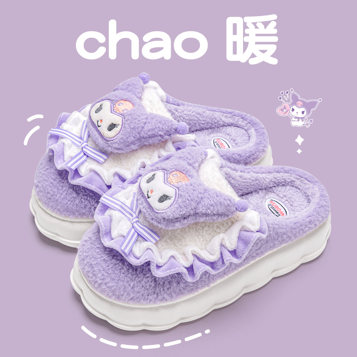 Merleti 새로운 어린이 면 슬리퍼 가을과 겨울 소녀 부모-자식 아기 슬리퍼 여성용 울 슬리퍼 따뜻한 면 신발스토어 가기