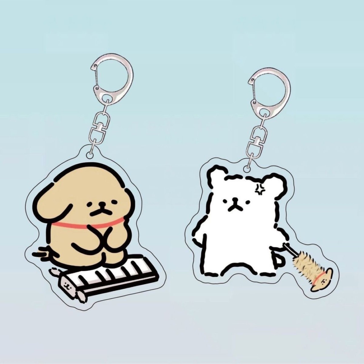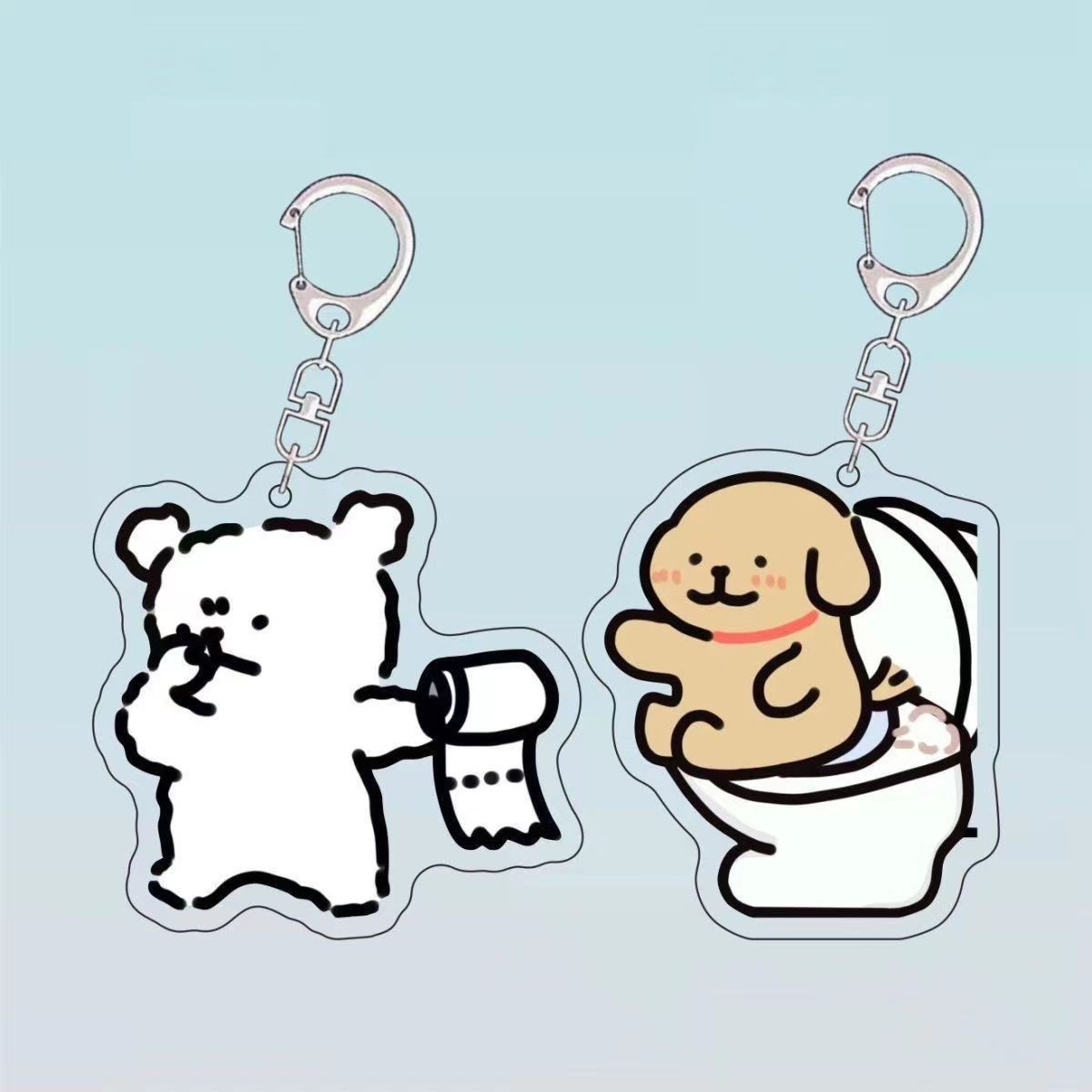 귀여운 무릎 꿇기 키보드 라인 강아지 아크릴 키 체인 학생 펜던트 만화 커플 재미있는 Schoolbag 펜던트스토어 가기