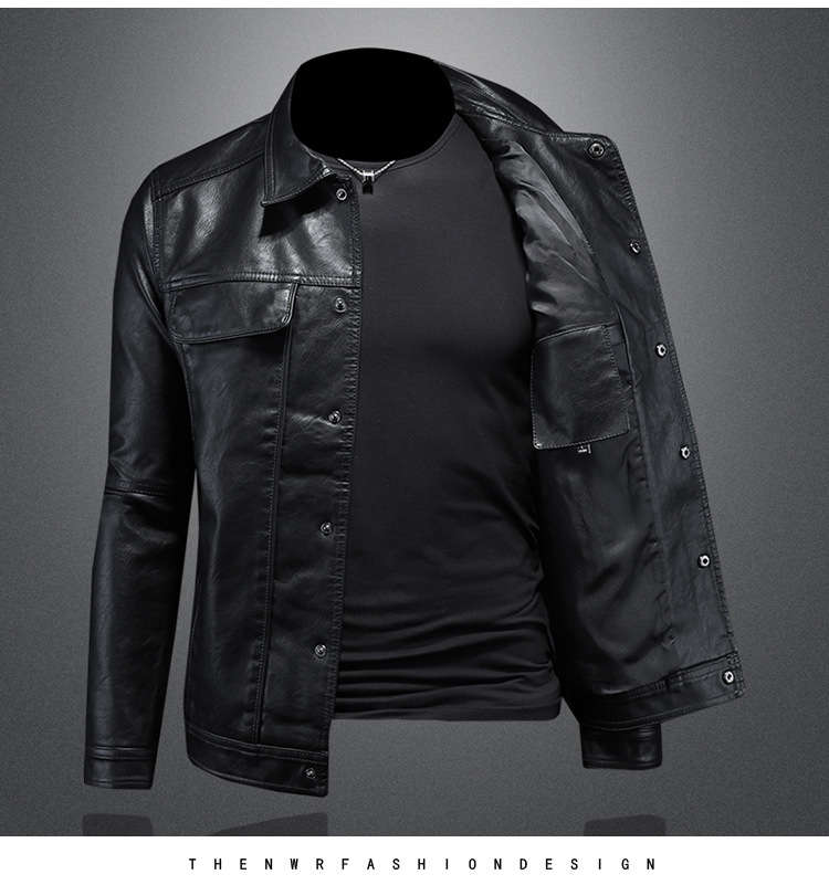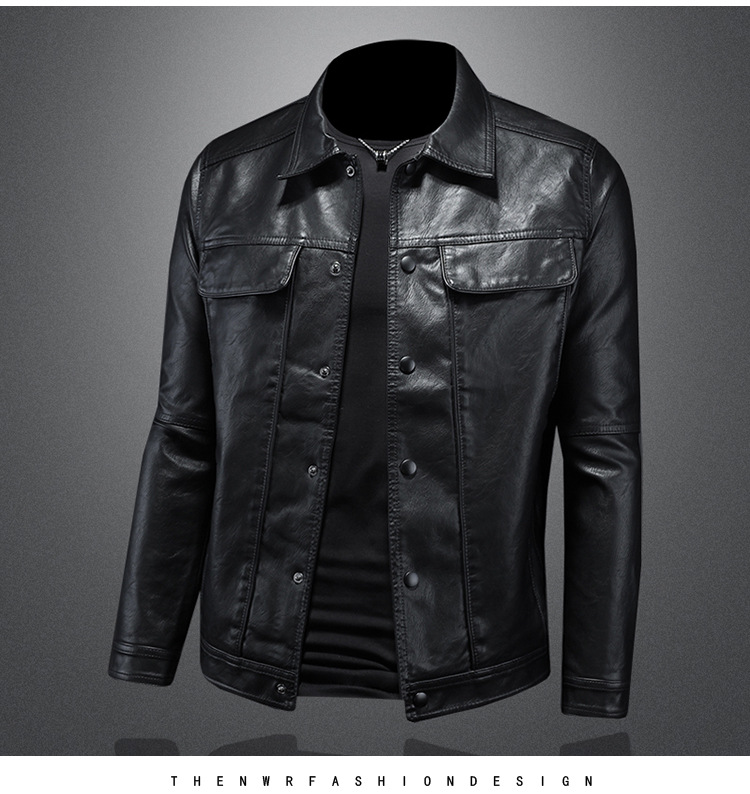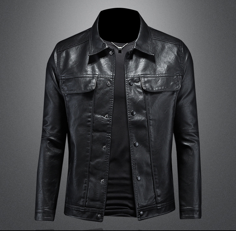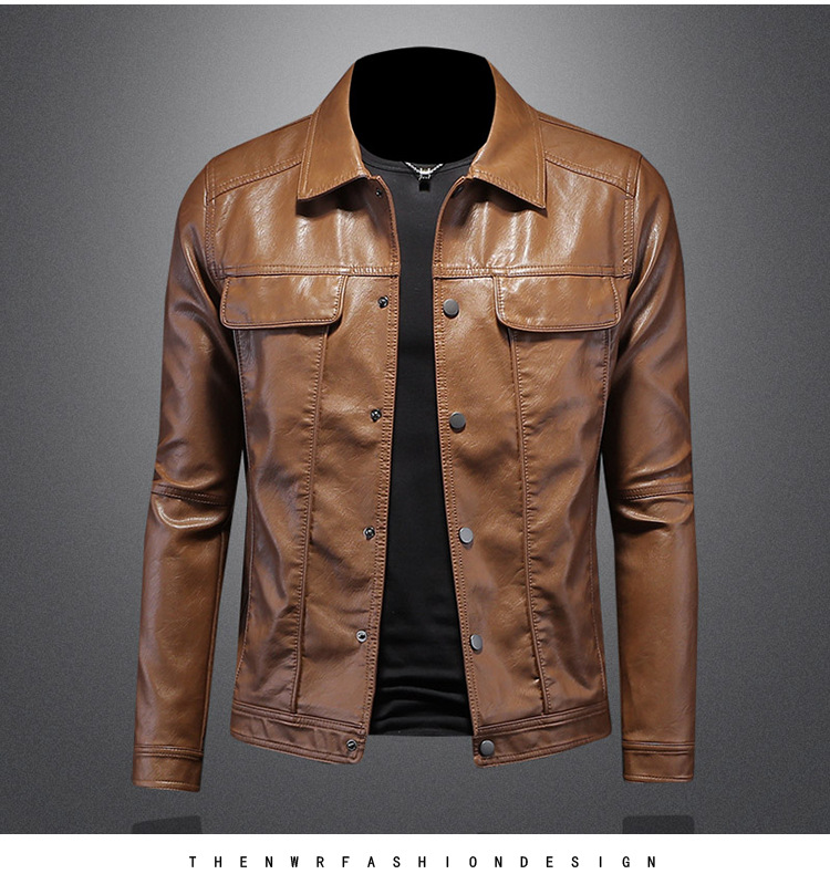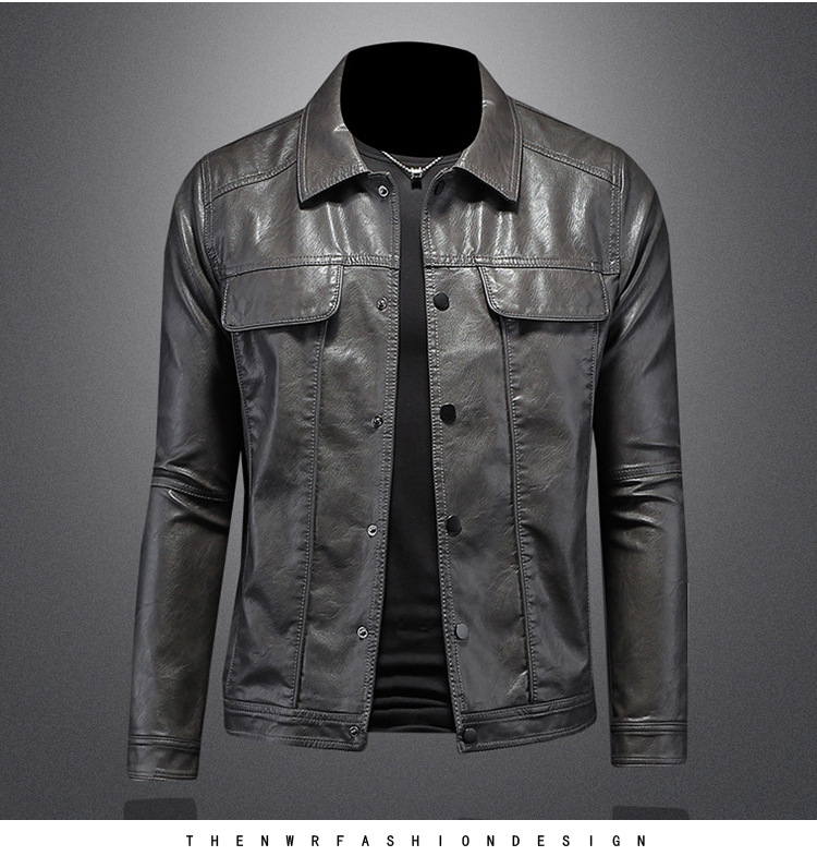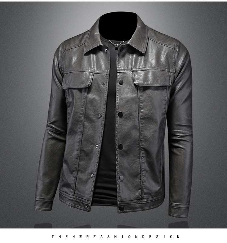 봄과 가을 신상 남성용 라펠 바이커 가죽 재킷 트렌디 슬림 심플 캐주얼 코트 8117