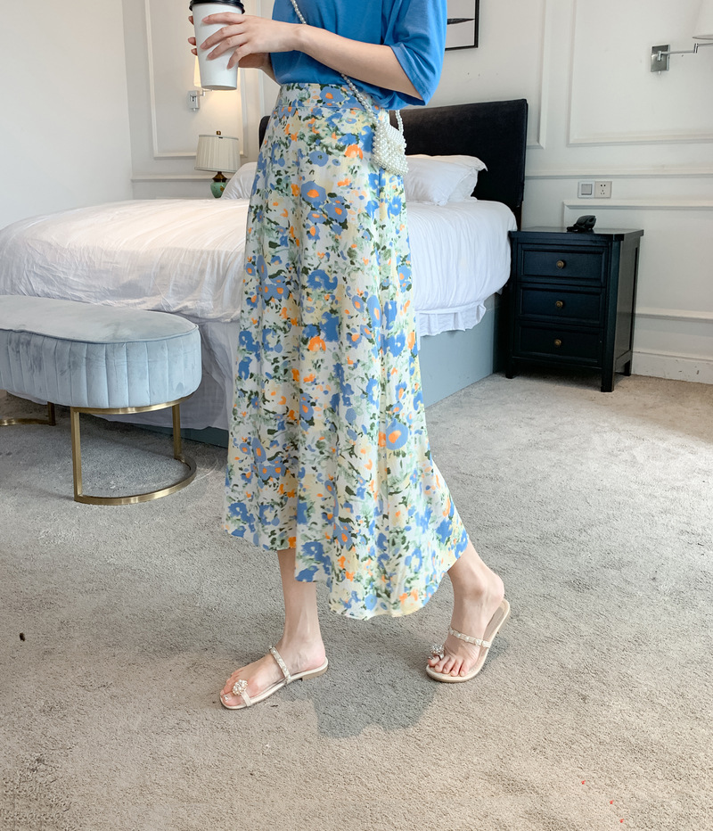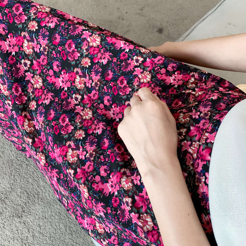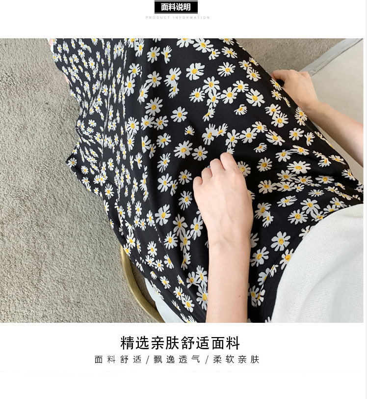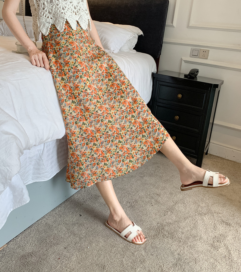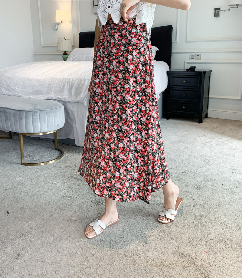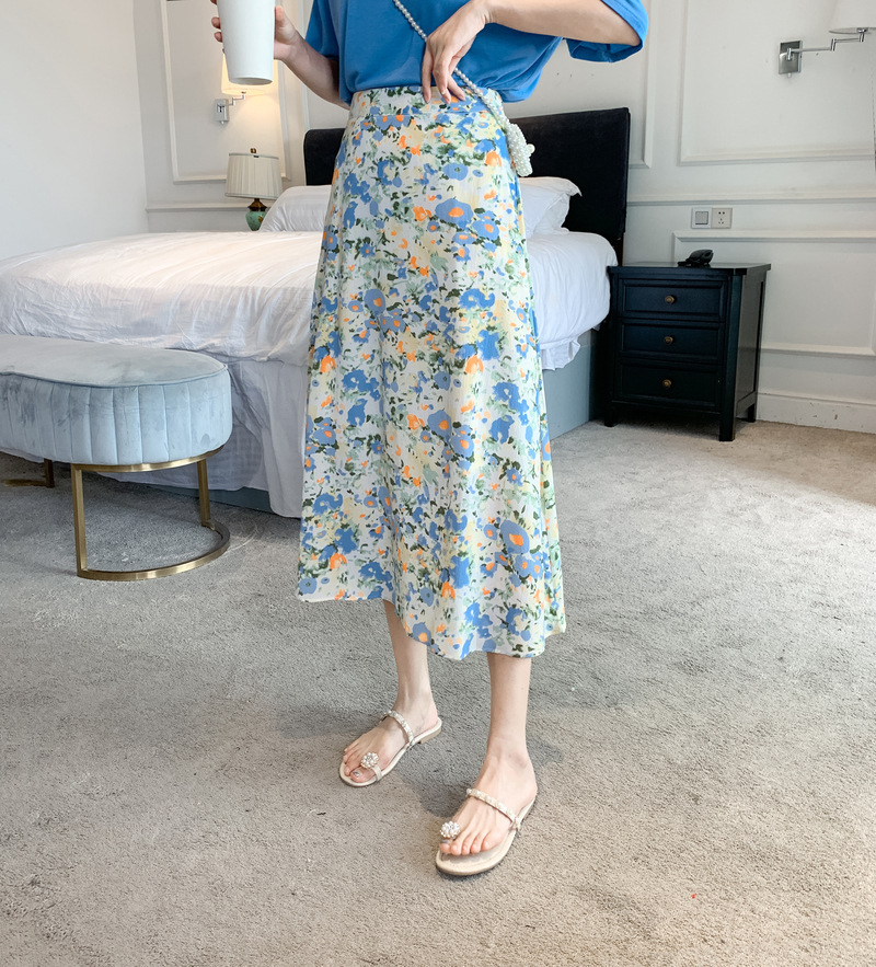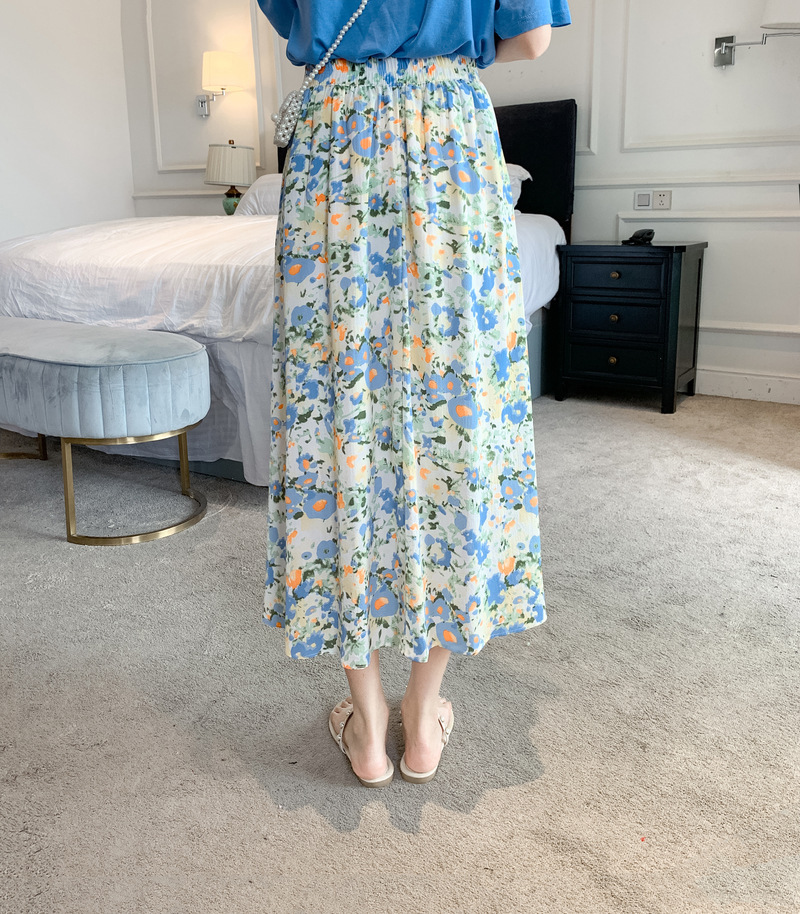 꽃 원피스 봄과 가을 여름 여성 데프 스커트 2021 새로운 중간 길이 스커트 시폰 높은 허리스토어 가기