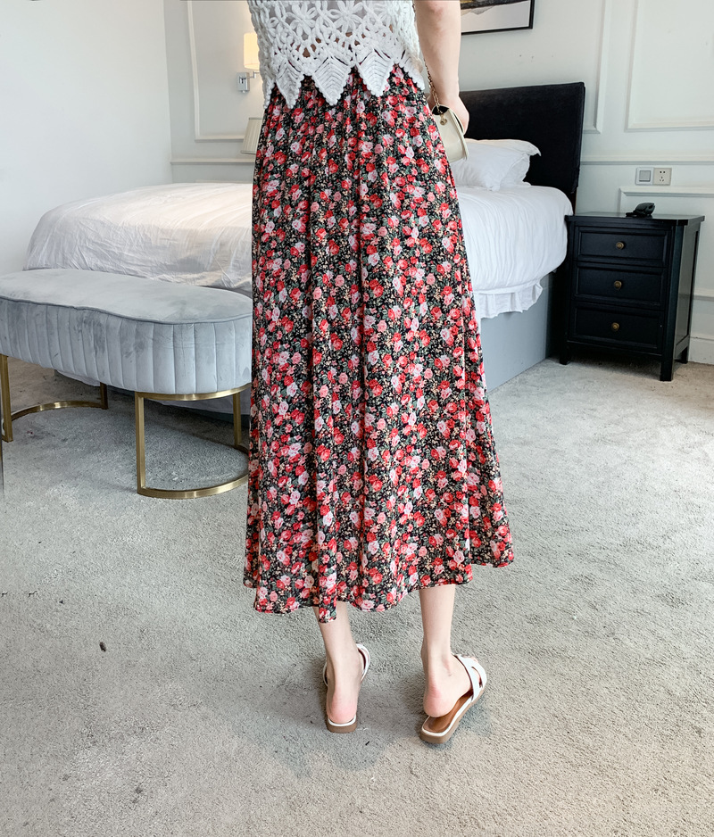 꽃 원피스 봄과 가을 여름 여성 데프 스커트 2021 새로운 중간 길이 스커트 시폰 높은 허리